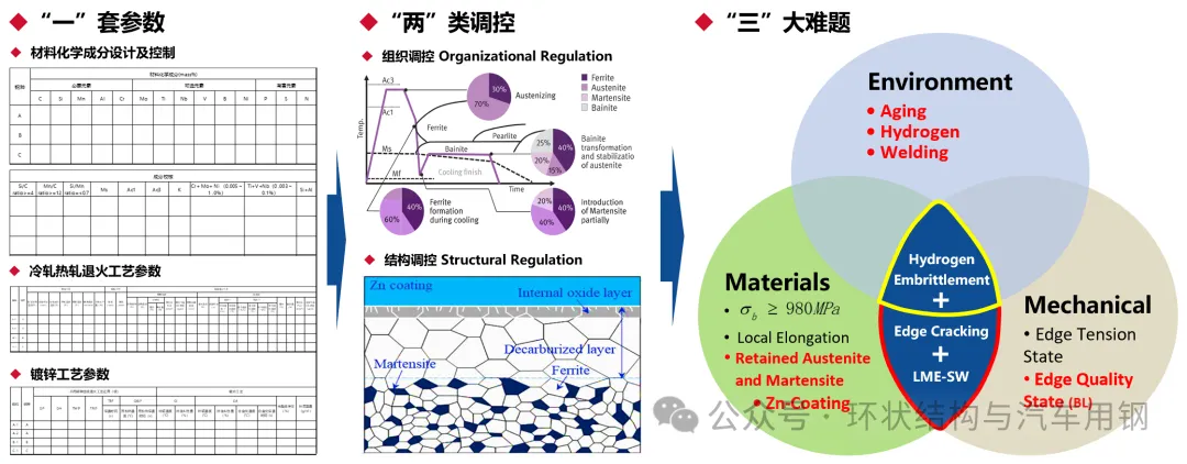 汽车用先进高强钢产品开发的核心逻辑可归结为:通过“一套参数”,实现“两类调控”,解决“三大难题”。《老子》第四十二章讲:“道生一,一生二,二生三,三生万物”,用来对照理解的话,“一”之前应是“钢之道”,“三”之后应是“产品矩阵”。针对第三代钢镀锌板,如果产品开发没有“一生二”的概念,比如,只知组织调控,不知结构调控,肯怕是要走弯路的。