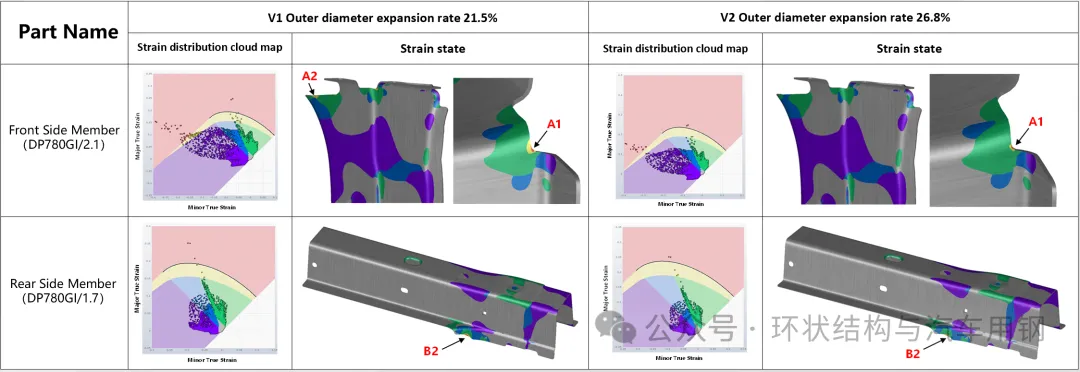 采用新扩孔标准,测定了V1和V2的扩孔率,准确的反映出了材料的优化效果,后续的仿真预测只用外径初始裂纹测定的真实扩孔率。
