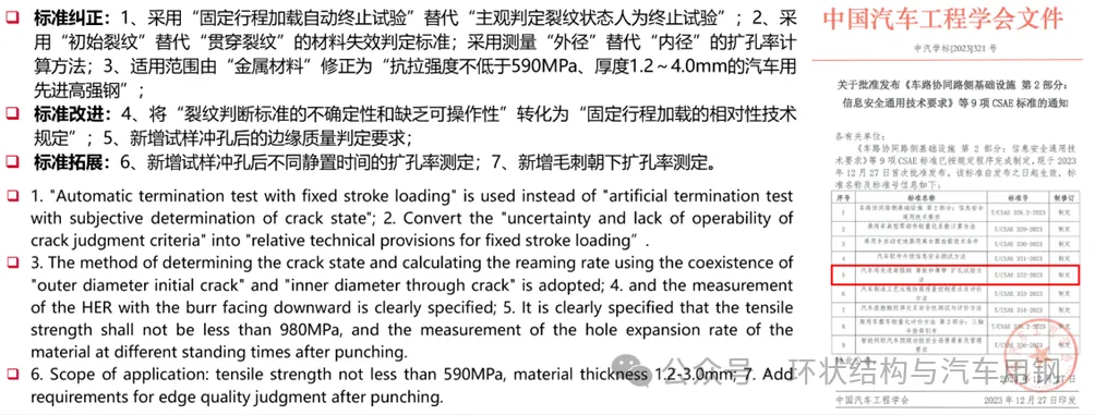 新扩孔标准由武汉上善和中信金属牵头、参与单位超过30家、历时两年完成,于2023年12月由中国汽车工程学会正式发布,标准号为“T/CSAE 332-2023”。新扩孔标准简化了试验操作,可快速、精准地测定扩孔率,具有可重复性和确定性,消除了人为因素的影响。