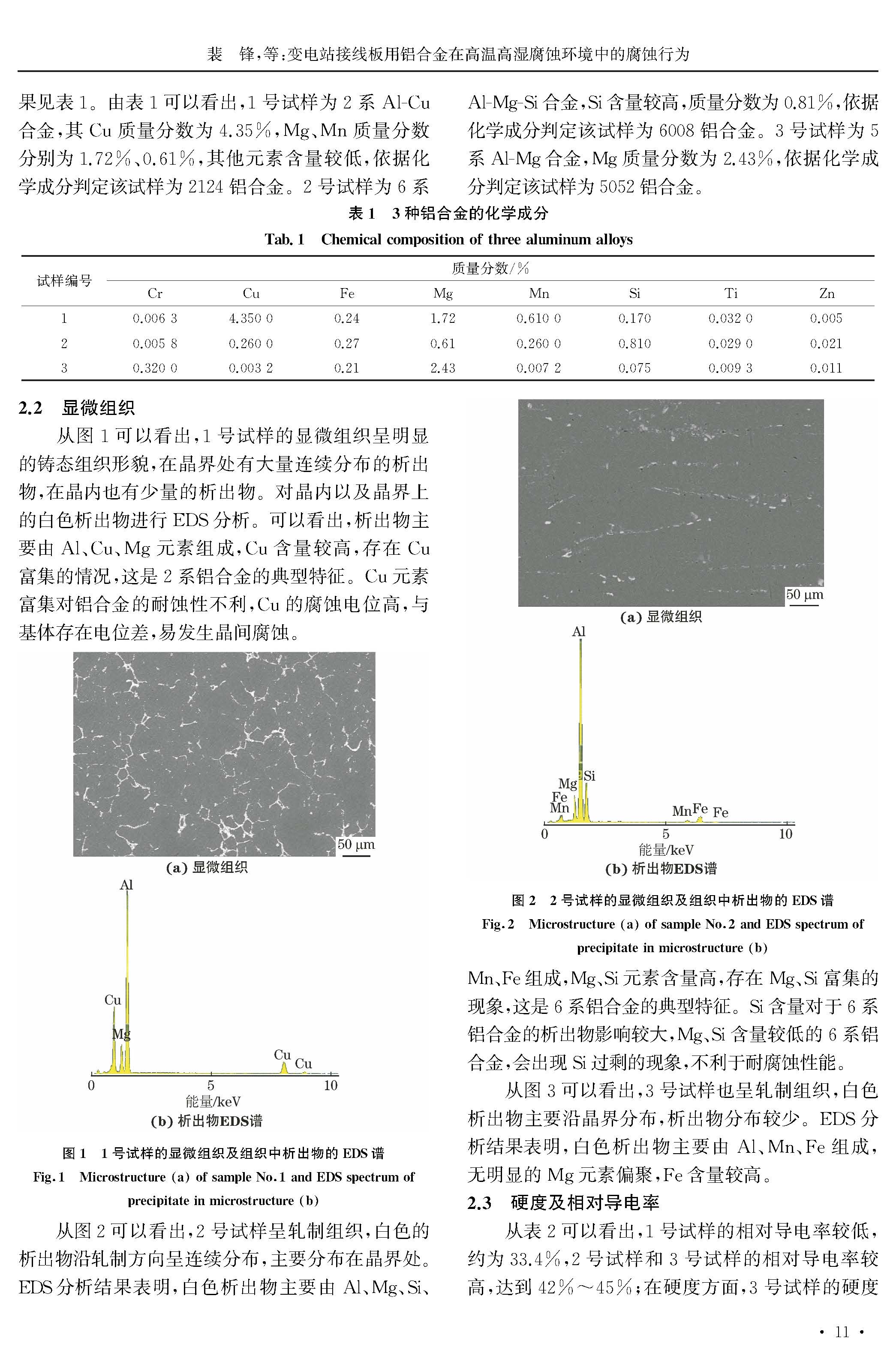 变电站接线板用铝合金在高温高湿腐蚀环境中的腐蚀行为