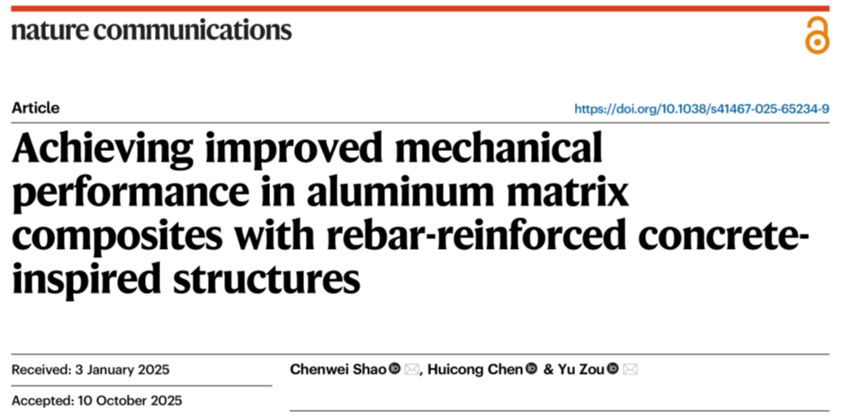 受钢筋混凝土结构启发,多伦多大学材料系极端力学和增材制造课题组创新提出并成功制备出一种新型“钢筋混凝土式铝基复合材料”(Reinforced Concrete Aluminum Matrix Composites, RC-AMCs)。通过融合结构设计、增材制造、微铸造与热处理等多项技术,RC-AMCs兼具颗粒增强型与层状复合材料的双重优势:既具备颗粒增强带来的显著强化效果,又能在高体积分数增强相条件下维持低孔隙率。该类材料内部含有高体积分数的耐热颗粒增强相,可有效抑制材料在高达500°C高温下的强度退化。经结构优化后,RC-AMCs在400°C下实现了抗压屈服强度最高达938 MPa,比强度最高达235 kN∙m/kg,是目前所有铝基合金与复合材料中已知最优性能之一。多尺度计算分析进一步揭示,RC-AMCs优异的高温抗软化性能与Al₃Ti中异常热孪晶行为密切相关。