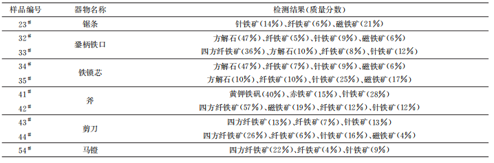 近年来,国内外学者在铁质文物保护方面已取得诸多研究成果。随着研究的不断深入,多数学者将研究重点集中在脆弱铁质文物保护关键技术及综合病害防治等方面,尤其是脆弱铁质文物保护关键技术,故脱盐、缓蚀、封护等“稳定”技术,成为目前学界研究的热点之一。笔者利用紫外荧光摄影、X光探伤、广域X射线荧光扫描成像(MA- XRF)及X射线衍射分析(XRD)等方法,以燕州城山城遗址出土7件脆弱铁质文物为例(图1) ,对器物整体保存状况、表面有机物反映的历史使用情况以及锈蚀情况进行了较为系统的分析,根据分析结果,对这批铁器的病害情况进行了综合评估,结合病害情况,采取新设备、新技术、新材料有针对性地开展了保护修复处理,以期为后续大规模开展铁器保护提供借鉴。 图1 燕州城山城遗址出土铁器修复前的宏观形貌 1 器物保存现状与腐蚀特征 该批铁器出土时间较长,自2009年发掘出土后,先后辗转存放于不同的保存地点,腐蚀现状为埋藏环境和出土后不同保存环境综合因素的结果。在本次保护工作开展前,这7件铁器保存在辽宁省本溪市博物馆地下一层库房开放式铁质柜架上,文物与架体间以PVC材质水晶板分隔。库房无温湿度控制设备,文物保存环境的温湿度变化较大。2022年4月-2023年4月的温湿度记录结果表明,全年库房最高温度25.7℃,最低温度10℃,平均值16.1℃;最大湿度RH(相对湿度)78.2%,最低RH18.6%,平均值42.2%。 大部分铁器腐蚀较为严重,锈体疏松、体积膨胀或脆裂成片块状,表面普遍存在泥土和白色、淡黄色沉积物,部分区域可见红褐色的液滴状锈蚀,有的液滴状锈蚀位于片状锈层下方,将锈层顶起,有的液滴状锈蚀破裂,这是该批铁器较为普遍的病害特征之一,见图2。这种液滴状锈蚀是含有氯化物的铁质文物在高湿度环境中的典型腐蚀特征之一。个别铁器矿化、碎裂严重。表1为这7件铁器的基本信息及肉眼可观察的病害特征情况。 表1 7件铁器的基本信息及病害特征 图2 铁器表面的液滴状锈蚀 2 病害分析与综合评估 2. 1 紫外荧光照相 紫外荧光照相(UVL) 技术可有效揭示修复材料在文物表面的分布和保存状态,并为取样策略的制定提供重要依据。在保护修复前,使用UVL技术对7件铁器的表面进行拍摄,以了解其历史修复情况和修复材料的空间分布情况。结果表明,铁斧表面残留一定量的有机涂层,锯条使用了黏接材料,后续保护修复时应将其去除,见图3。 图3 部分铁器的紫外荧光形貌 2.2 X 光探伤 采用YXLON公司YTU/450-D10型X光探伤机,配合美国VMI公司 X射线电子底片系统对其进行了X光照射,以获得器物的整体保存状况,并通过RADIUS软件进行进一步处理,以获得更多的原始信息。结果表明:除锯条、带扣外,其余5件铁器均保留一定的金属基体,原始边界较为清晰。其中马镫形制较为特殊,由内外两层较为连续铁皮环绕而成,中间为锈蚀。 2.3 广域 X 射线荧光扫描成像(MA-XRF) 使用X射线荧光分析仪(M6JETSTREAM)对7件铁器表面的氯、钙等元素的含量及分布情况进行测定,结果表明:7件铁器表面均含氯元素,质量分数为0.18%~2.57%;大部分铁器表面有较高含量的钙元素,这也是这批铁器较为明显的特征之一。燕州城遗址门道堆积处曾发现石灰痕迹,考古人员推测两侧墙壁可能涂有石灰,故这批铁器表面含较多钙元素的原因可能与遗址曾使用石灰有关。上述分析结果可为针对性的取样分析工作提供参考,同时可对比脱氯结束后氯含量的变化,辅助评估脱盐效果。部分铁器表面的钙元素分布情况见图4。 图4 部分铁器表面的钙元素含量分布 2.4 X 射线衍射分析 采用X射线衍射仪(D/max-rA) 对10件锈蚀样品进行分析,样品采集时结合X射线荧光分析结果,并注意刮取部分铁器表面的液滴状锈蚀,详见表2 (检测结果未列入泥土中常含的石英、白云石、斜长石、微斜长石等物质,仅列出主要锈蚀产物)。 由表2可见,铁器表面白色或淡黄色附着物中存在一定量的方解石,进一步验证了燕州城城址可能使用了石灰这一论断。除铁锁芯可能受表面钙质沉积物干扰,其他含液滴状锈蚀铁器的锈蚀物中,均检测到四方纤铁矿(β-FeOOH),每件铁器的锈蚀物中均含有一定量的纤铁矿(γ-FeOOH)。β-FeOOH对铁质文物的危害已基本被学界认可,有学者对β-FeOOH的产生及危害进行了较为系统的论述,在铁质文物保护过程中应对其进行针对性的处理。γ-Fe00H是一种不稳定锈蚀,会向稳定的α-Fe00H或Fe3O4转变,其转化速度与 湿度和污染程度有关。在铁斧表面锈蚀物中还发现了黄钾铁矾(硫酸盐矿物),这更加说明这批铁器的腐蚀环境复杂。 多种分析检测结果表明,铁斧和锯条表面残留少量有机涂层,7件铁器总体锈蚀较严重,锈层中富含氯化物,呈现“液滴”等典型的活性锈蚀状态,铁器表面普遍含有钙质沉积物。除锯条和带扣外,其余5件铁器保留有一定的金属基体。检测分析结果可为后续保护修复提供科学指导,结合保护后器物的保存环境可针对性制定保护修复技术路线。 表2 部分铁器样品的XRD分析结果 3 脆弱铁质文物的“稳定”处理 “稳定”处理指铁质文物的脱盐、缓蚀及封护几种保护措施,这也是脆弱铁质文物保护的关键技术手段,通过“稳定”处理,可有效延缓铁质文物的腐蚀。 3. 1 脱 盐 氯化物是引发铁质文物腐蚀,导致铁质文物不稳定的重要原因之一。其中β-FeOOH是铁质文物在(局部)高含量氯化物环境中的典型腐蚀产物,