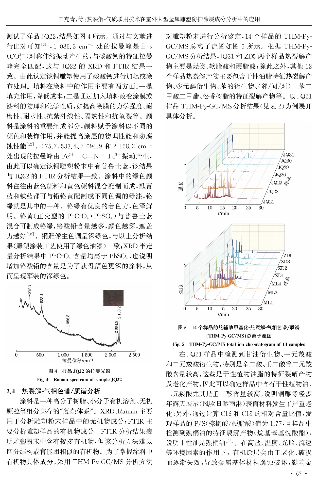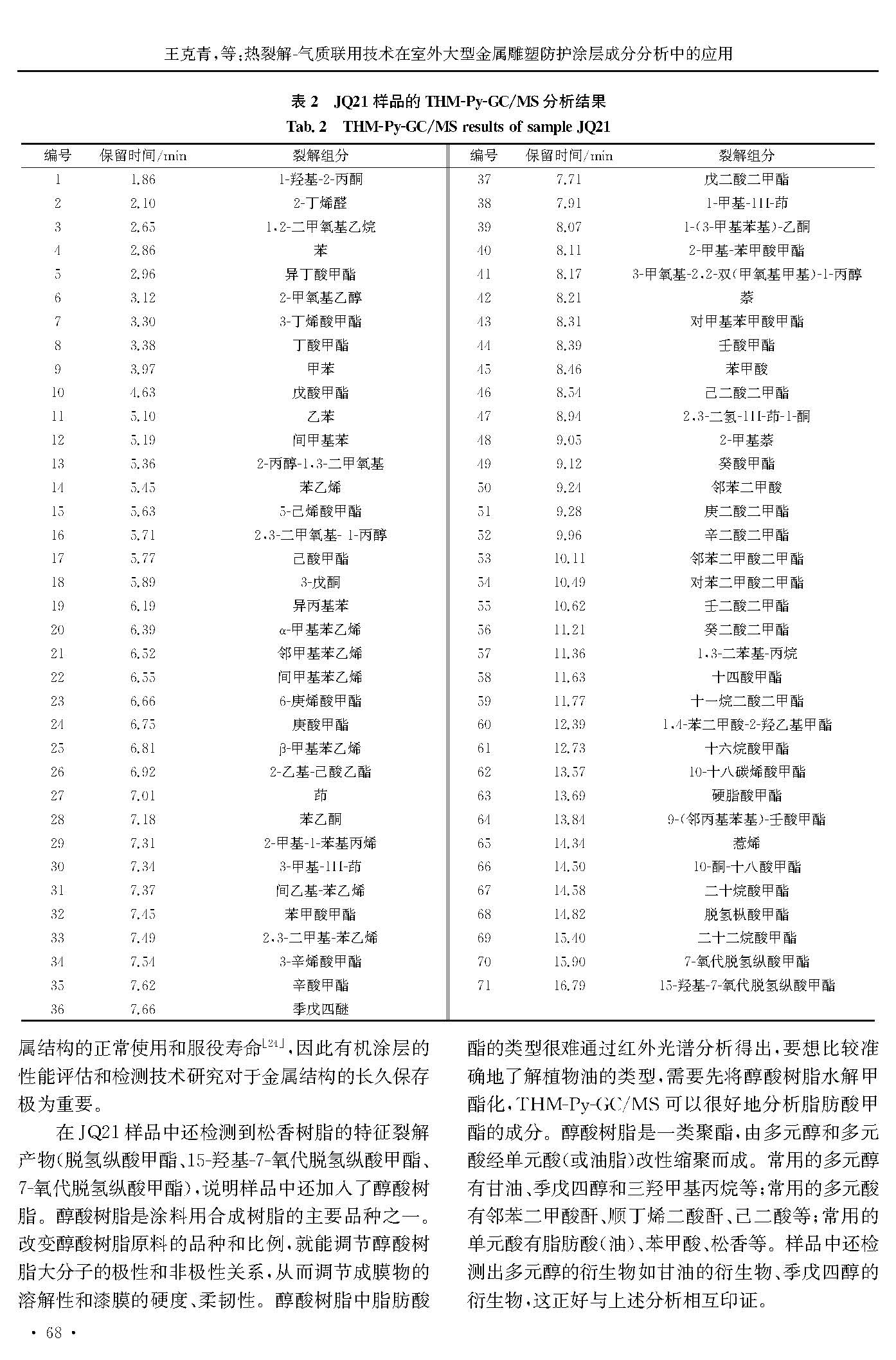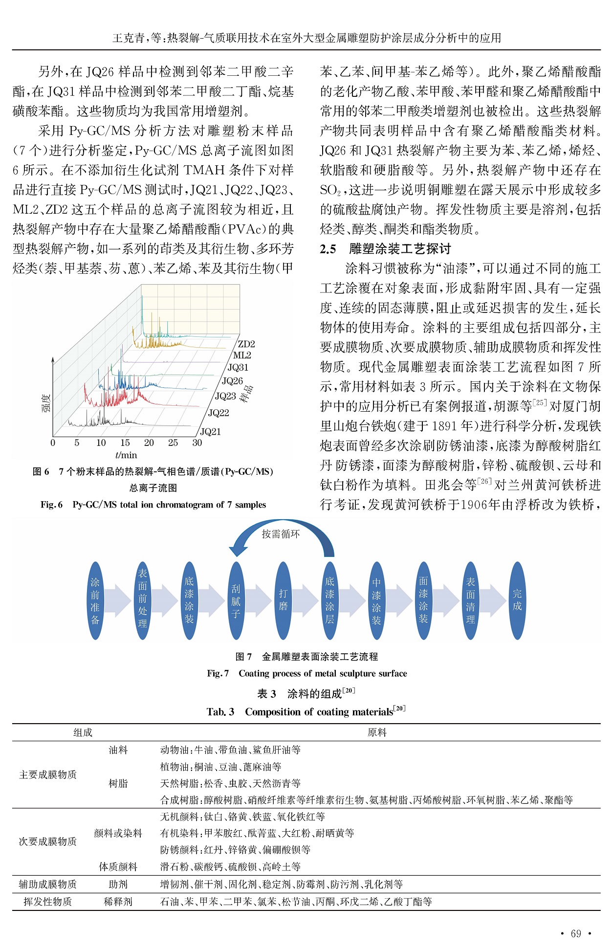 热裂解-气质联用技术在室外大型金属雕塑防护涂层成分分析中的应用