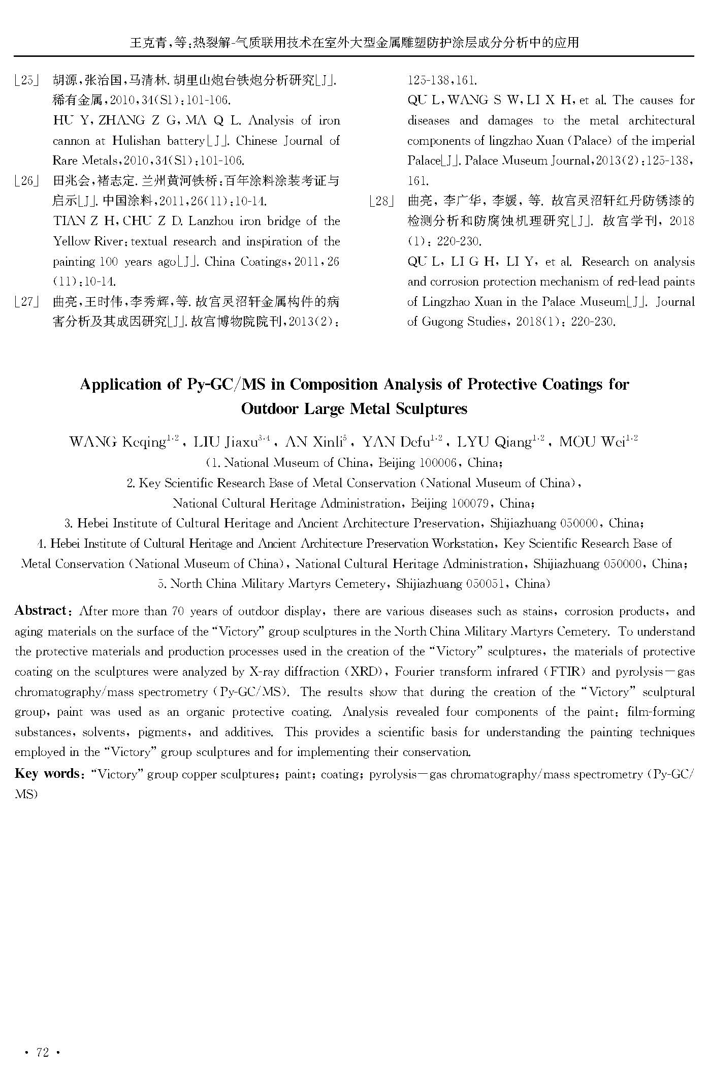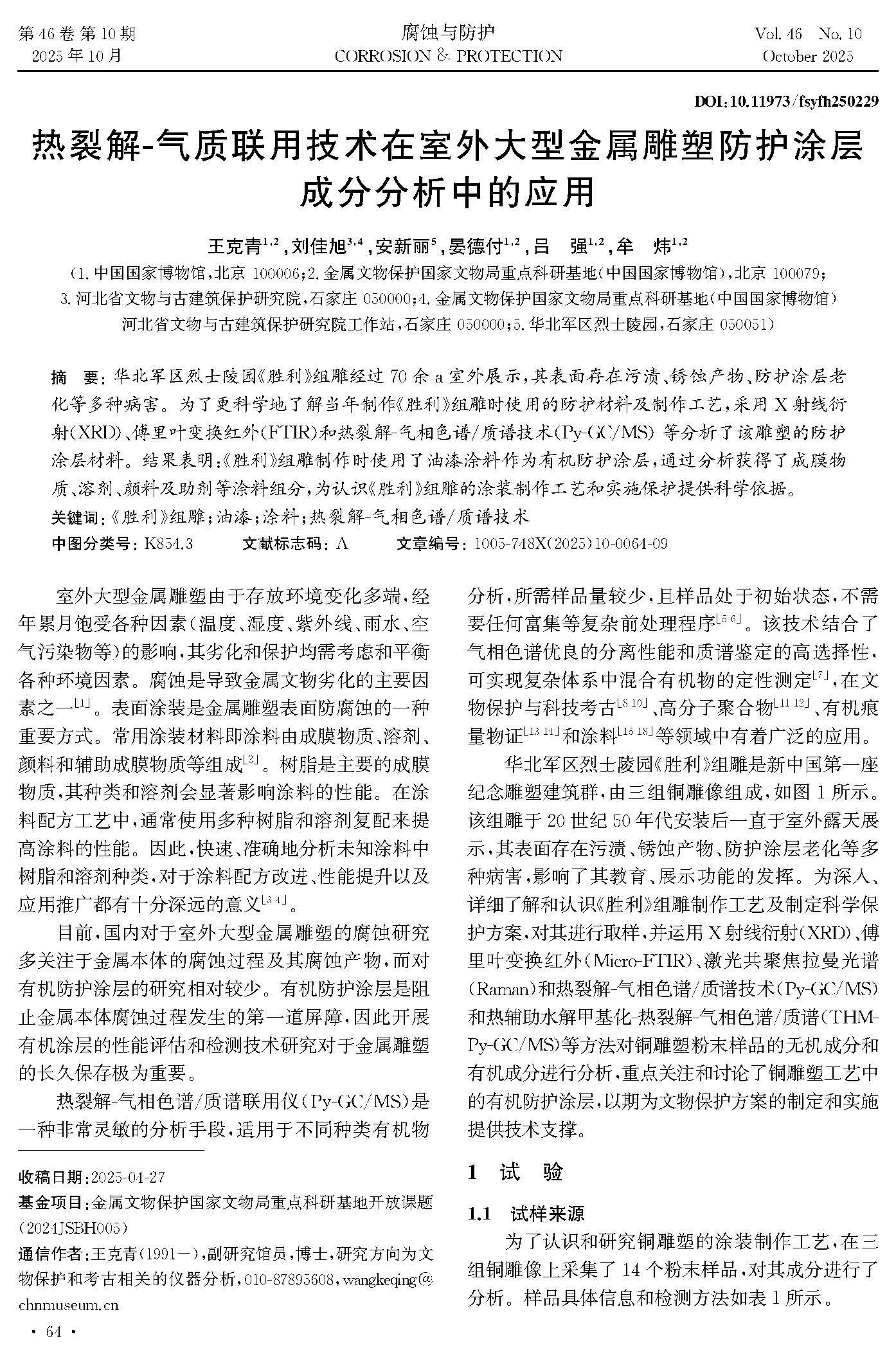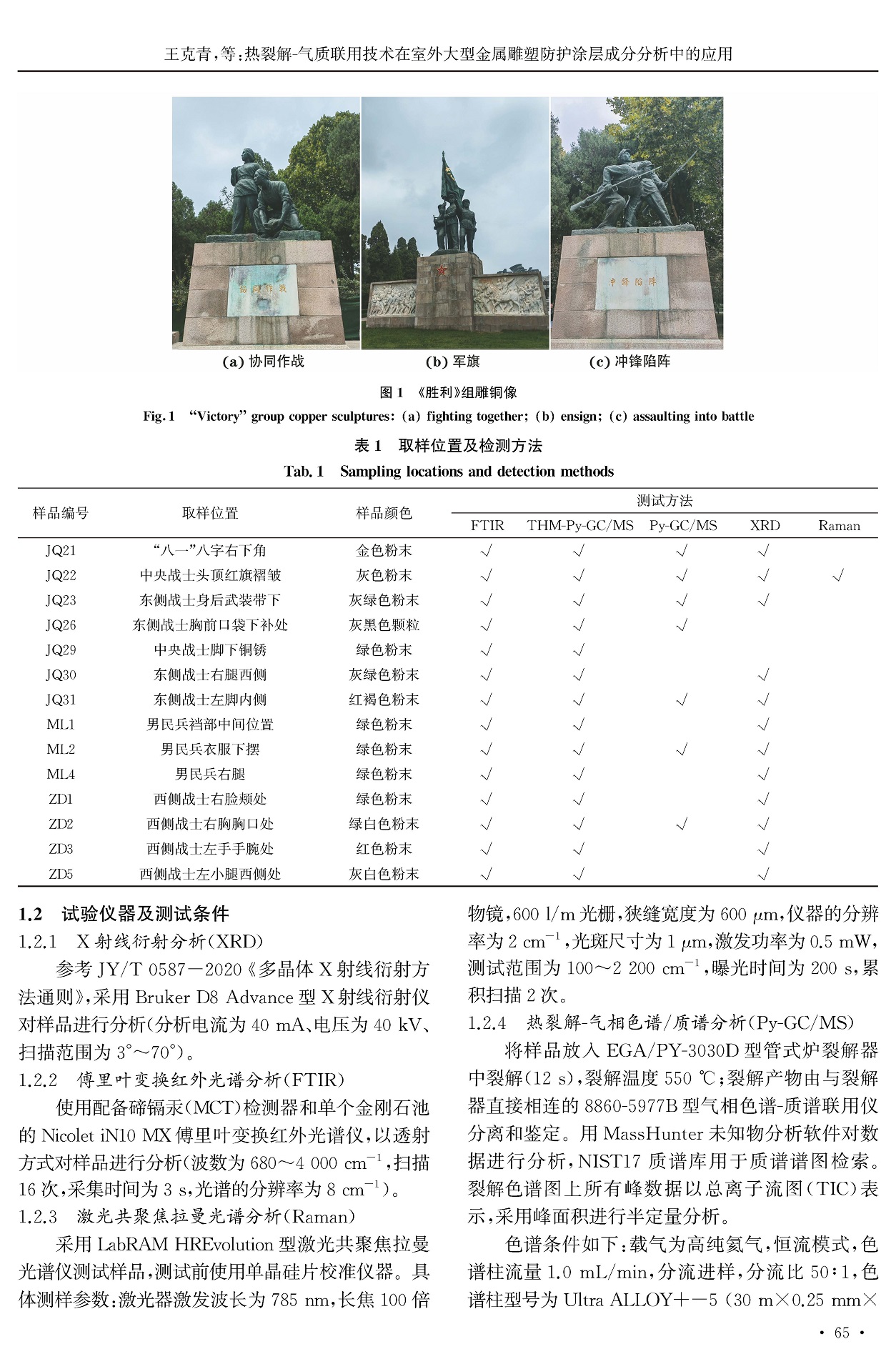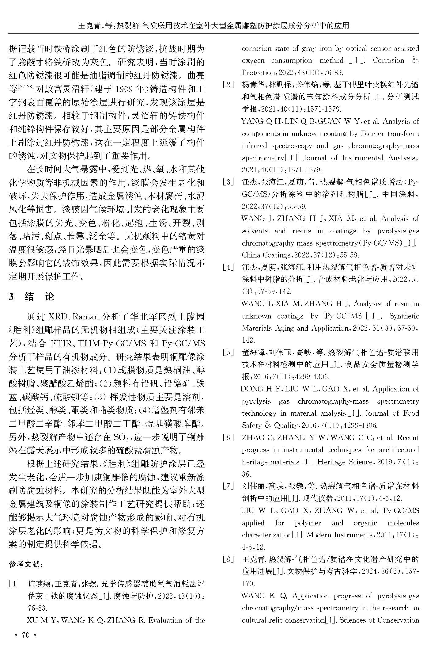 热裂解-气质联用技术在室外大型金属雕塑防护涂层成分分析中的应用