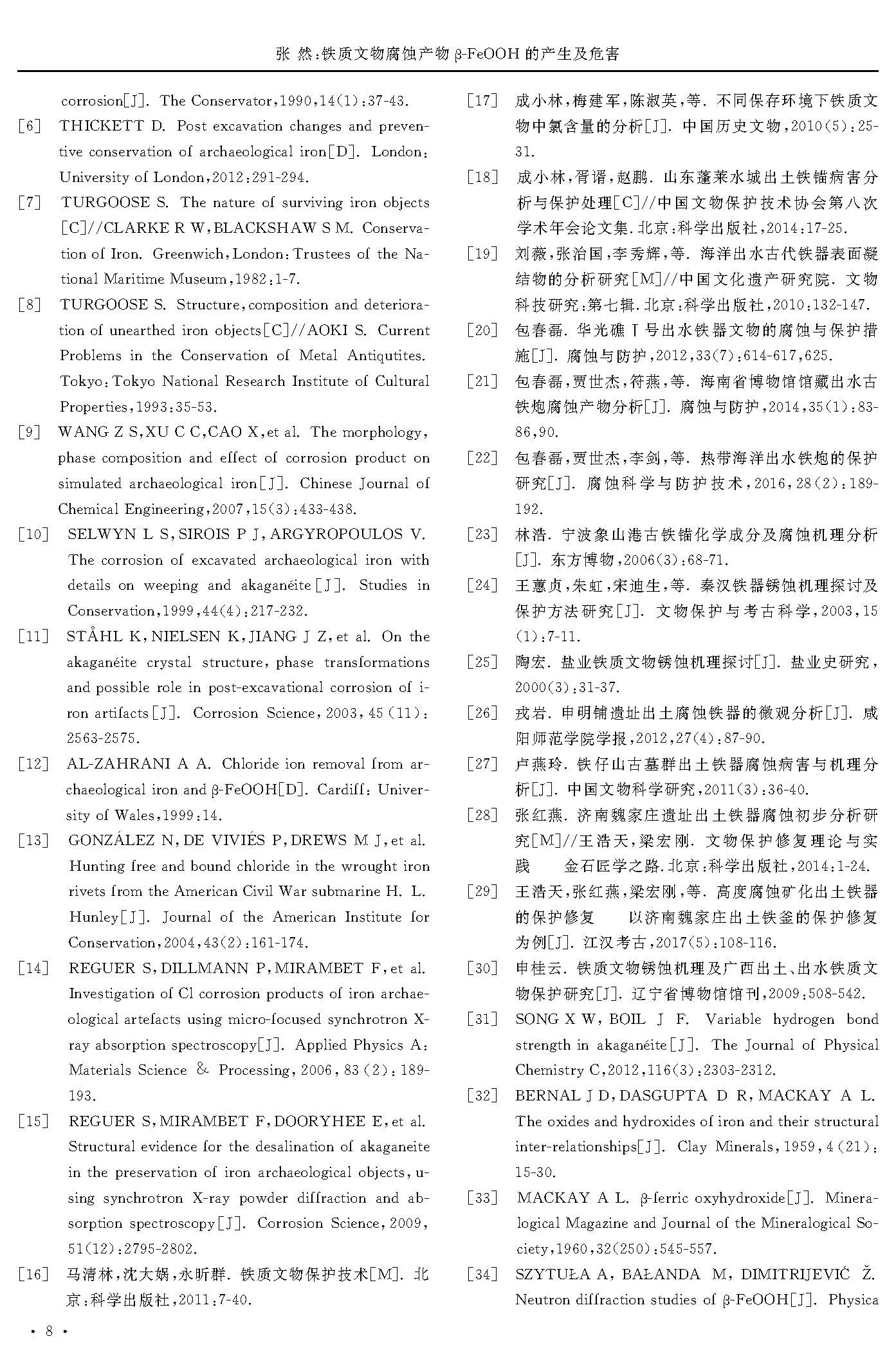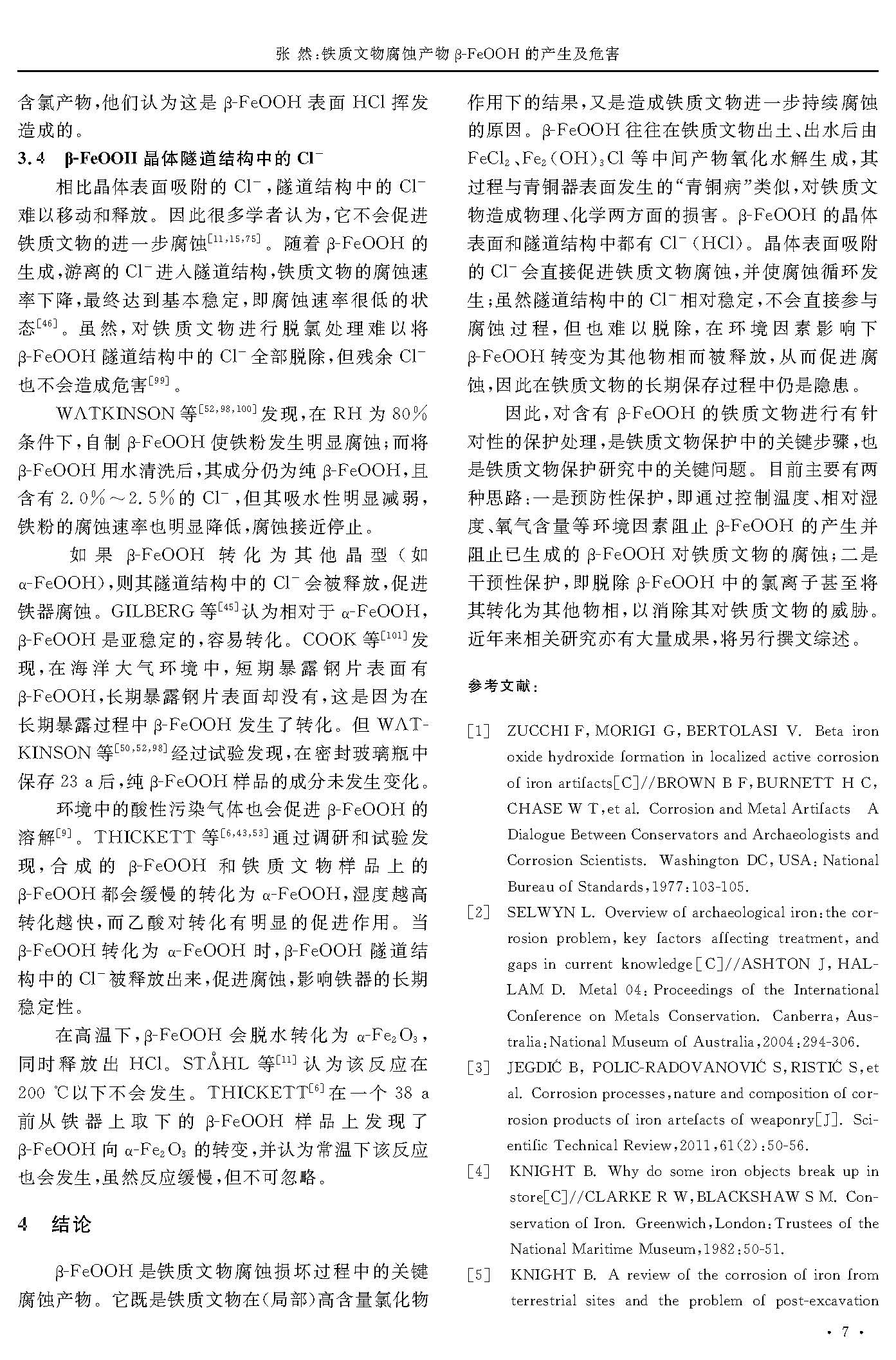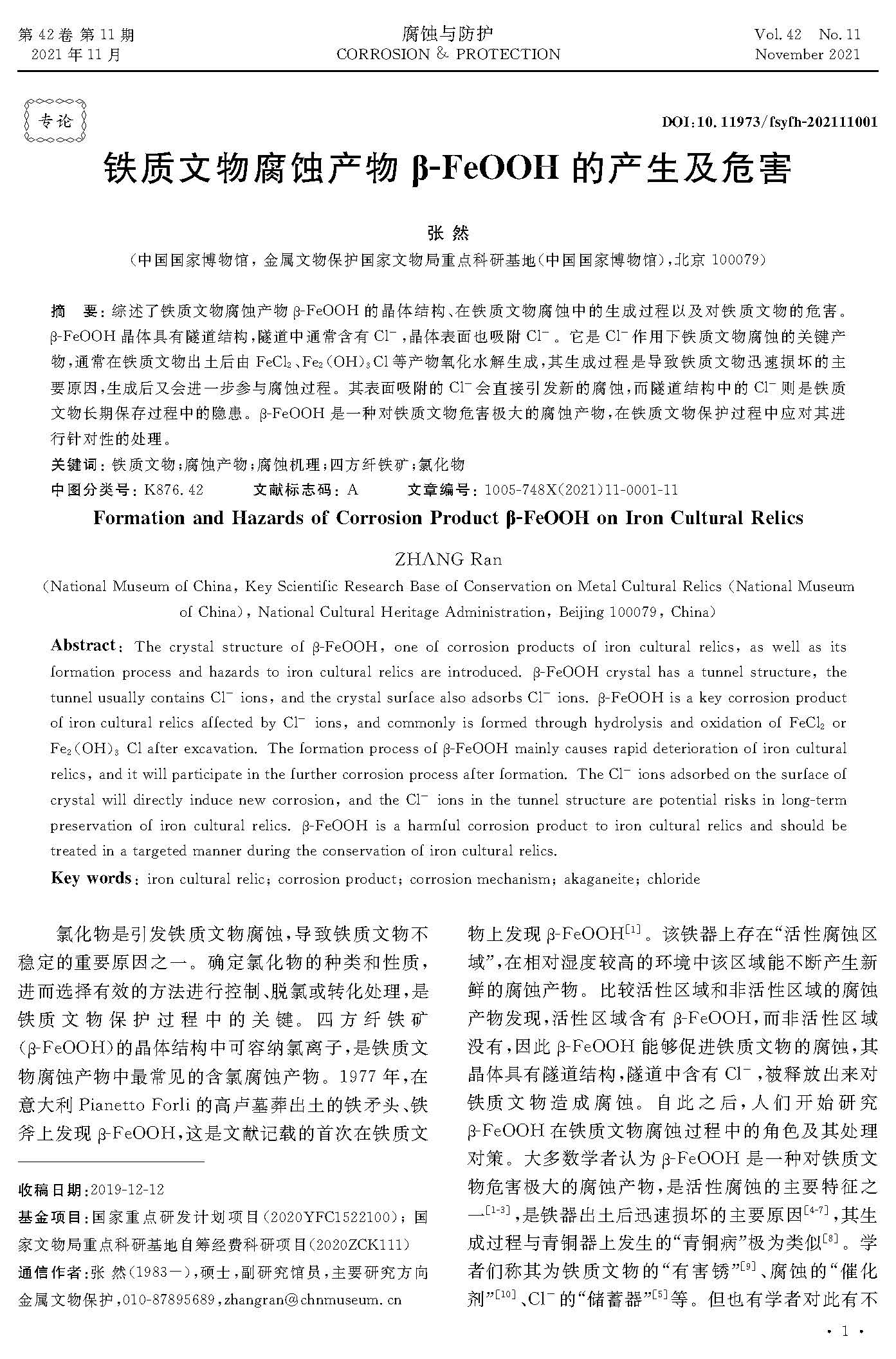 铁质文物腐蚀产物β-FeOOH的产生及危害