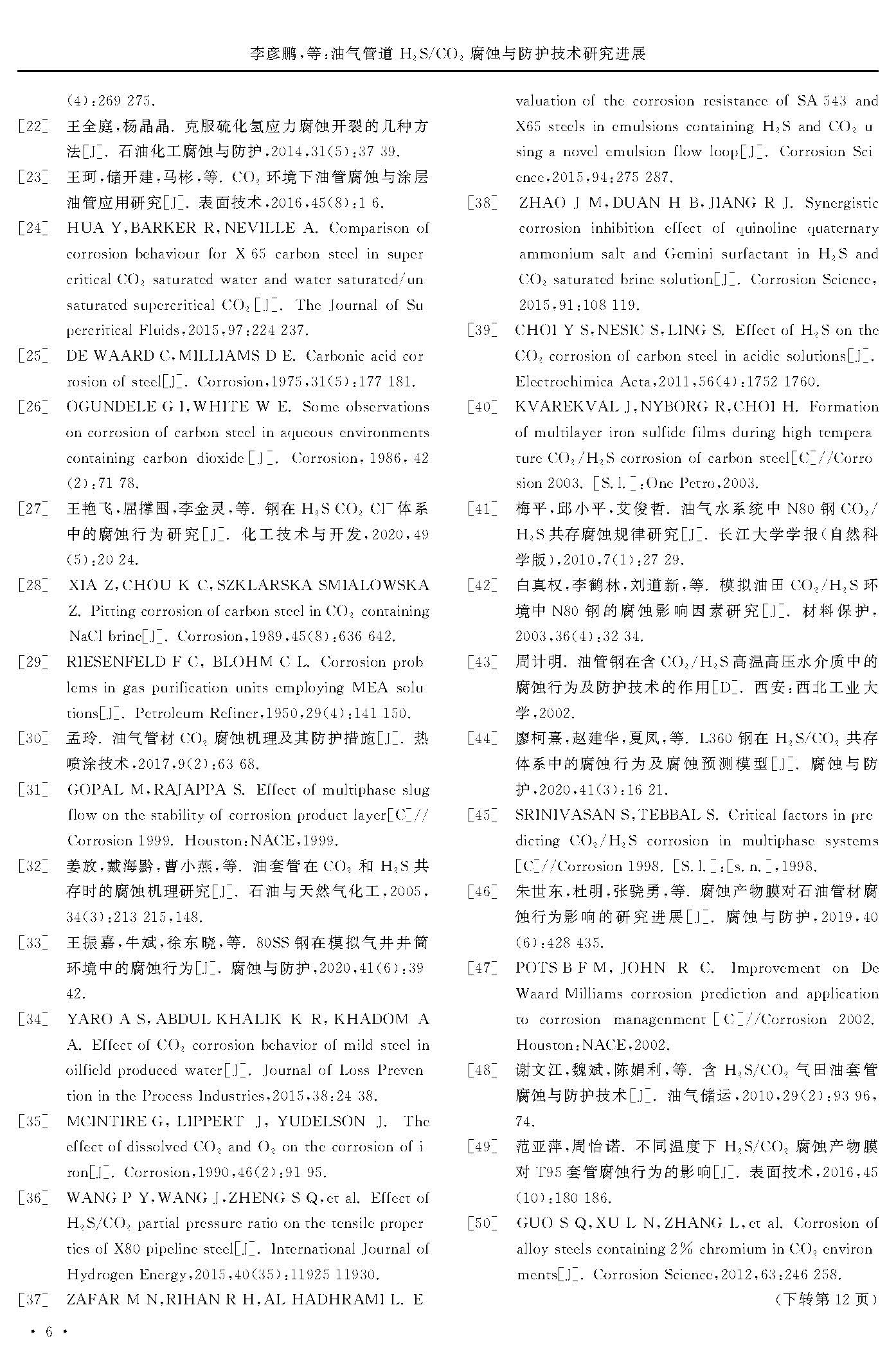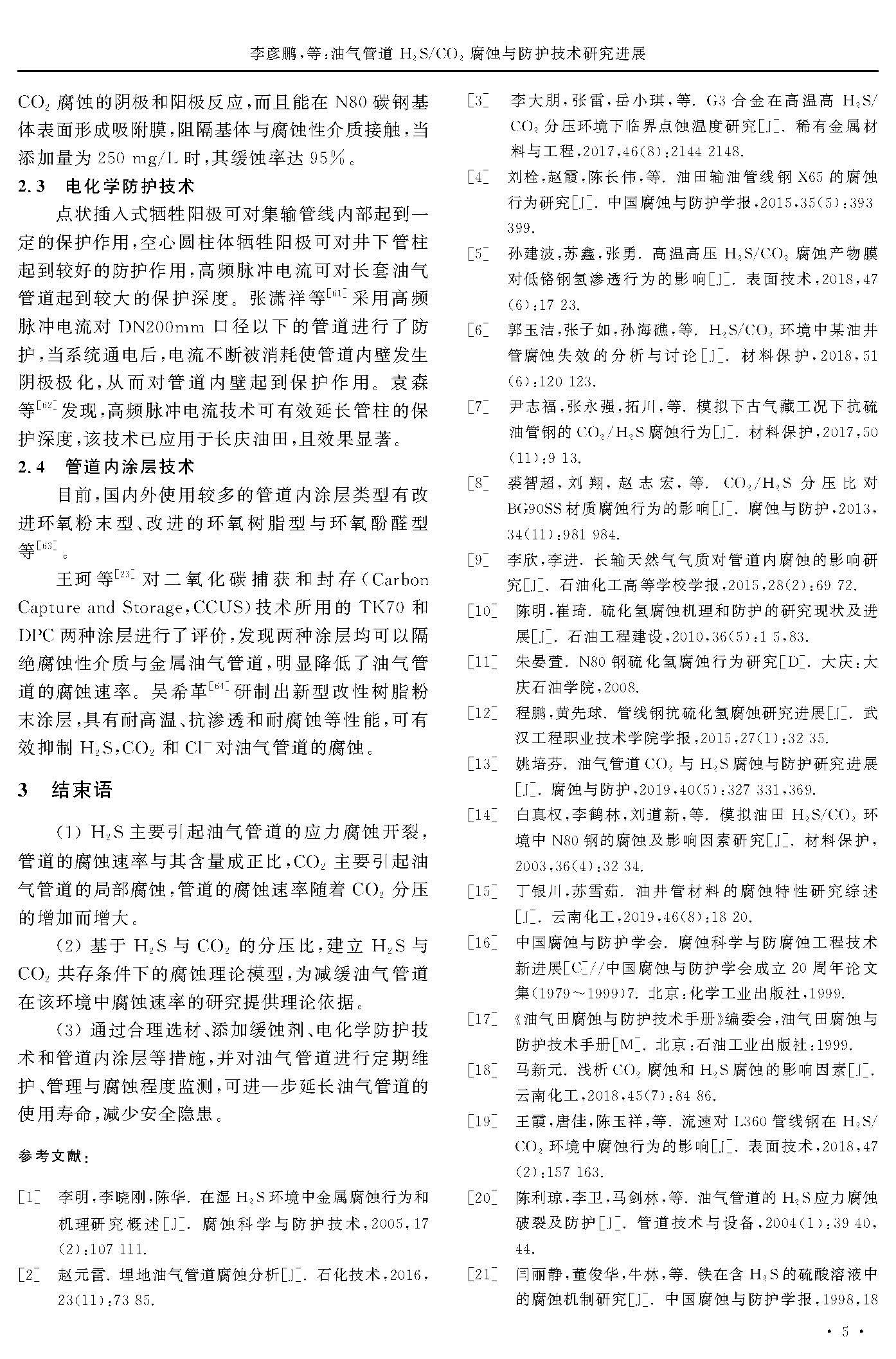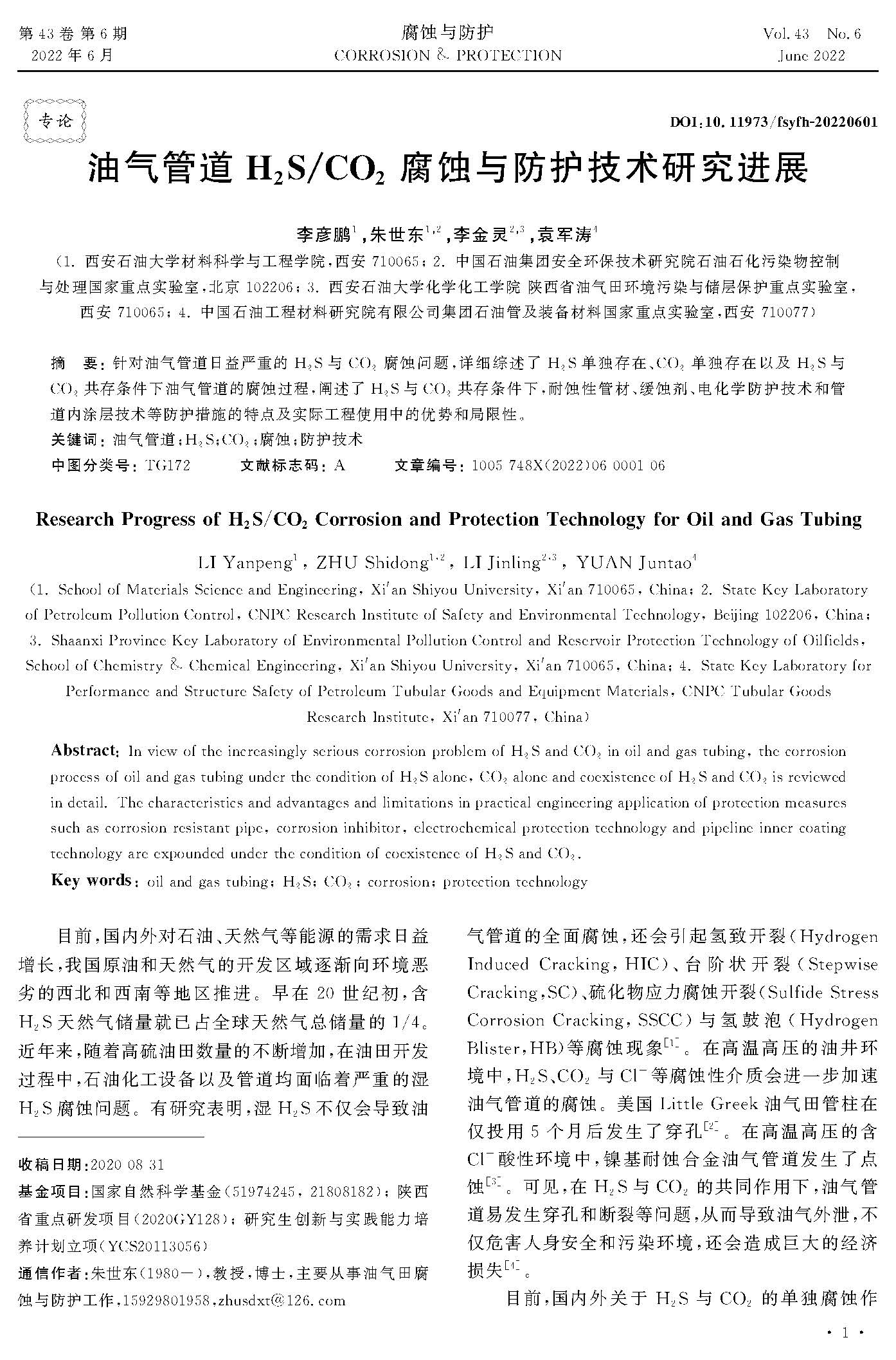 油气管道H2S/CO2 腐蚀与防护技术研究进展