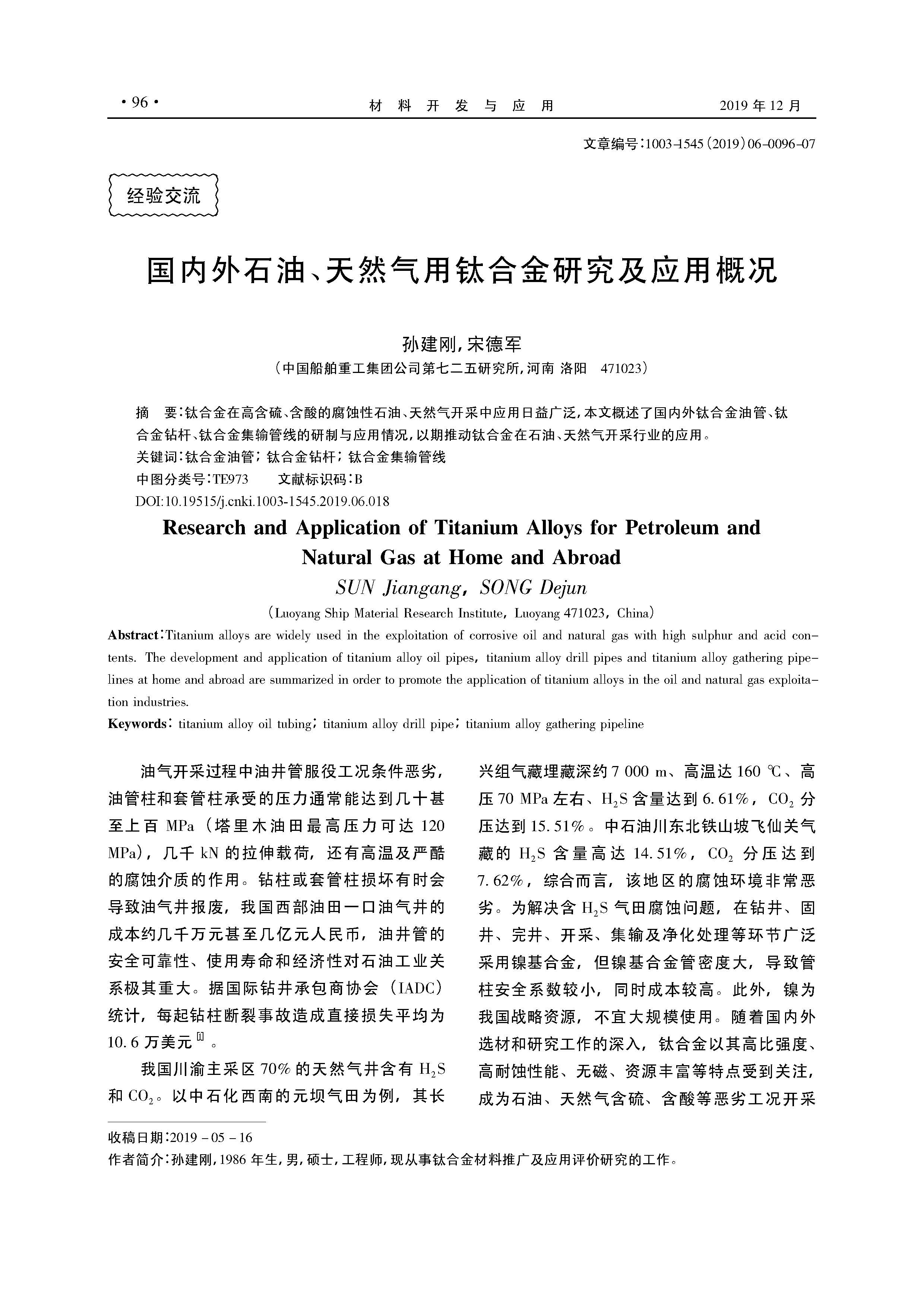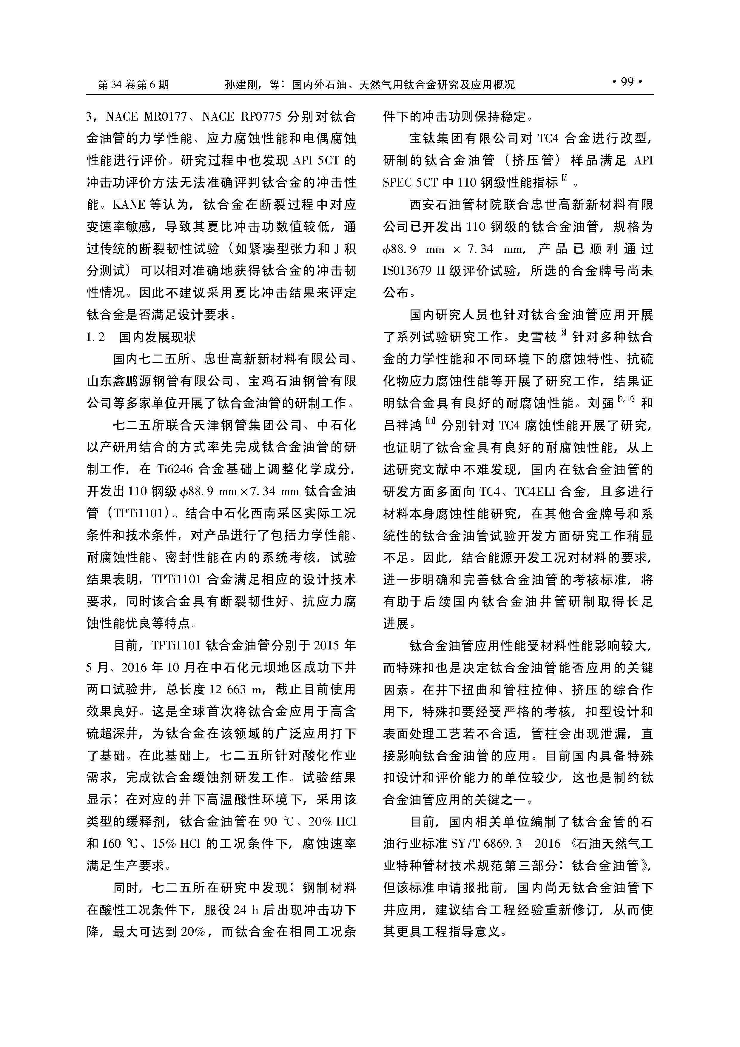 国内外石油、天然气用钛合金研究及应用概况