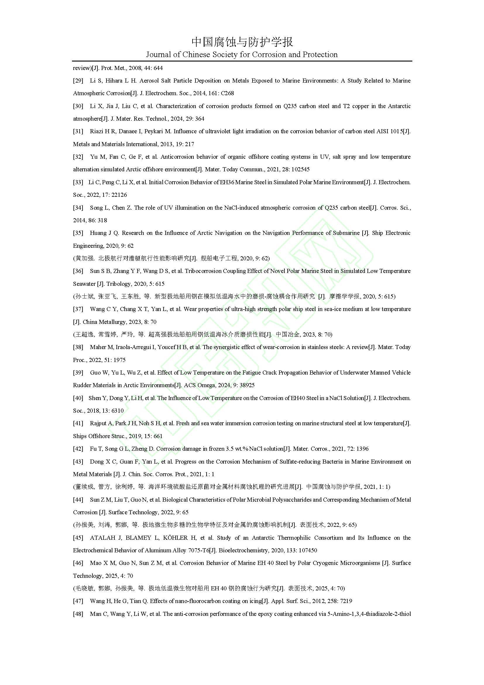 来源:中国腐蚀与防护学报