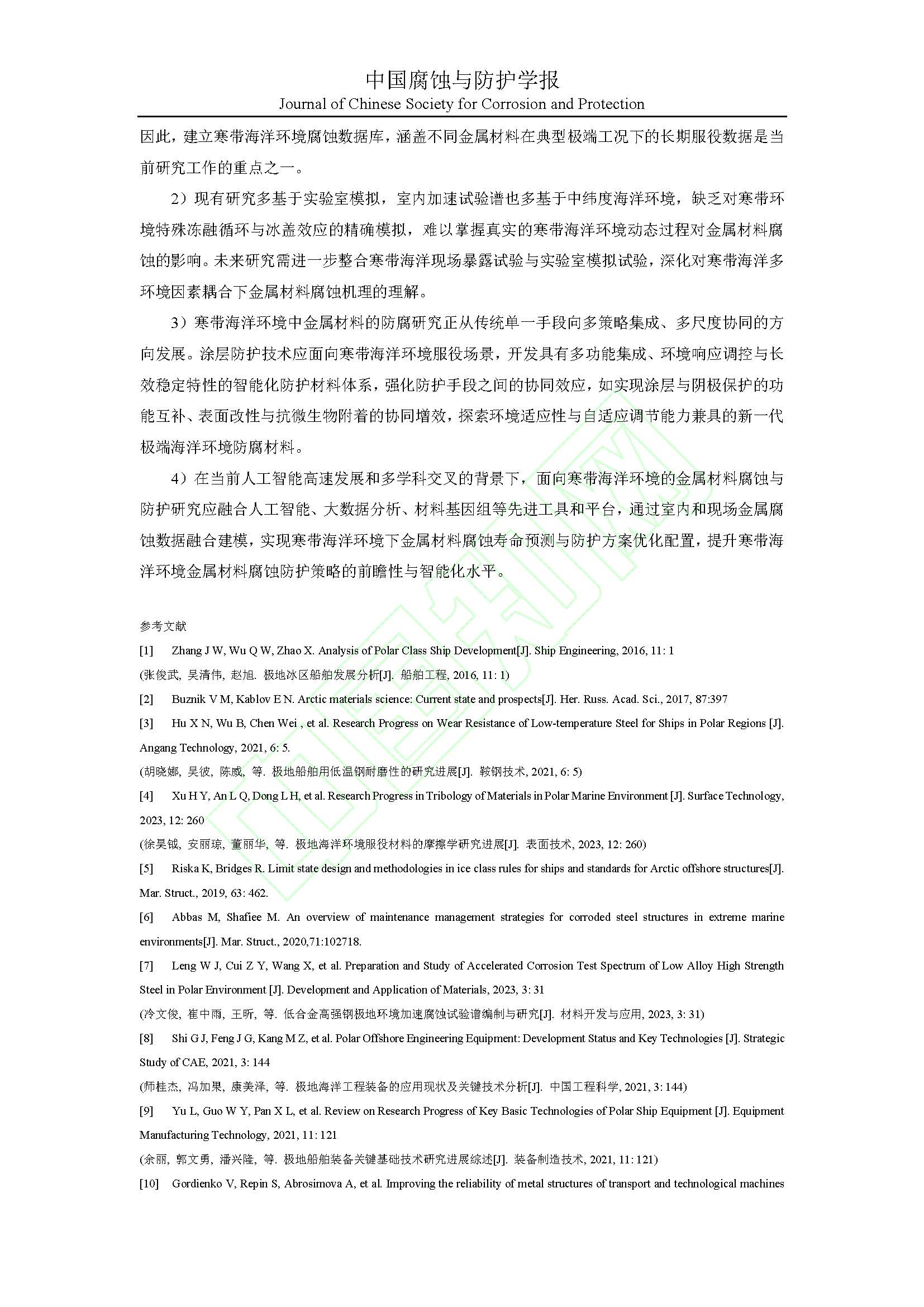寒带海洋环境下金属材料腐蚀与防护研究进展