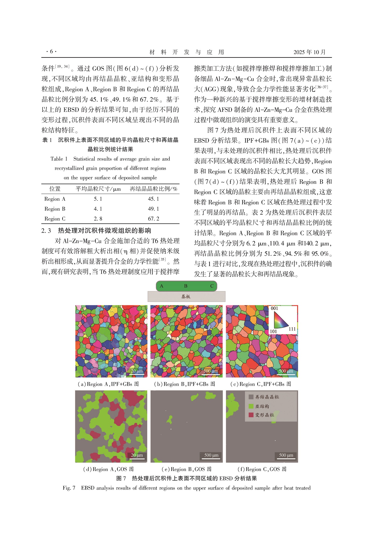 搅拌摩擦增材制造Al-Zn-Mg-Cu合金的微观组织特征及热处理响应行为