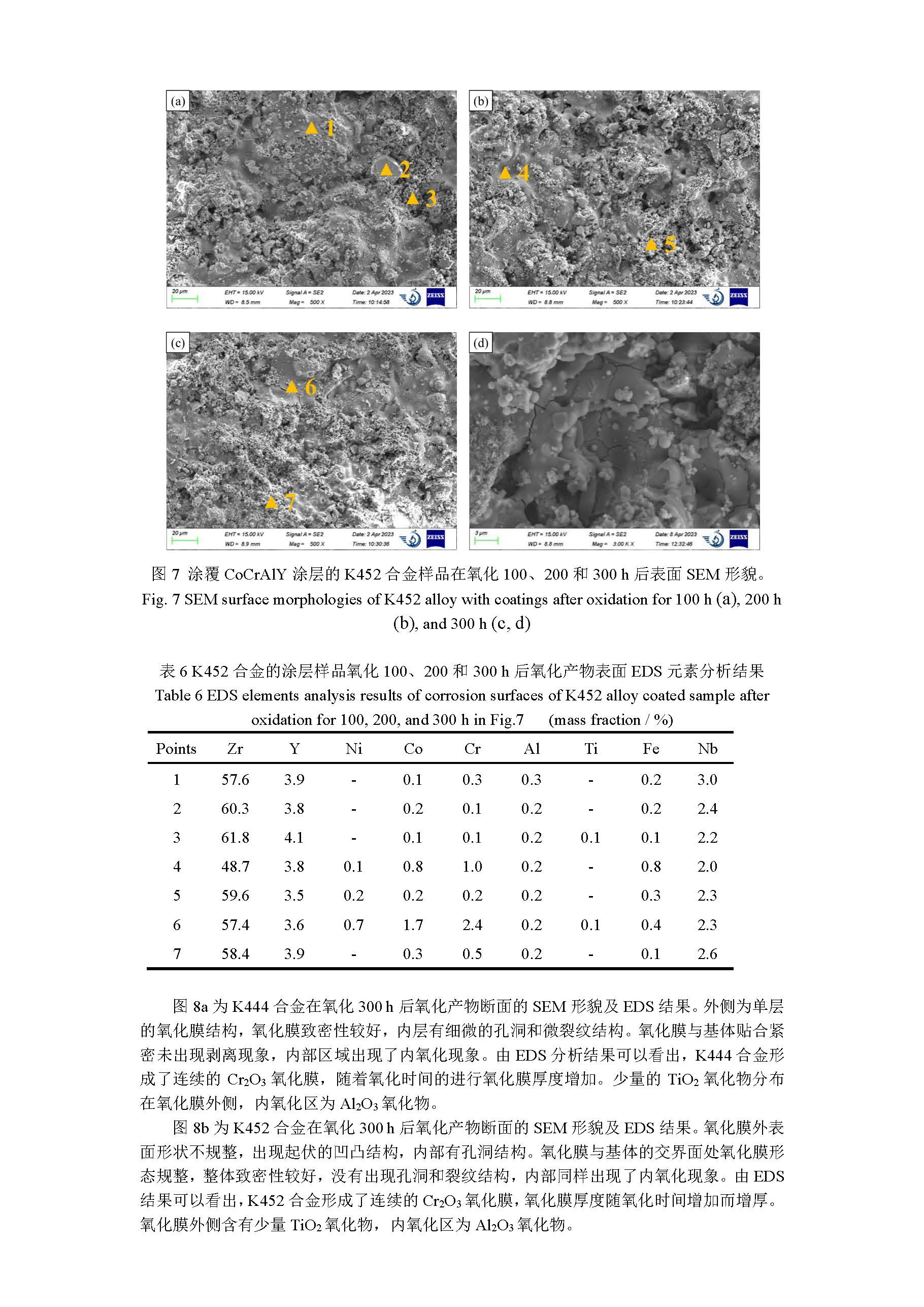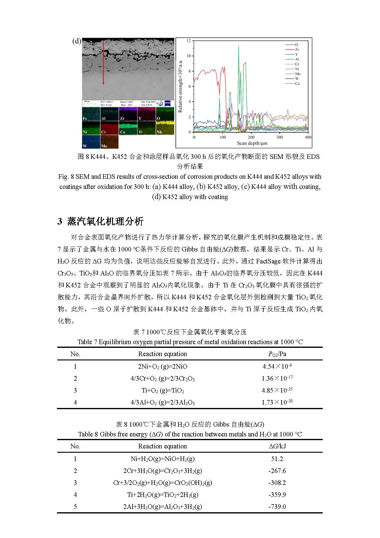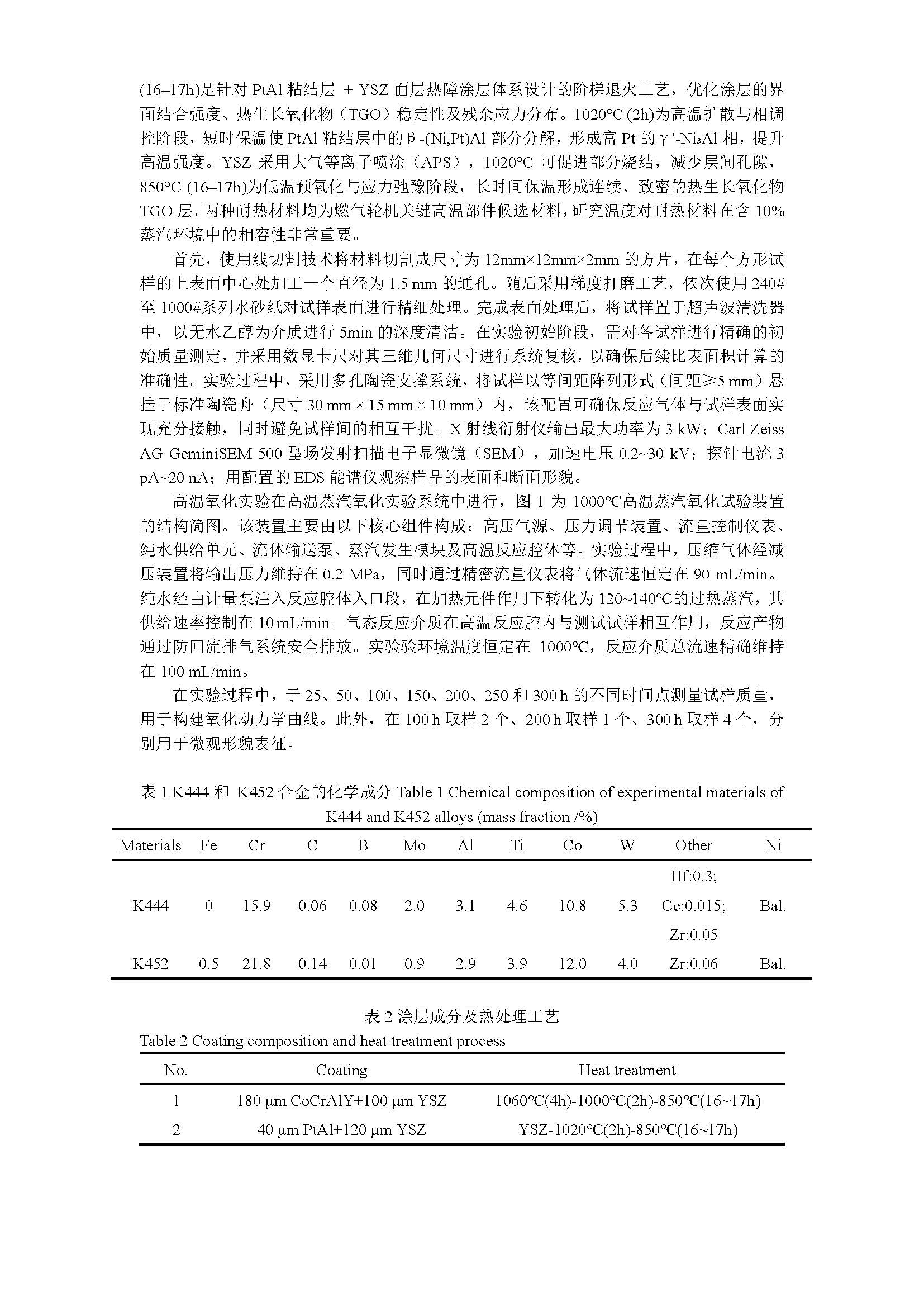 高温蒸汽环境下K444、K452合金及涂层的氧化行为研究