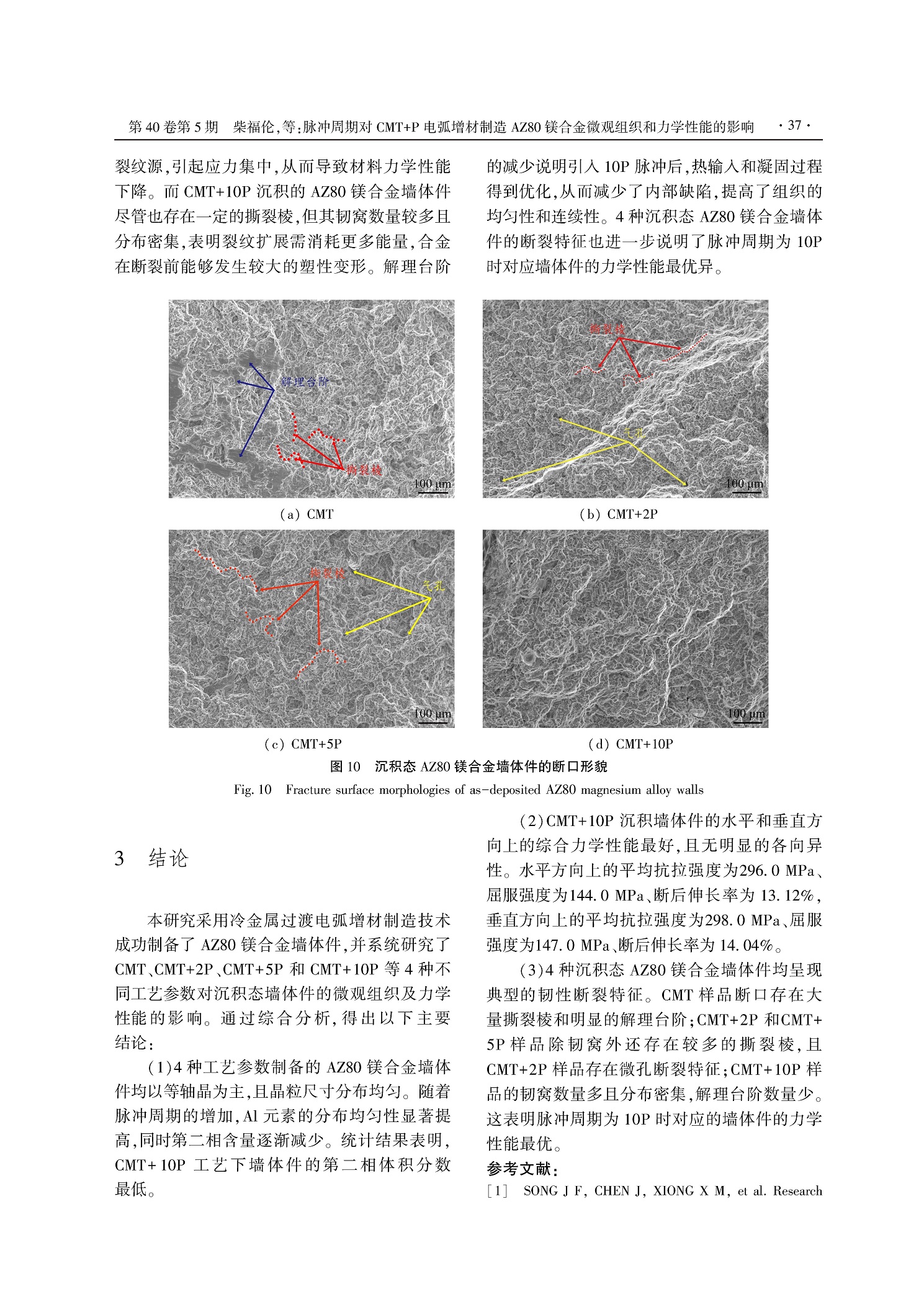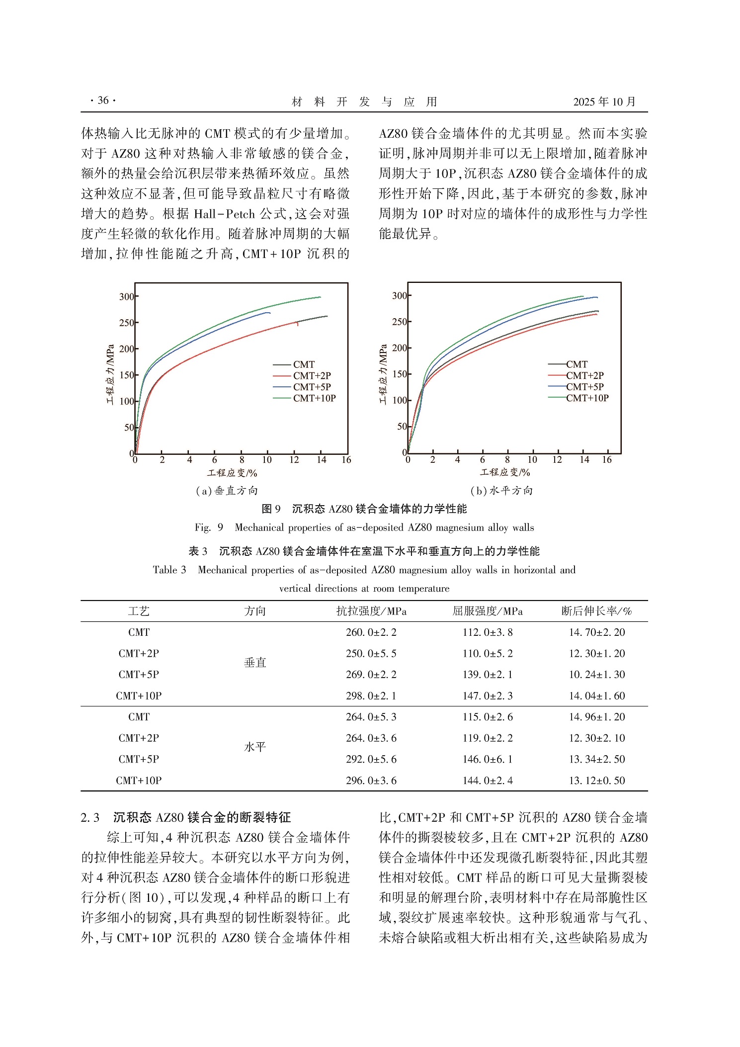 脉冲周期对CMT+P电弧增材制造AZ80镁合金微观组织和力学性能的影响