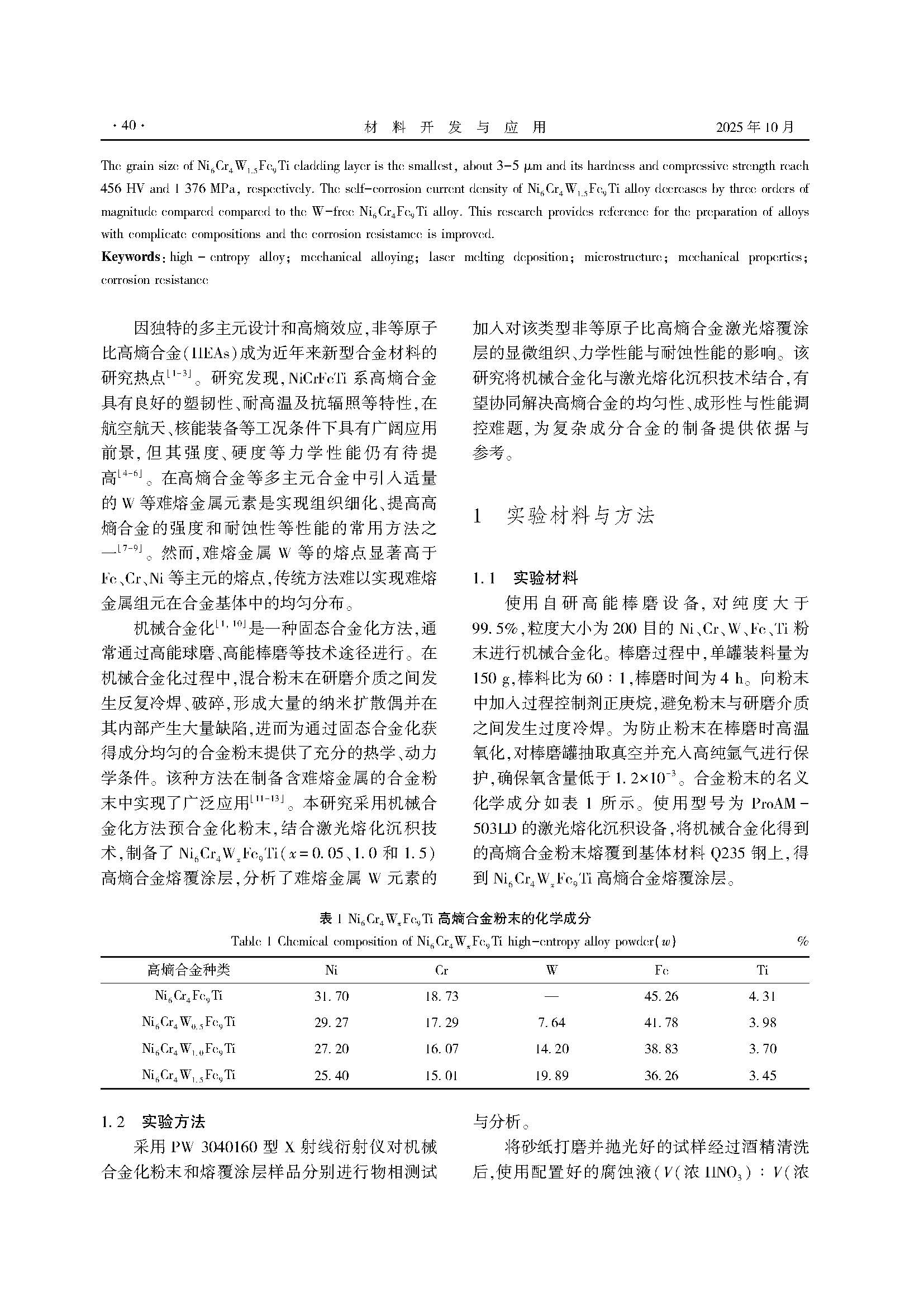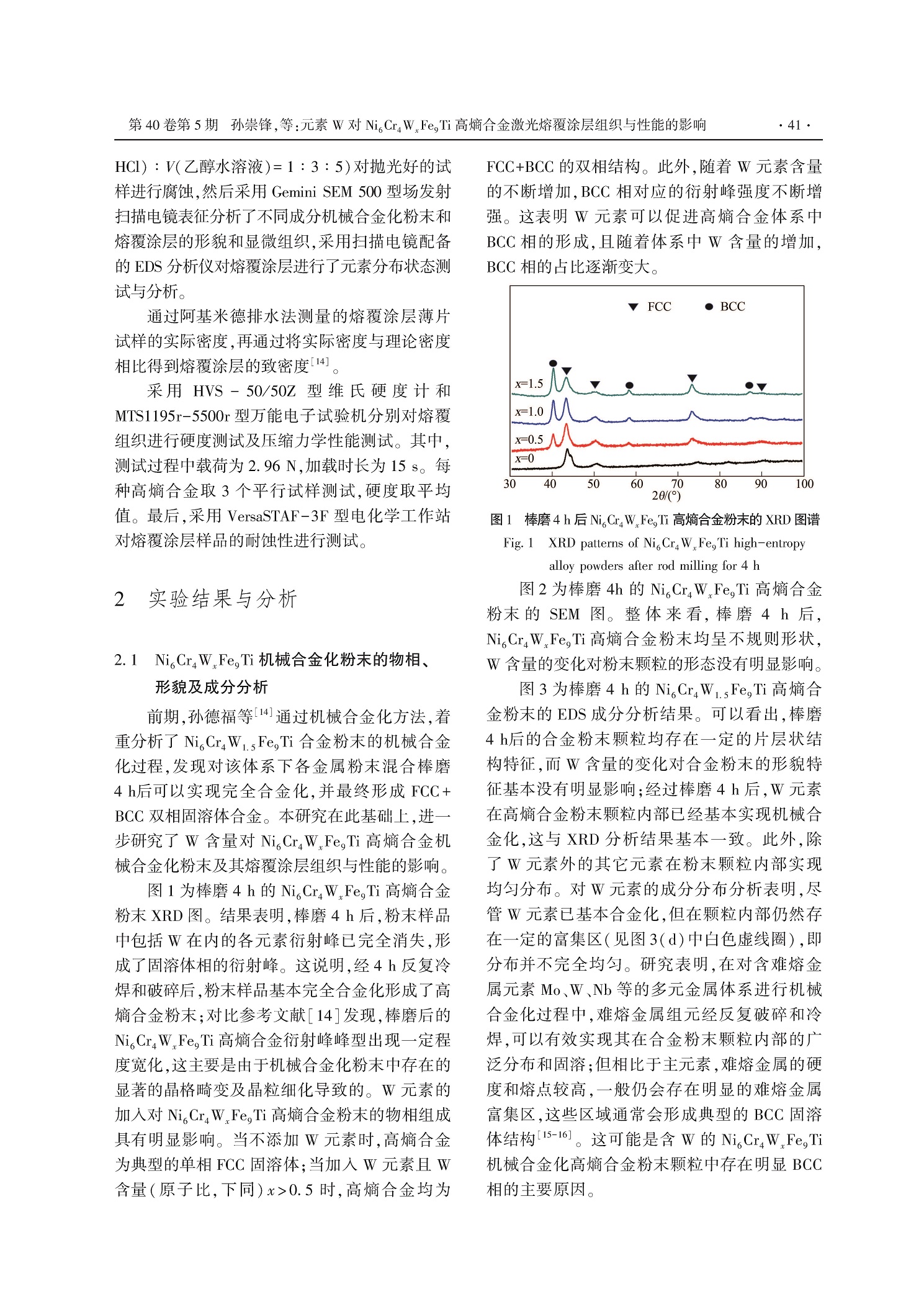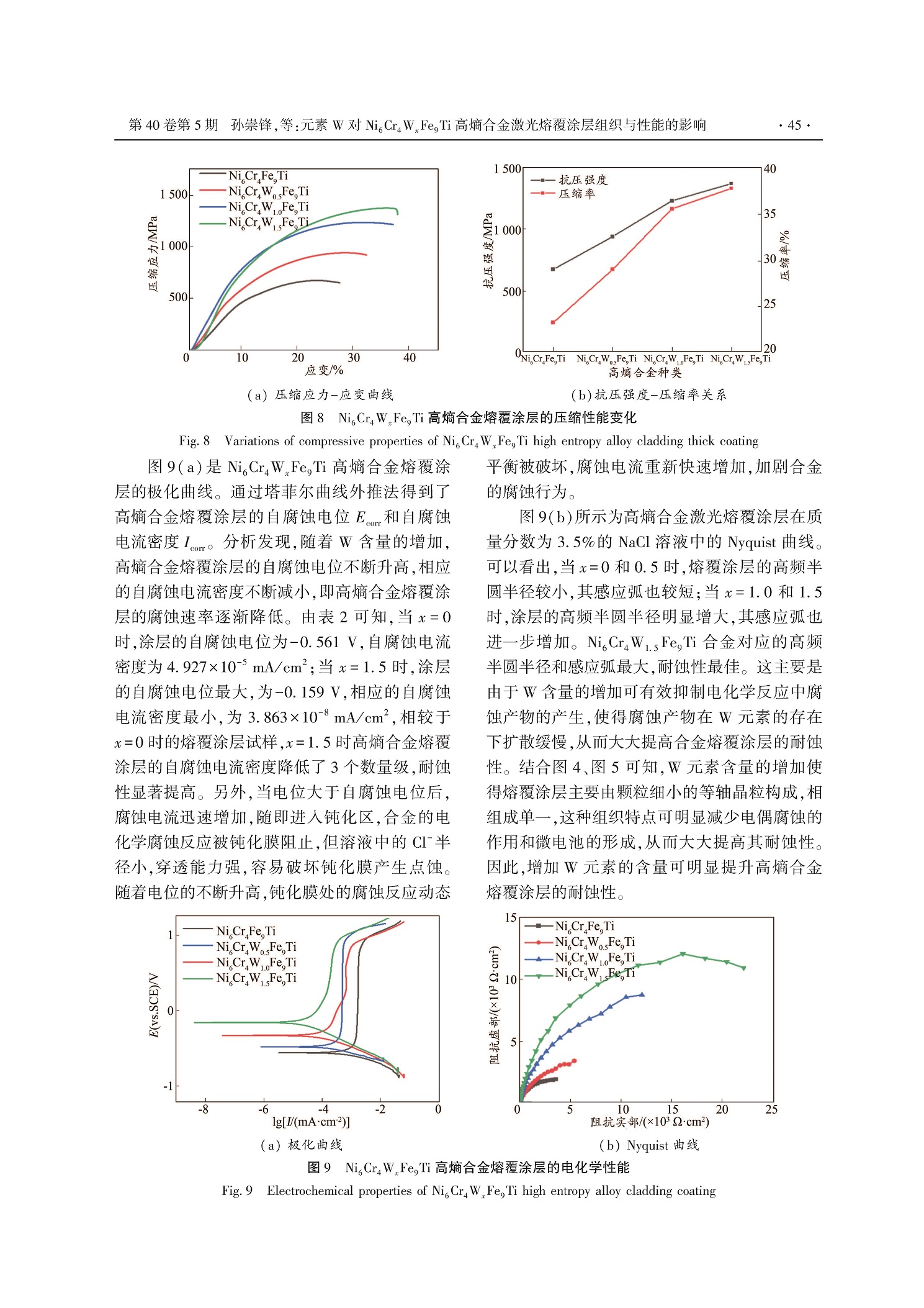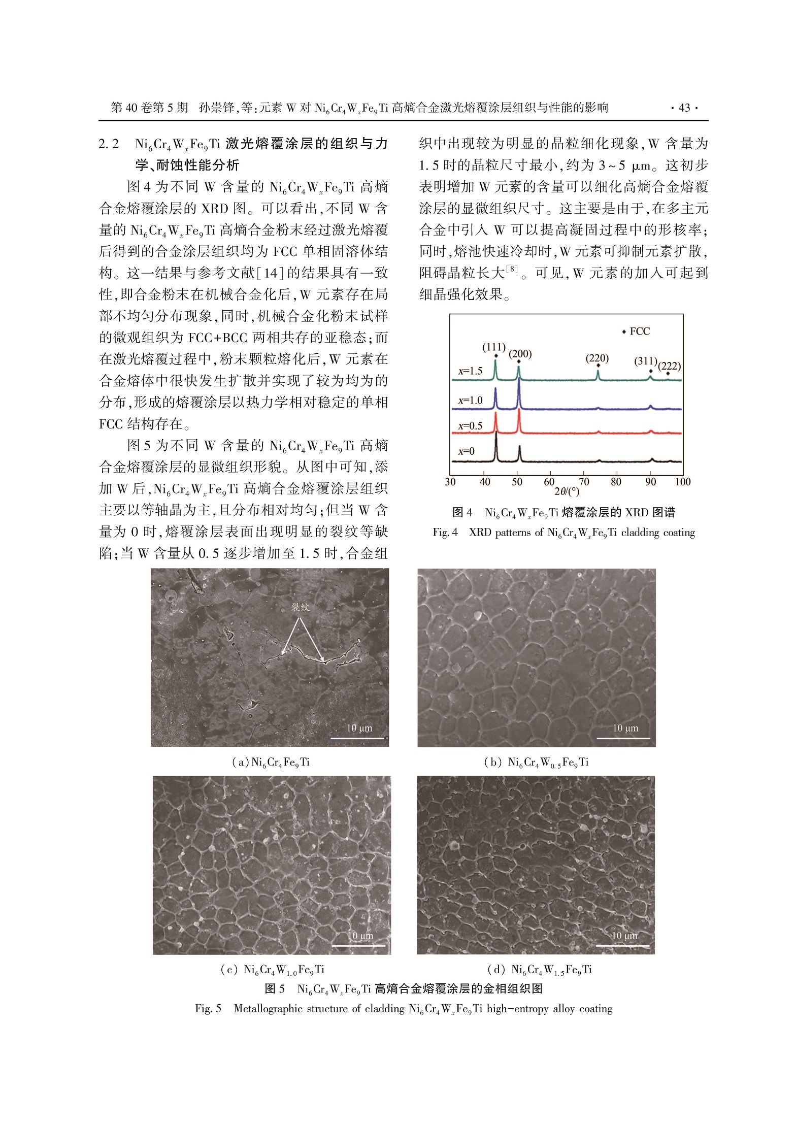 元素W对Ni6Cr4WxFe9Ti高熵合金激光熔覆涂层组织与性能的影响