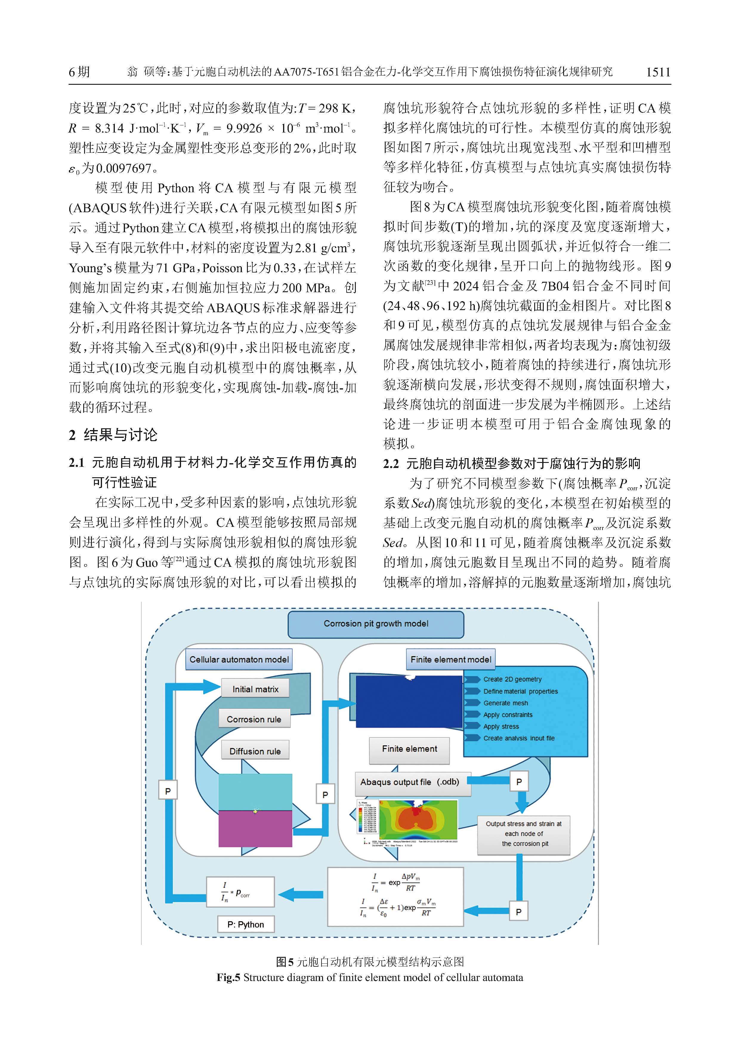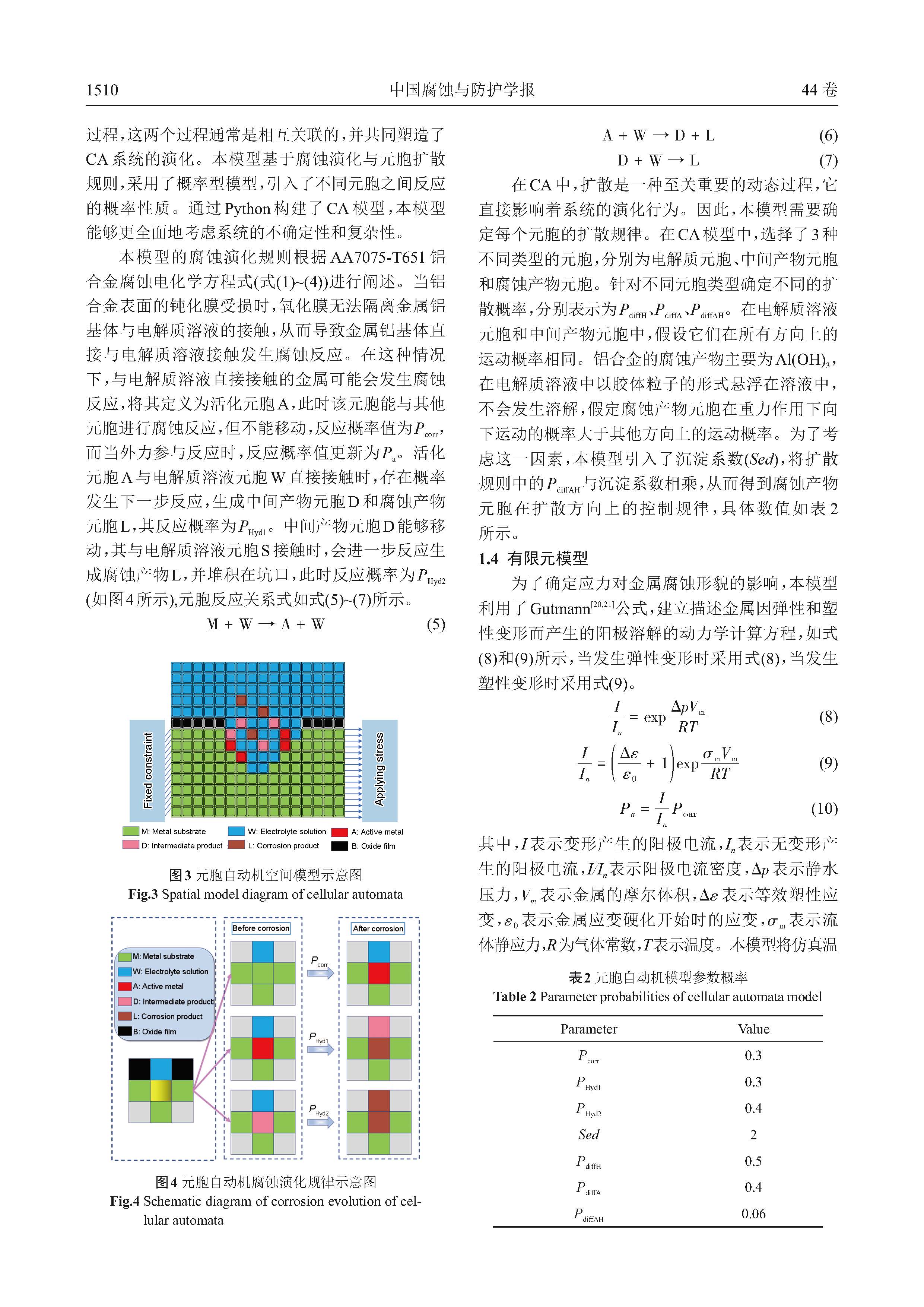 基于元胞自动机法的AA7075-T651铝合金在力-化学交互作用下腐蚀损伤特征演化规律研究