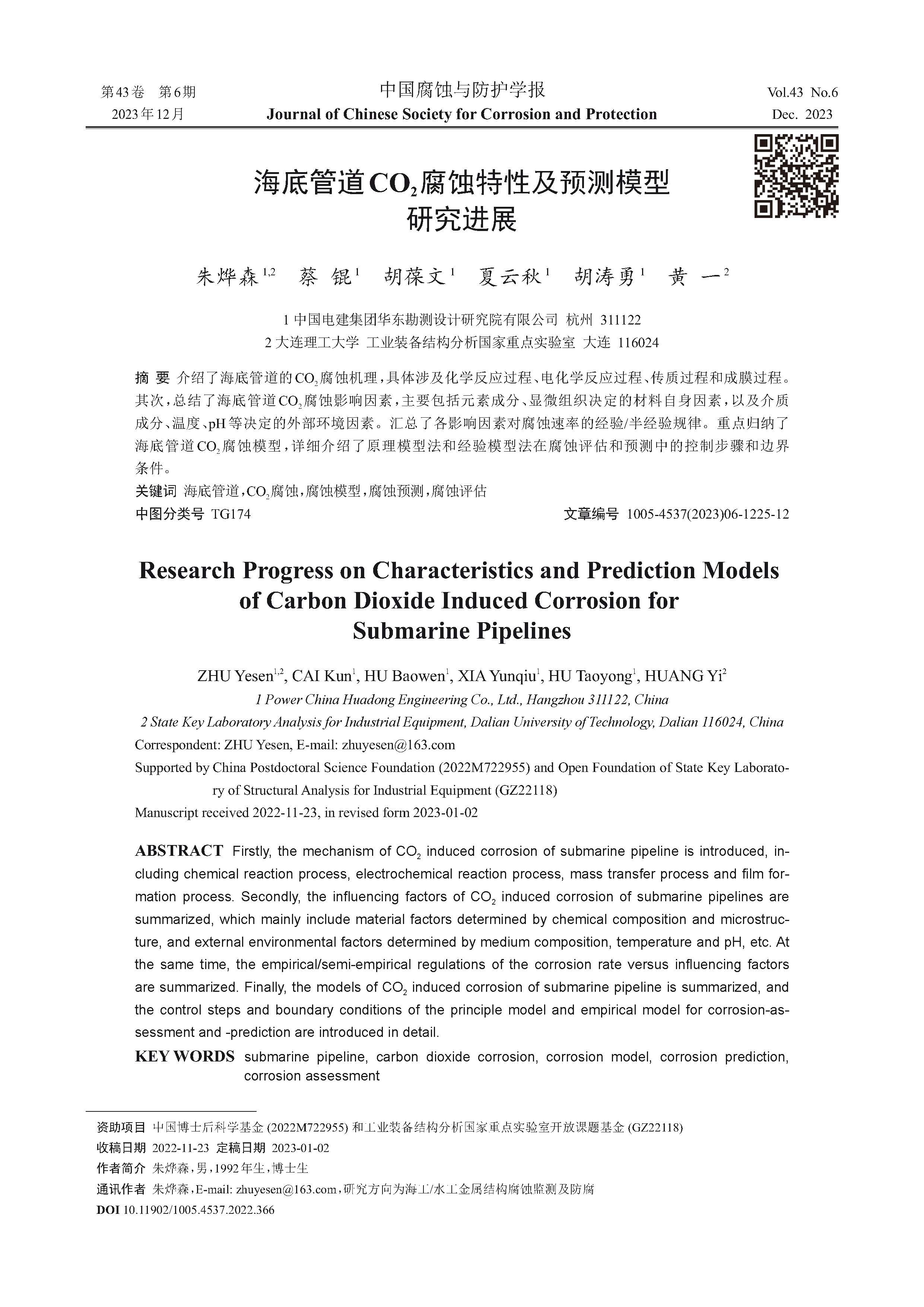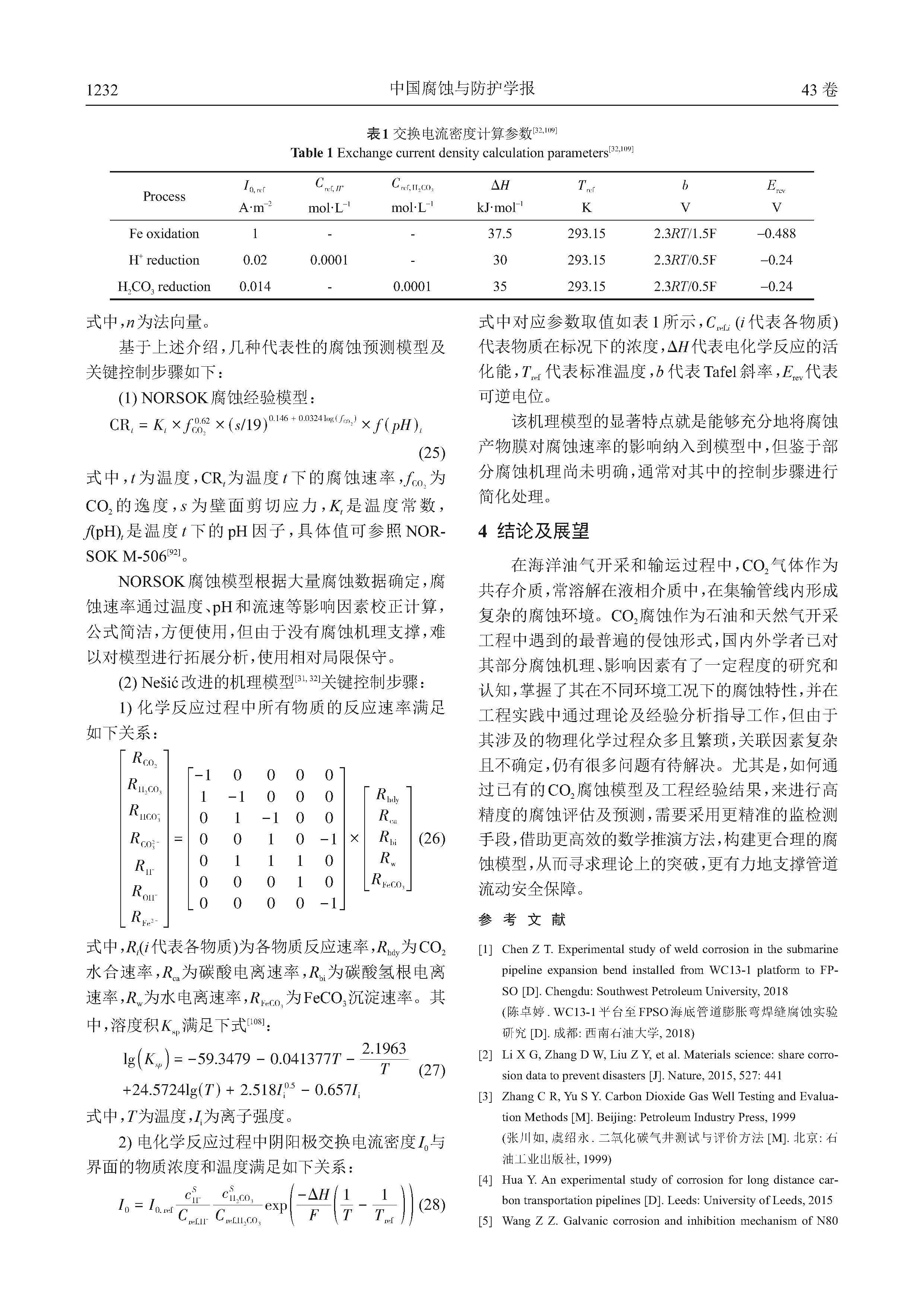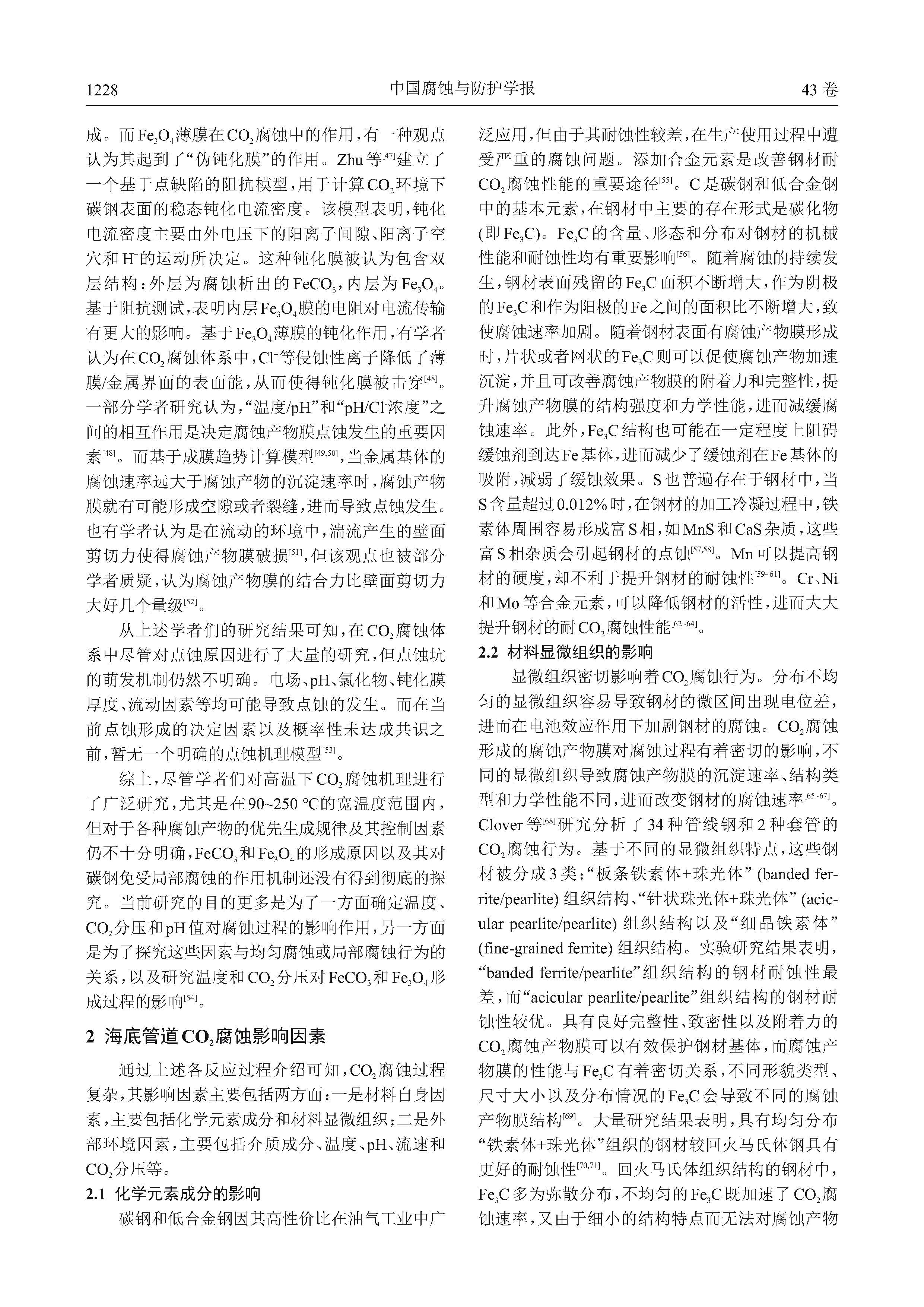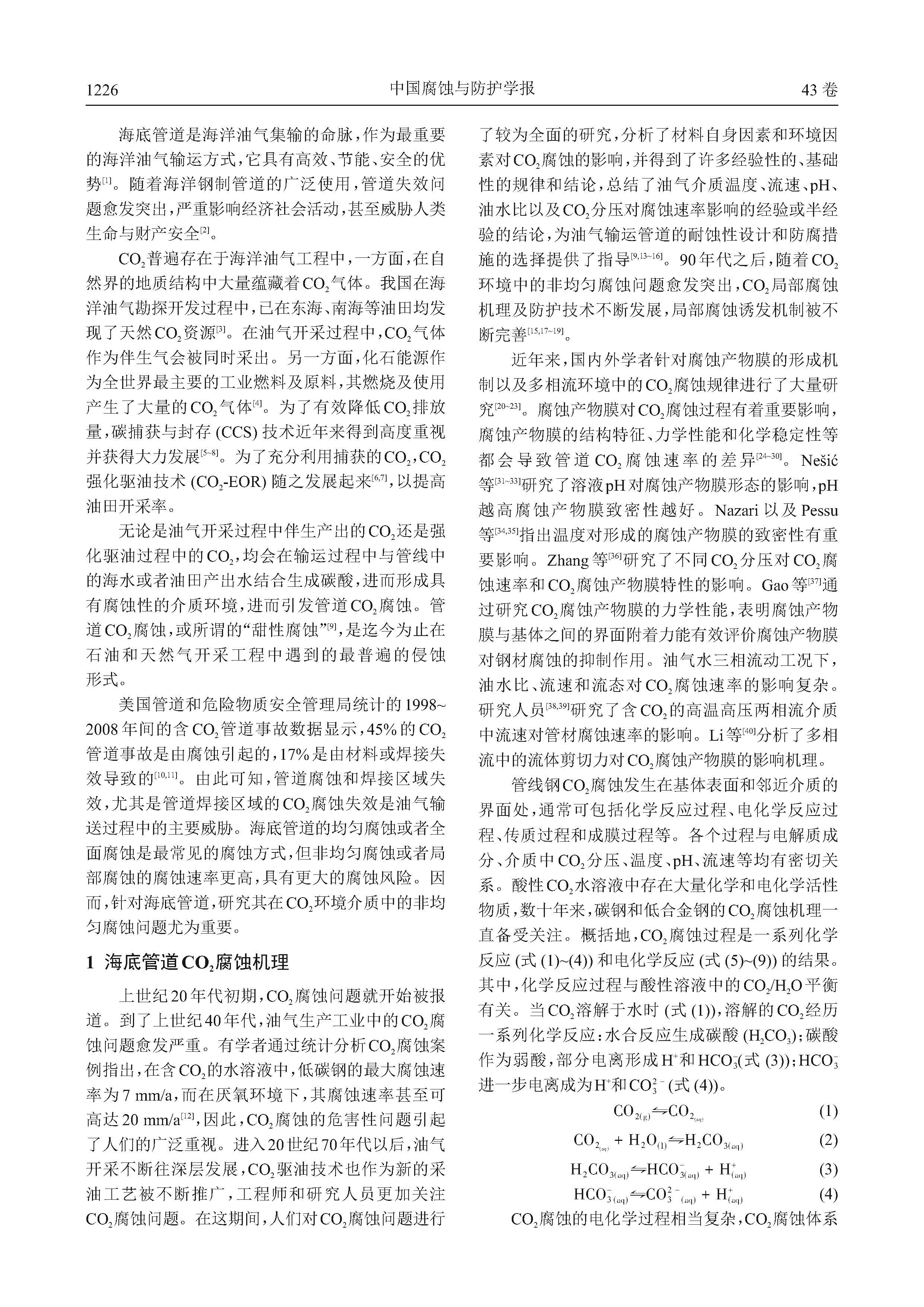 海底管道CO2腐蚀特性及预测模型研究进展