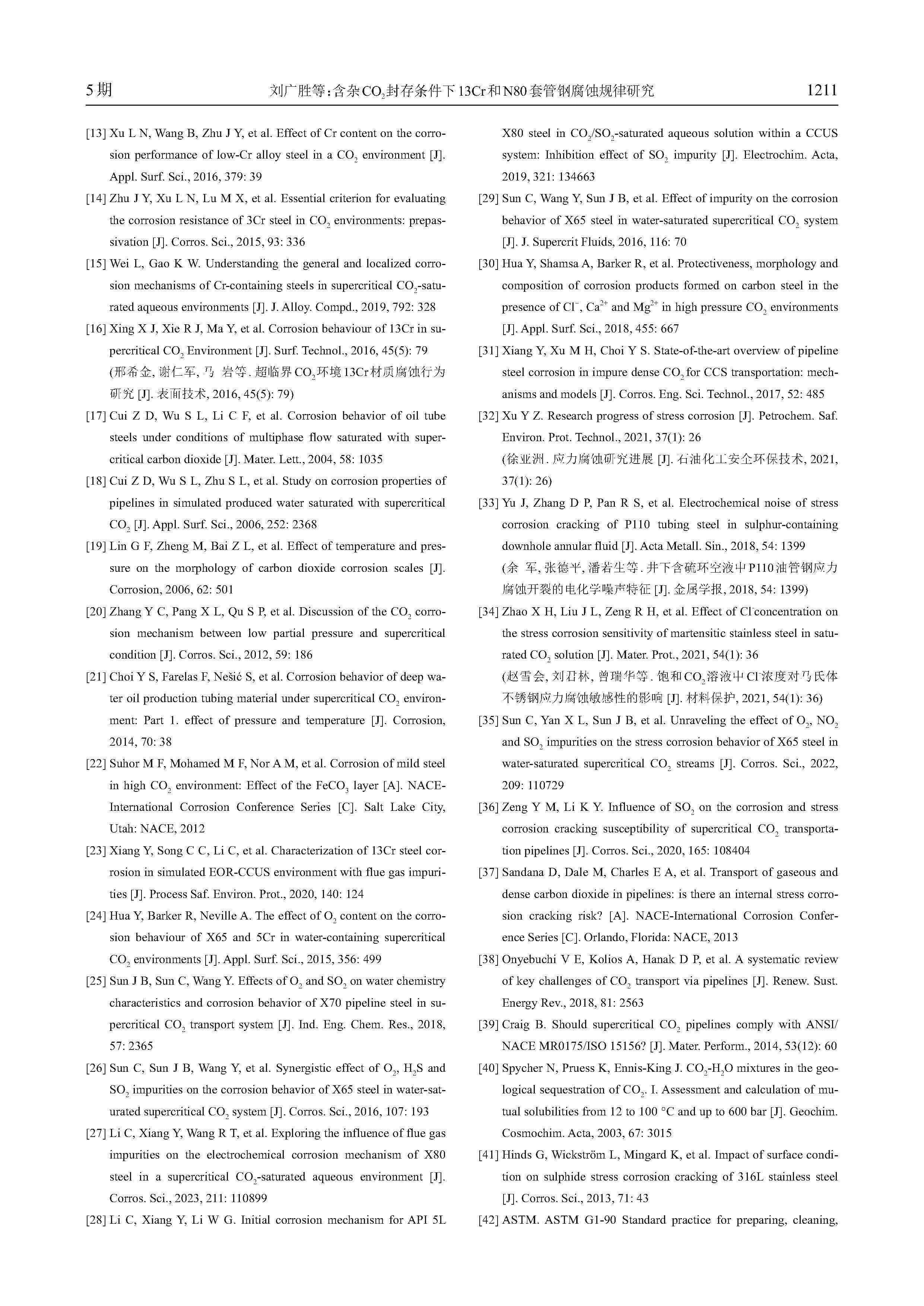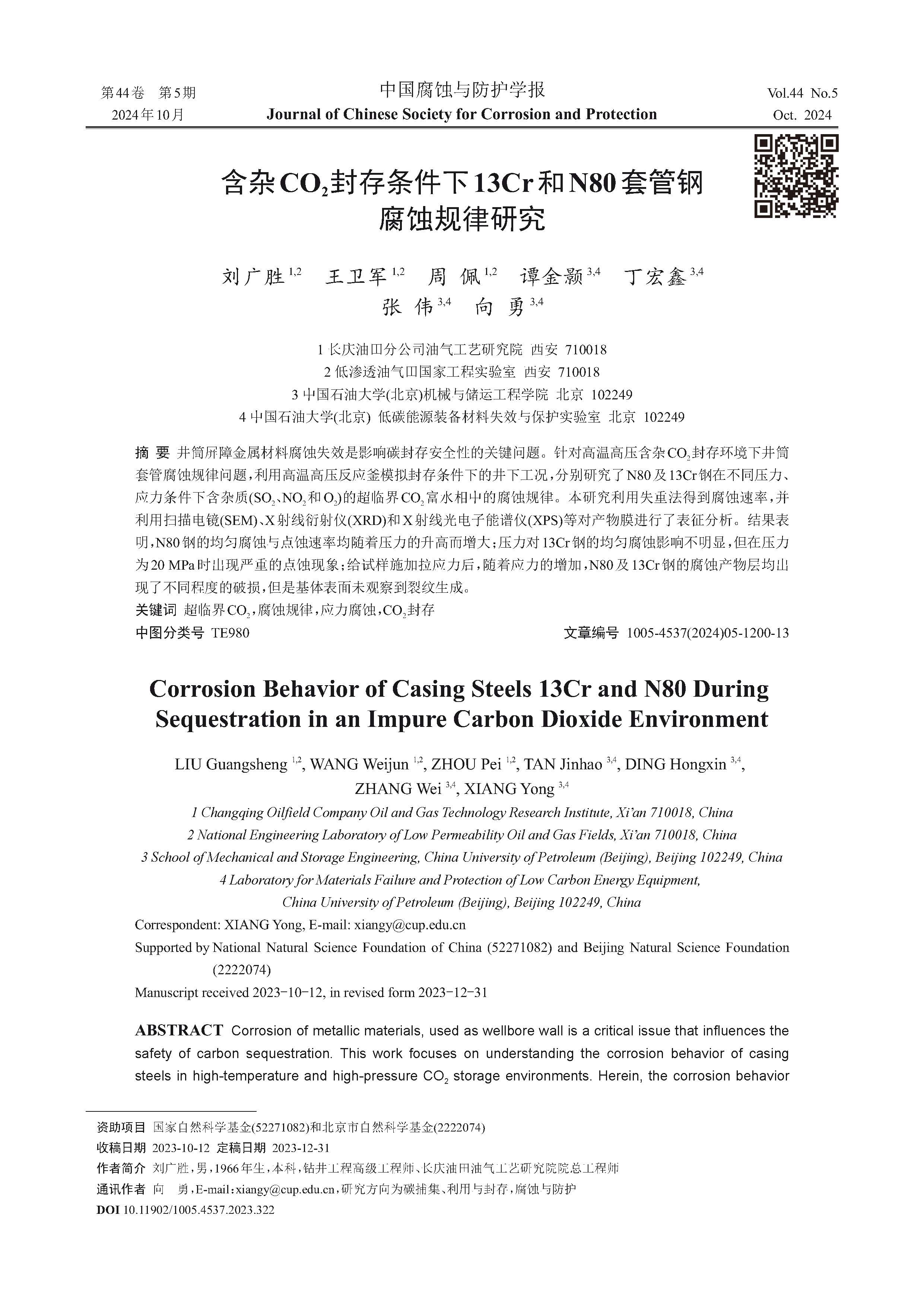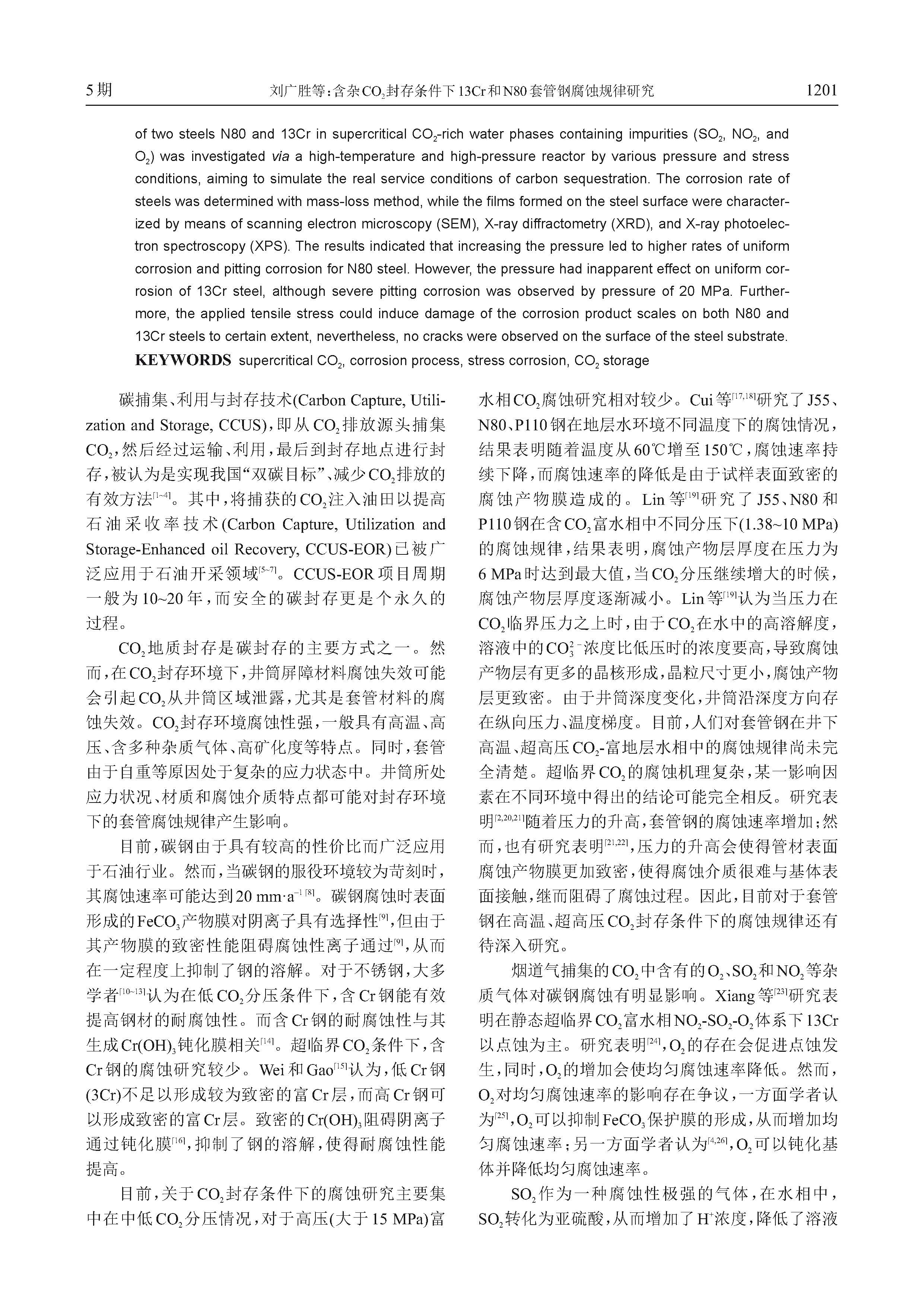 含杂CO2封存条件下13Cr和N80套管钢腐蚀规律研究