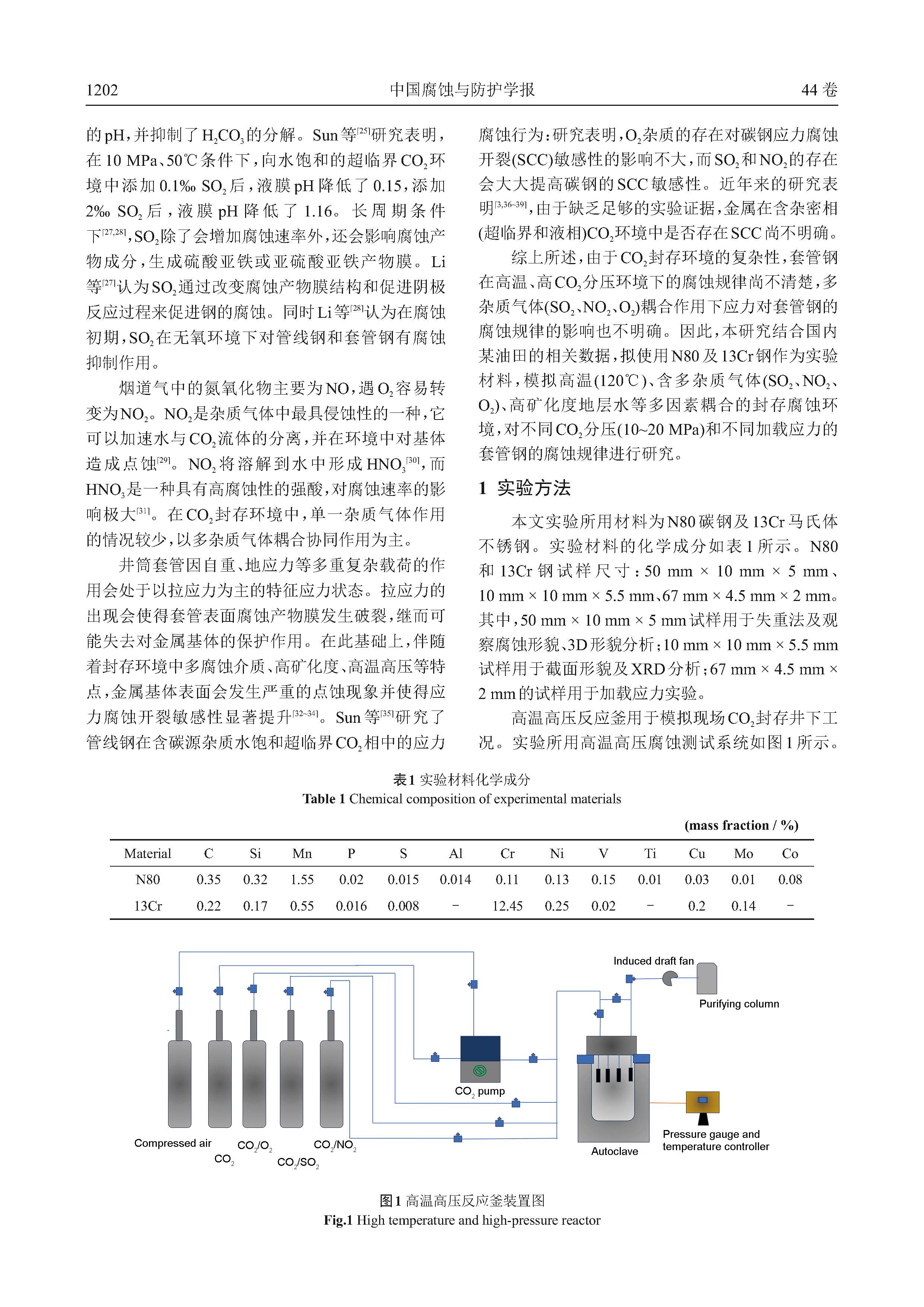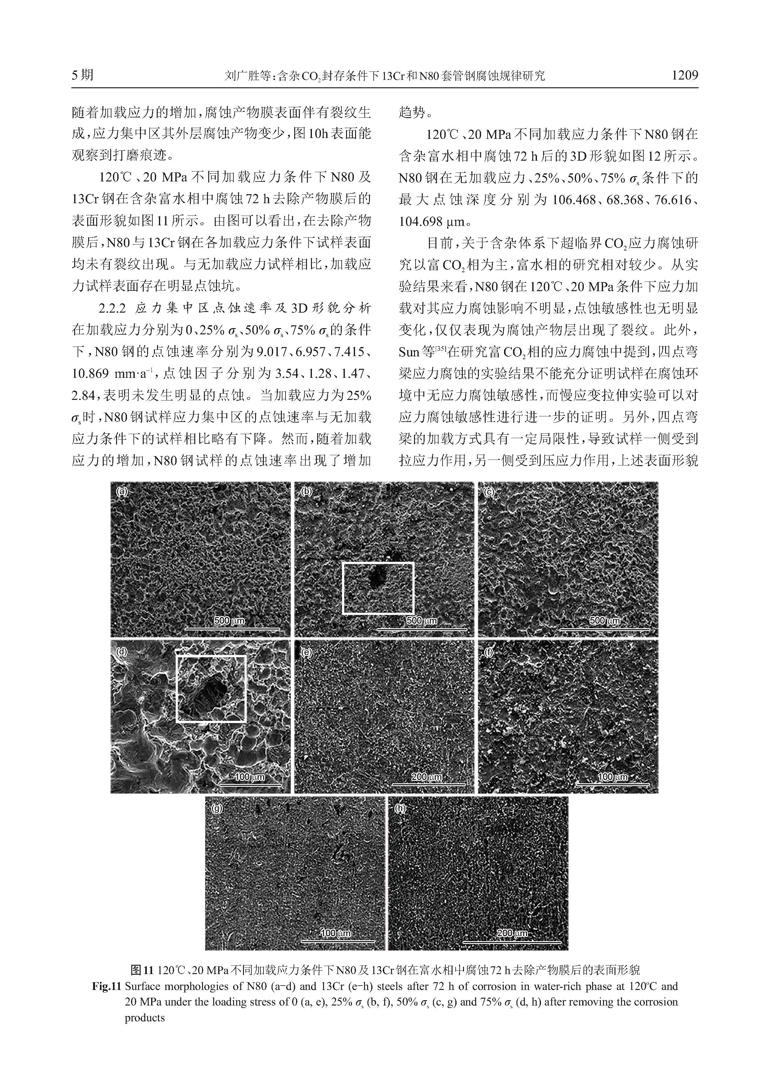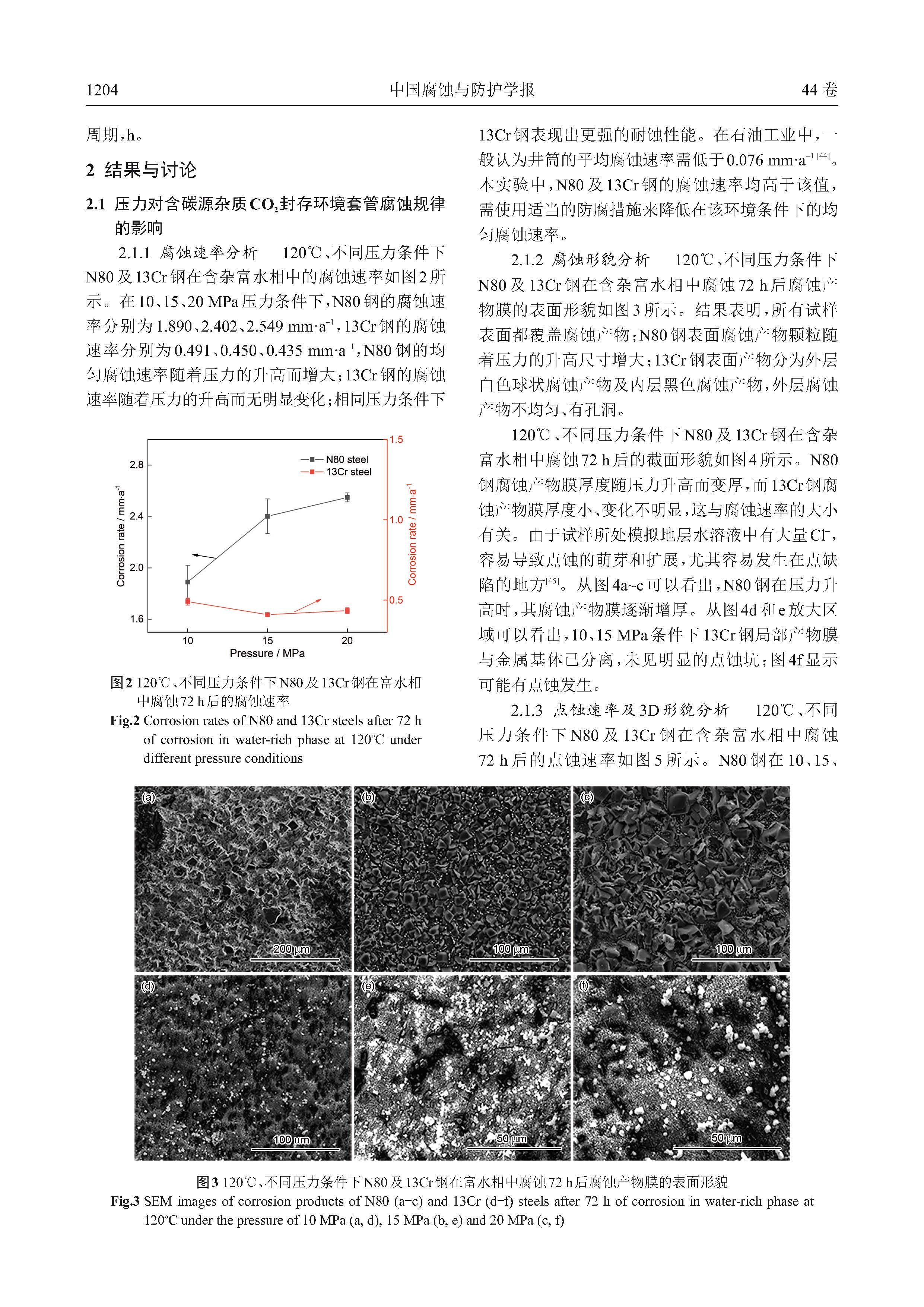 含杂CO2封存条件下13Cr和N80套管钢腐蚀规律研究