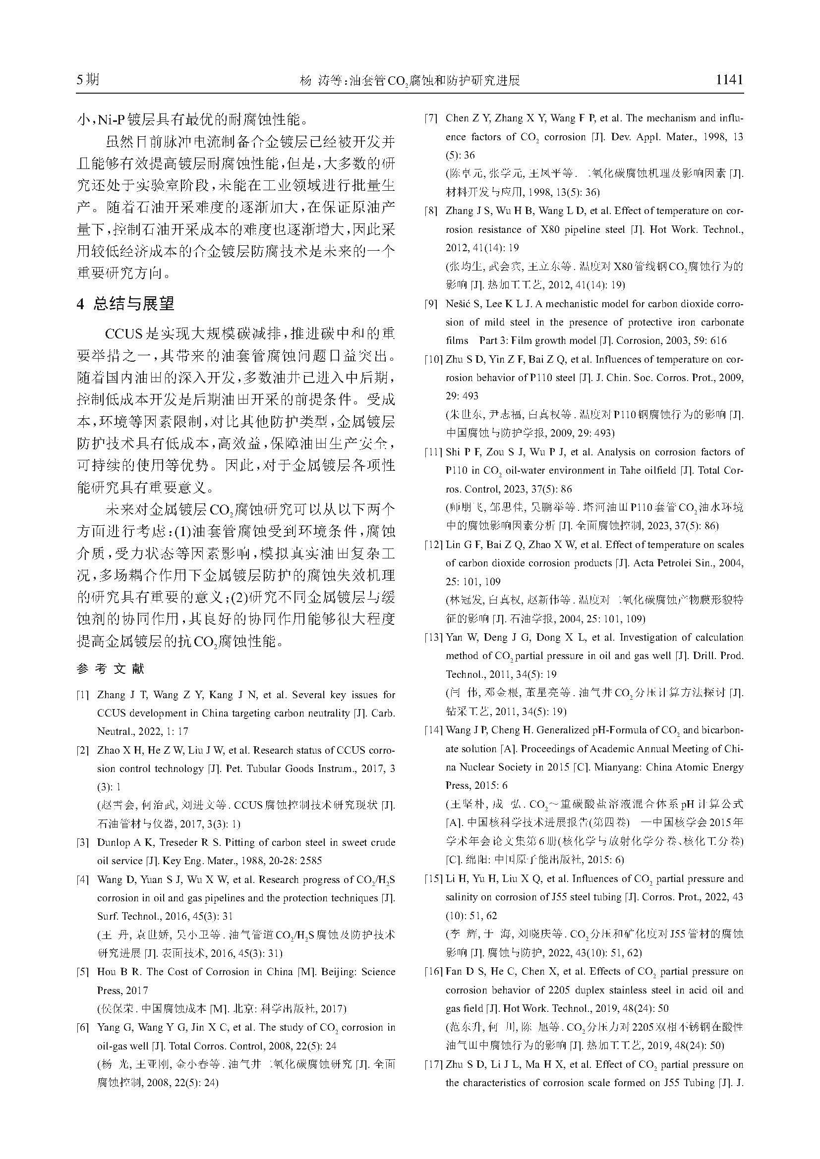 油套管CO2腐蚀和防护研究进展