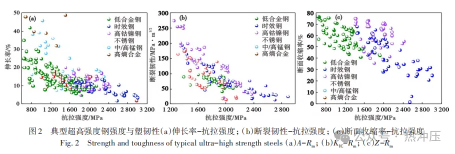 超高强度钢作为战略性结构材料,是航空航天、工程机械、交通运输及能源工业等关键领域的核心材料基础。其在起落架、装甲防护、轻量化结构及深海工程等应用中发挥着不可替代的作用。 面对日益严苛的极端服役环境,传统超高强度钢发展面临重大瓶颈,强度与韧性之间存在固有的倒置关系。这一矛盾源于传统强化机制的本质缺陷——通过引入微观障碍提升强度的同时,抑制了均匀塑性变形能力,导致应力集中和脆性断裂风险增加。其根本问题在于强化微观结构增大了裂纹扩展驱动力,却未能同步提升裂纹扩展阻力。 实现更高强度和韧性的协同提升,需要在材料的纯净度、均匀度和组织度三个维度开展系统性工作:纯净度控制要求最大限度减少有害杂质和夹杂物,为性能提升扫清障碍;均匀度控制需实现成分和组织的精确均匀分布,避免性能薄弱环节;组织度控制则需通过精巧设计实现多尺度结构的有序排列与协同作用。 突破现有瓶颈需要超越传统合金化和工艺优化的局限,通过精巧的组织设计实现界面强化与塑性变形的协同,为能量耗散创造有效微观路径。同时,工业化生产中的性能一致性控制和长期服役的组织稳定性维持等工程化挑战,亦需从系统性视角重新构建材料设计理念,为新一代超高强度钢的发展奠定理论与技术基础。