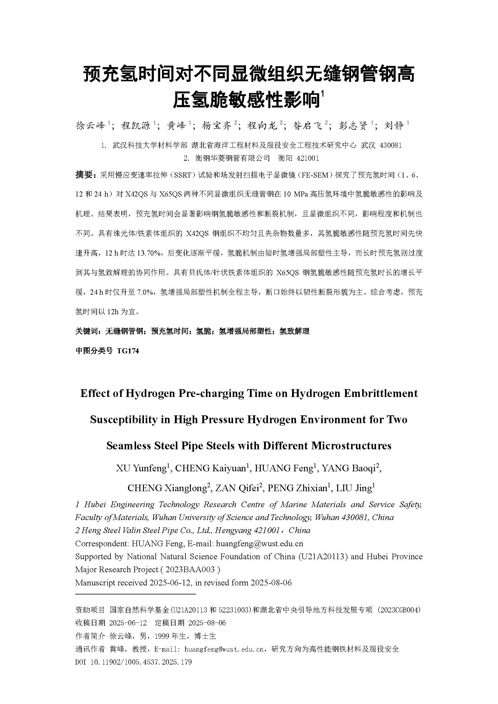 预充氢时间对不同显微组织无缝钢管钢高压氢脆敏感性影响
