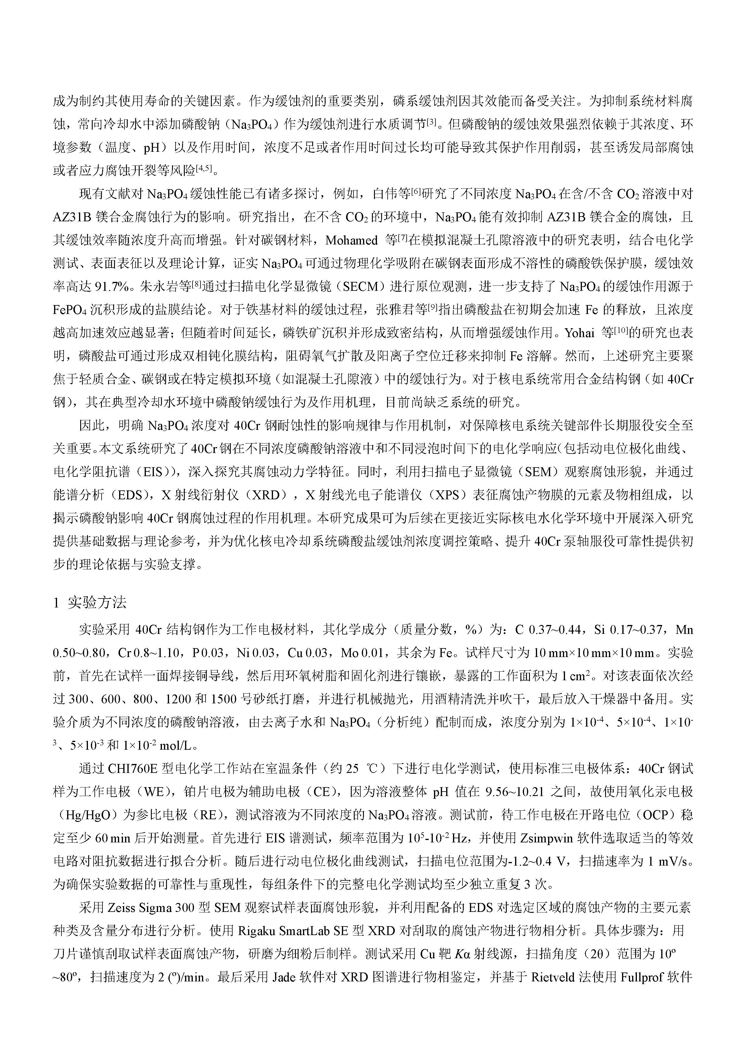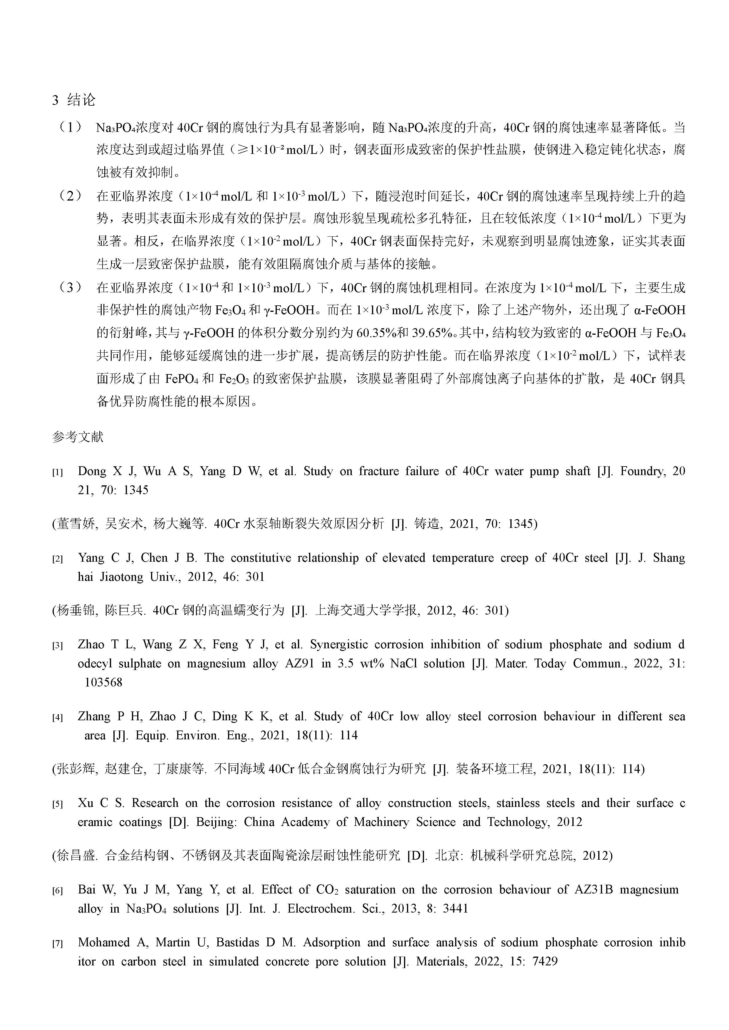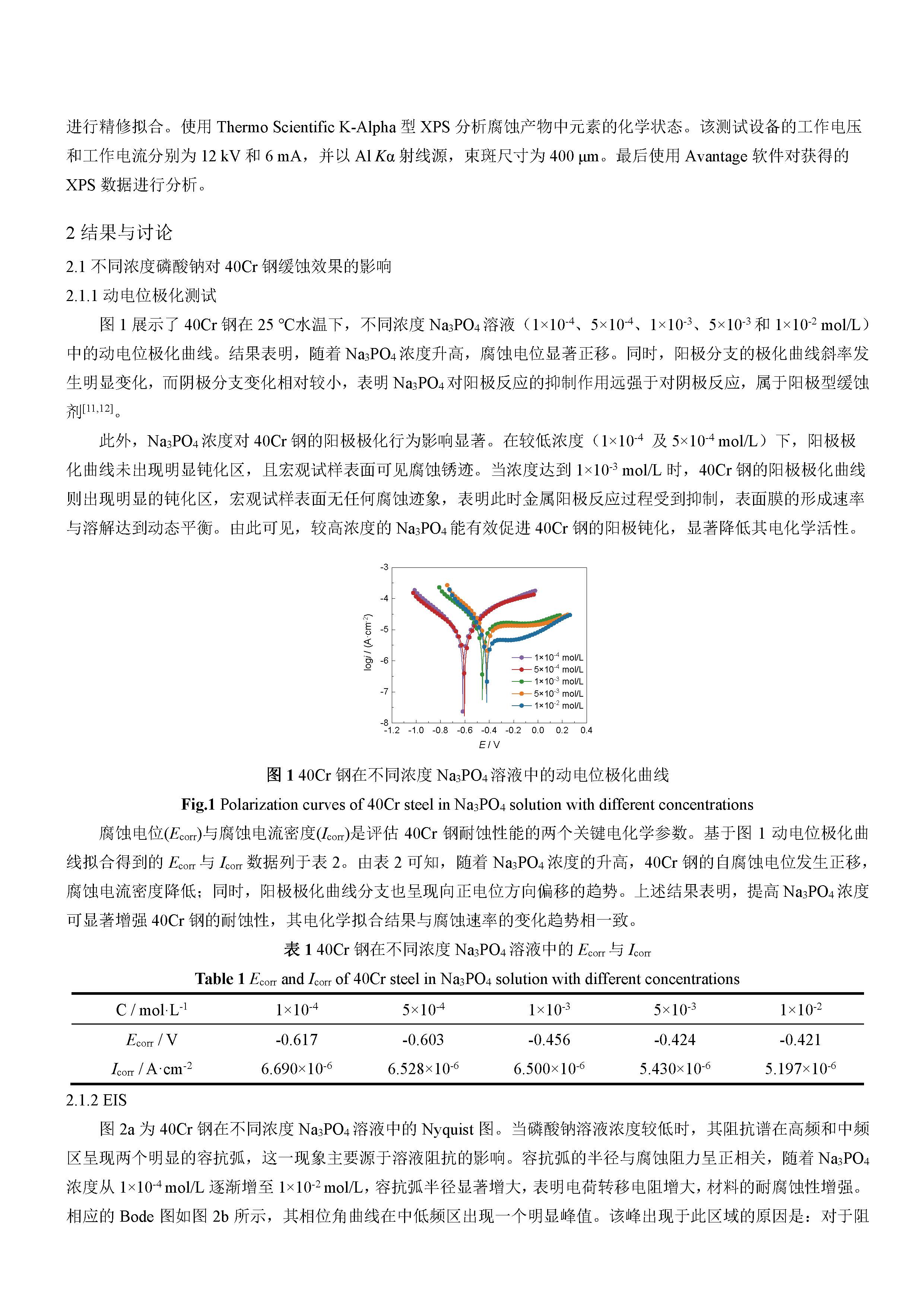 磷酸钠浓度对40Cr钢耐蚀性能的影响