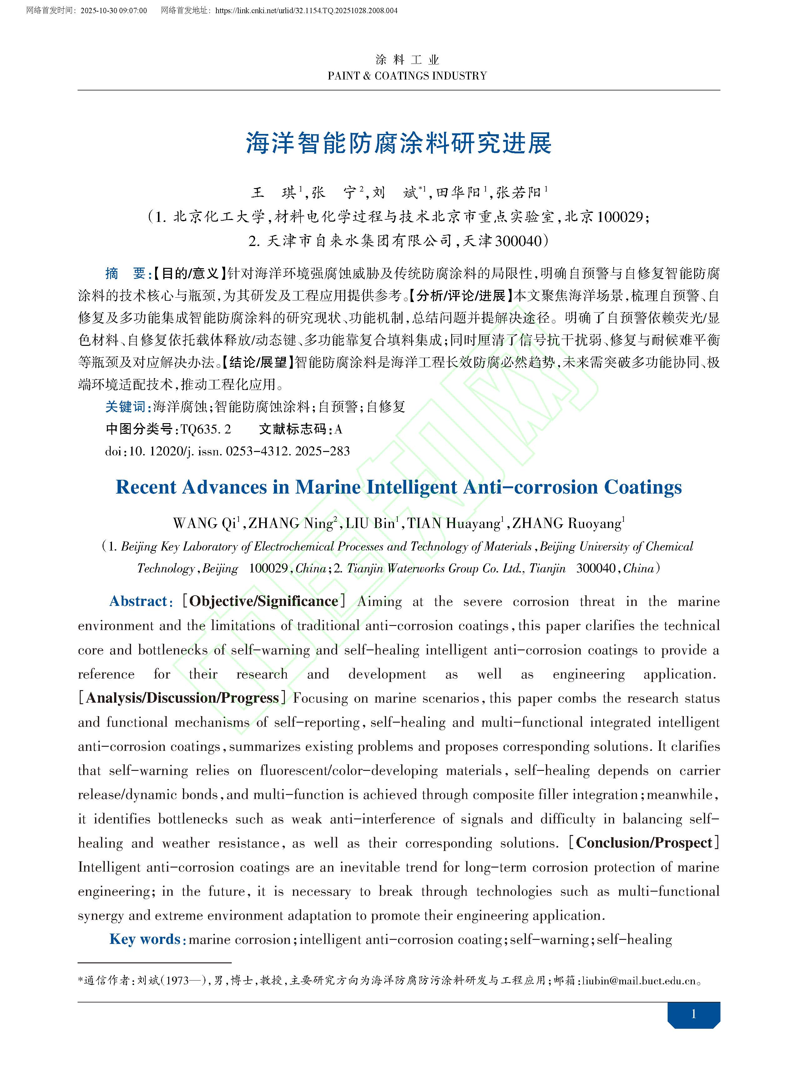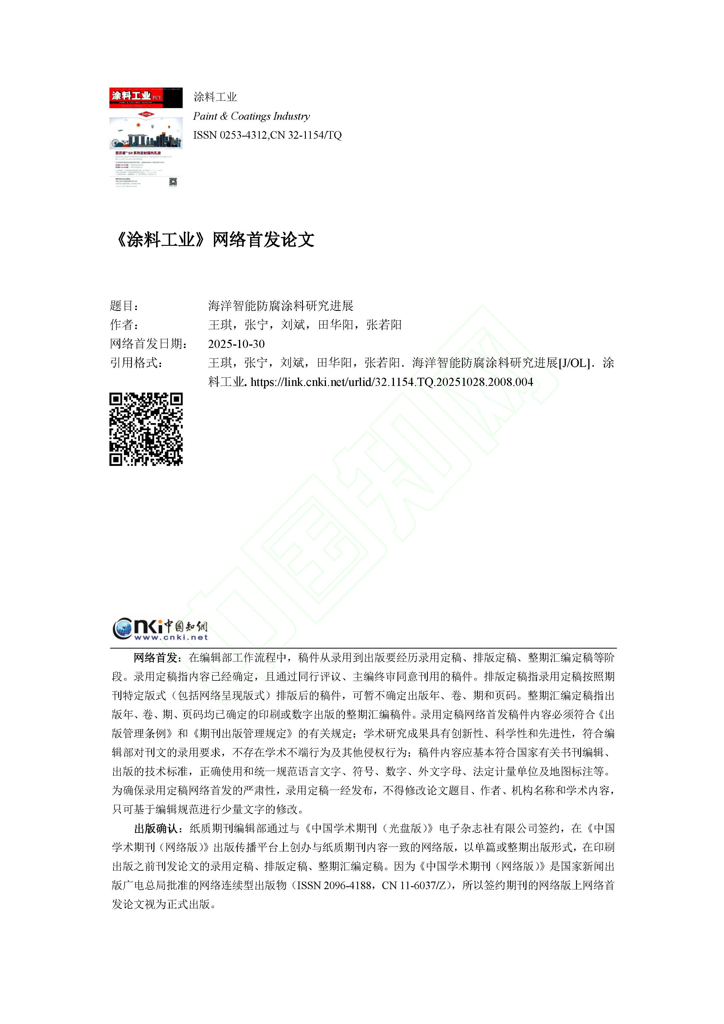 海洋智能防腐涂料研究进展