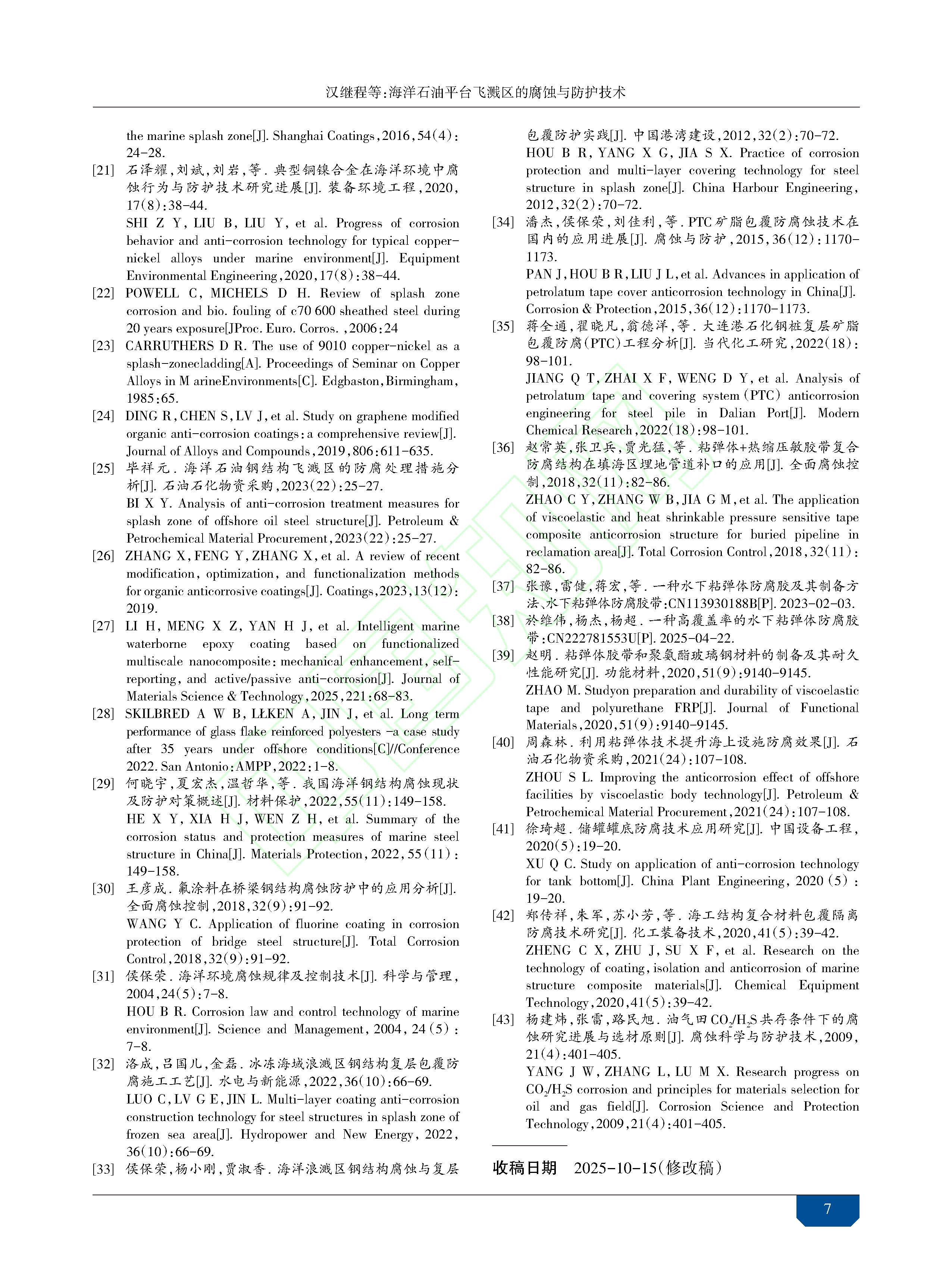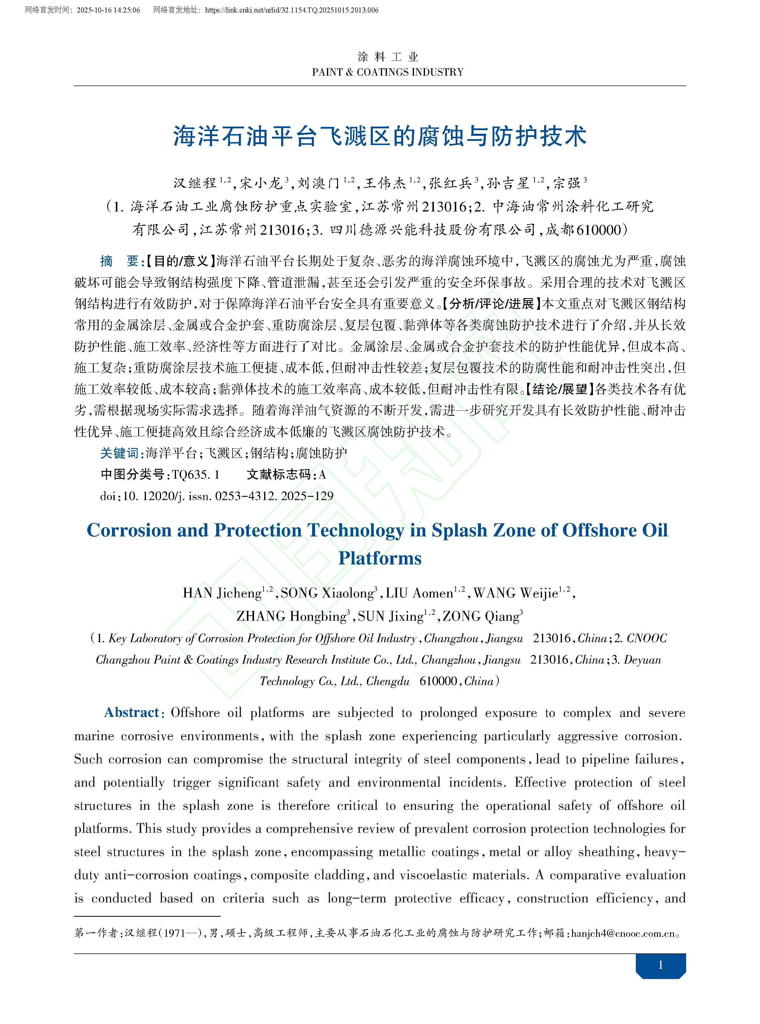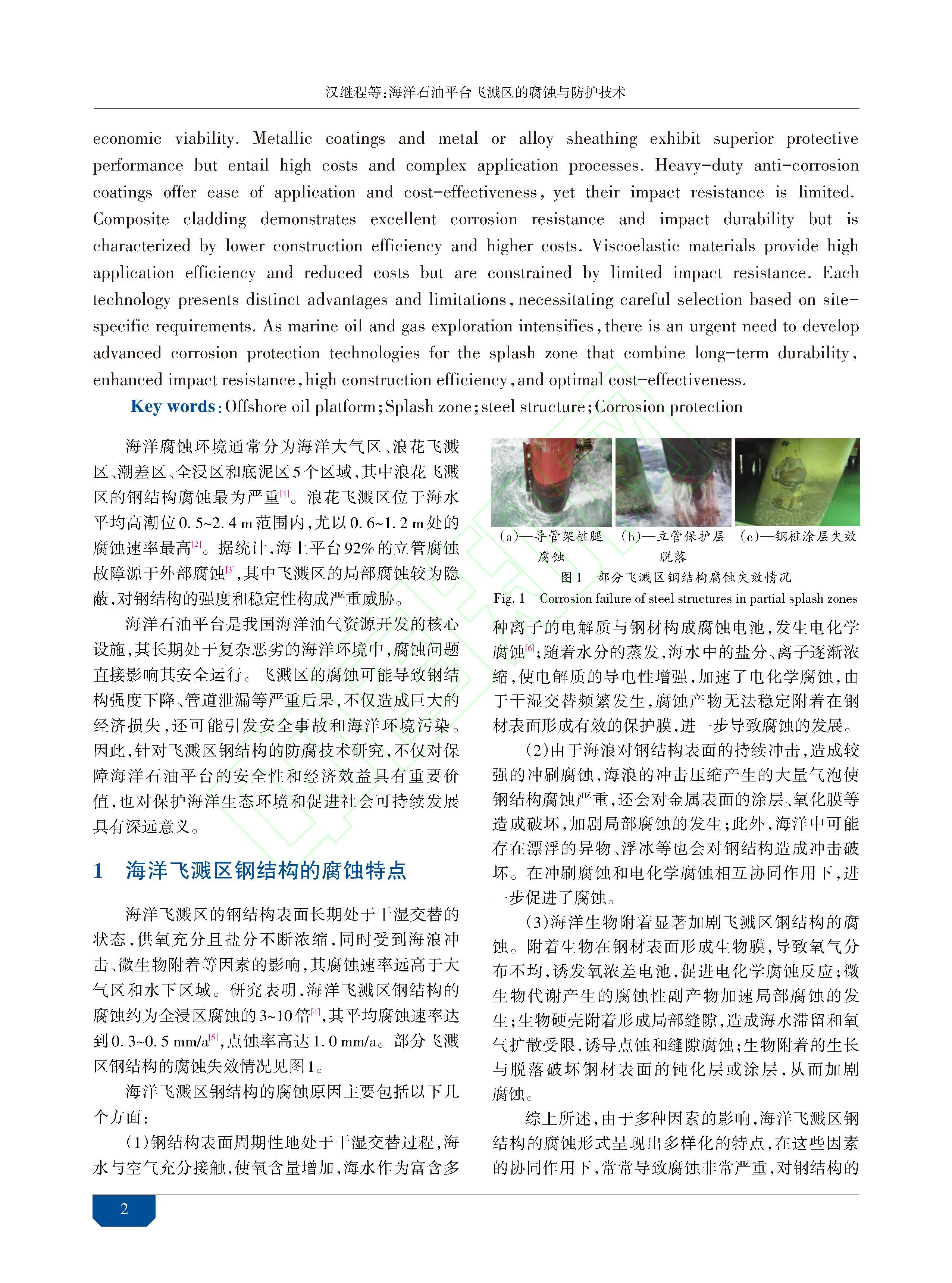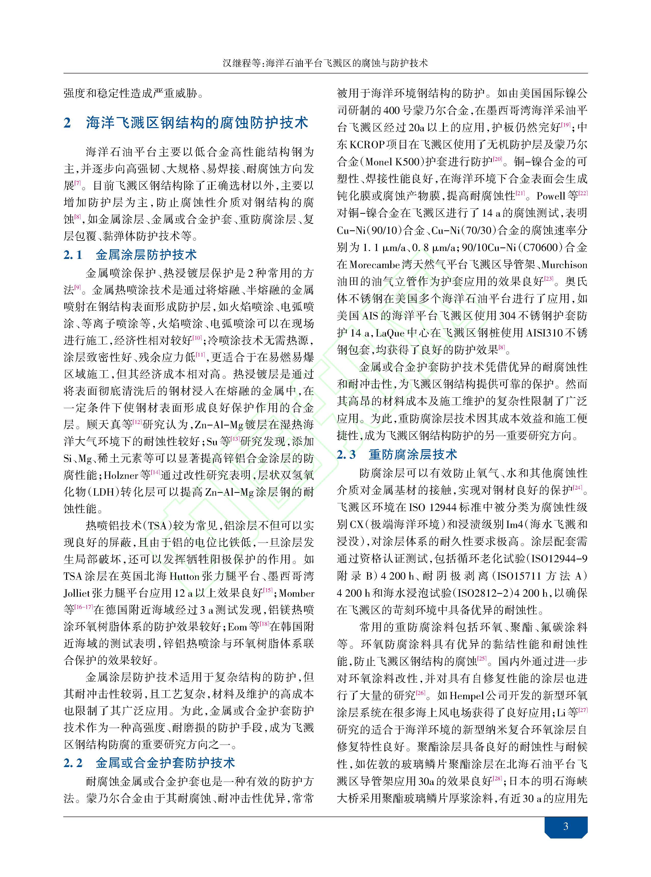 海洋石油平台飞溅区的腐蚀与防护技术