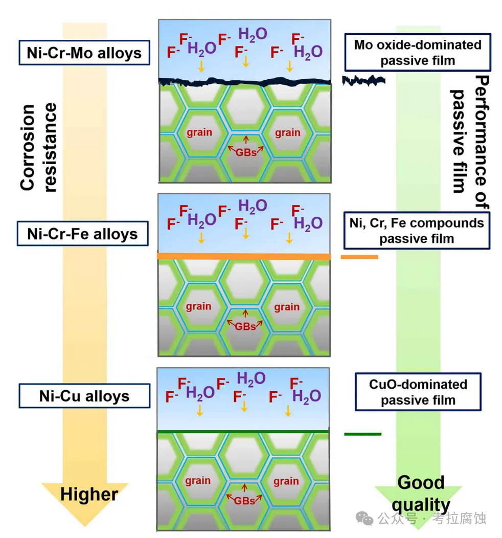 图 镍铬钼合金、镍铬铁合金及镍铜合金在HF溶液中的腐蚀机理
