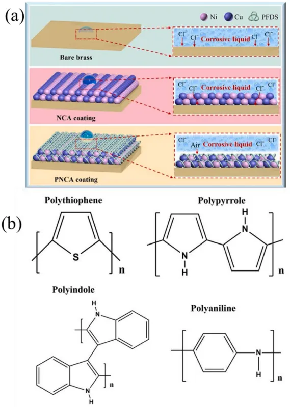第一种是智能/多功能涂层,如结合缓蚀剂(BTA)的石墨烯氧化物涂层(1M NaCl中效率99.97%)、氟化石墨烯涂层(3.5% NaCl中效率97%)、氟碳聚合物/单层石墨烯(效率99.98%)、聚多巴胺/石墨烯(效率99.8%)。这些涂层提供优异的物理屏障和化学防护。
