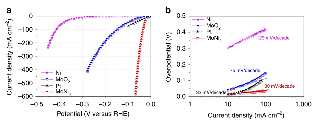 其中,a和b为常数,b即为塔菲尔斜率,通常以mV/dec为单位。塔菲尔斜率的值反映了反应的电化学动力学特性,不同的反应机理对应不同的塔菲尔斜率。通过塔菲尔斜率分析,研究人员可以推测反应的速率决定步骤,并进一步优化催化剂的设计。