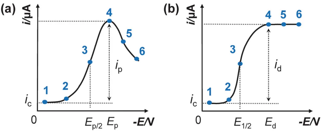 对于可逆、准可逆与不可逆反应体系,CV 曲线在峰形、峰电位间距及峰电流特征上呈现系统性差异,可用于判定电子转移的可逆性、反应机理及传质控制模式。