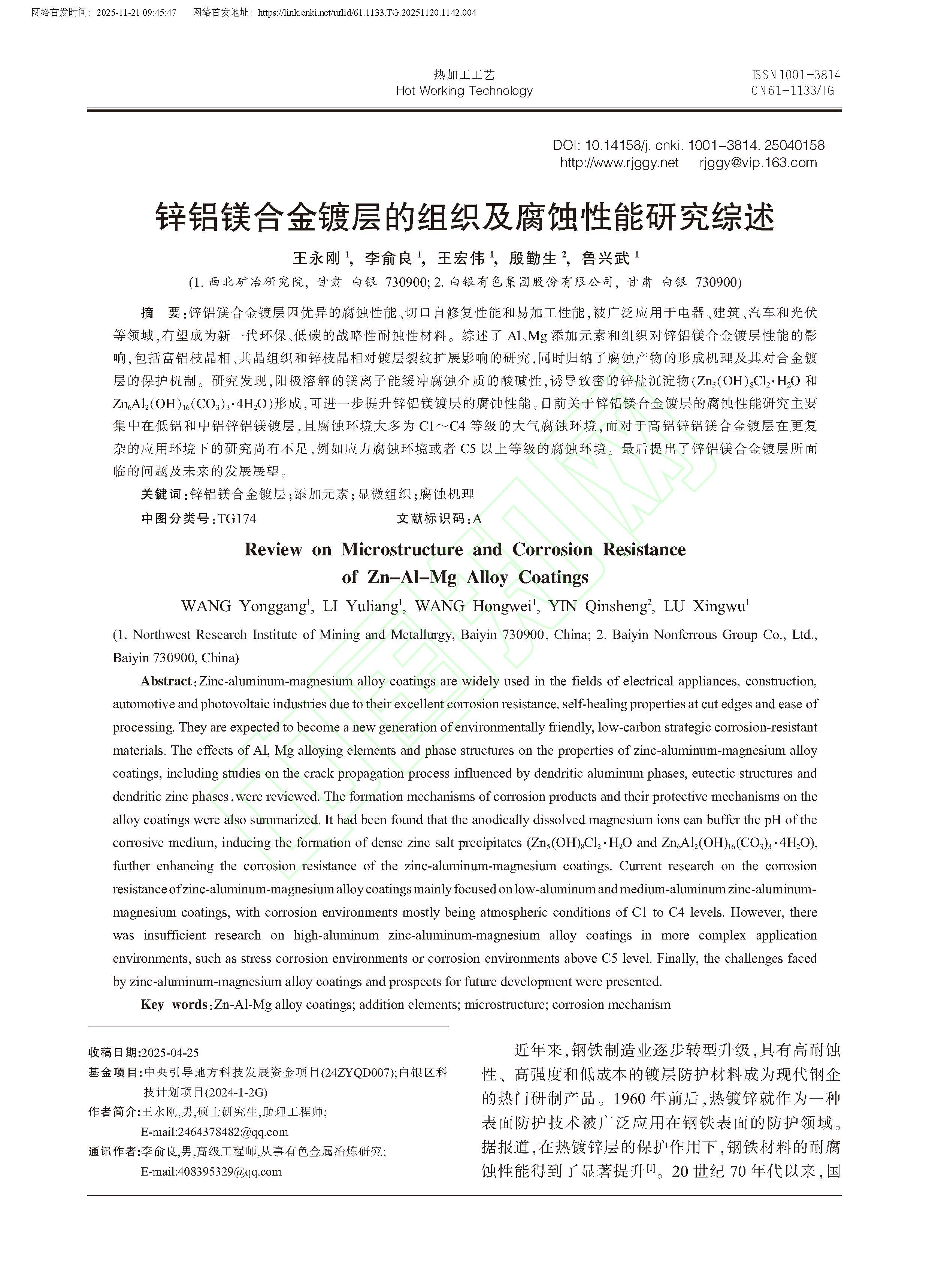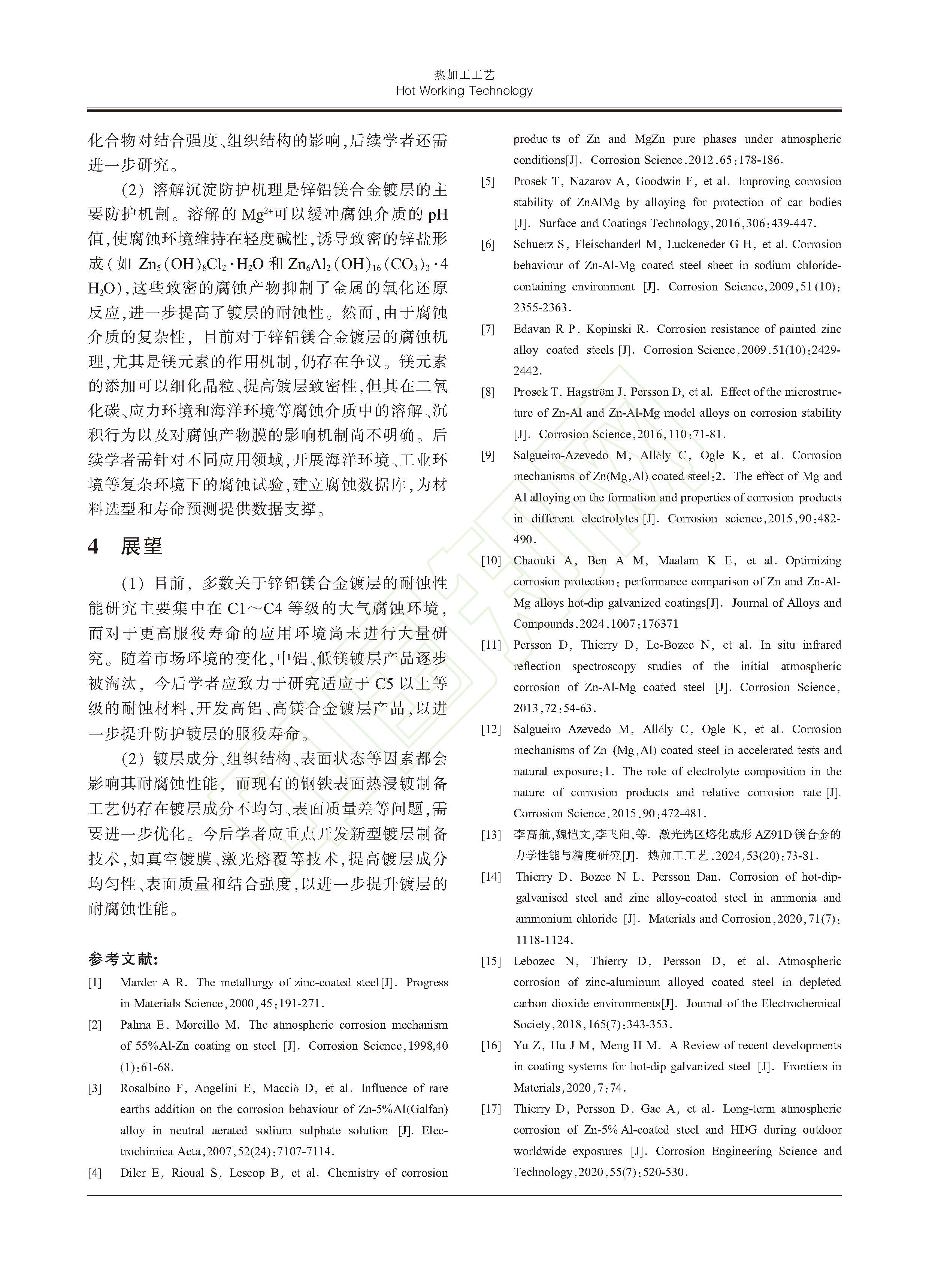 锌铝镁合金镀层的组织及腐蚀性能研究综述
