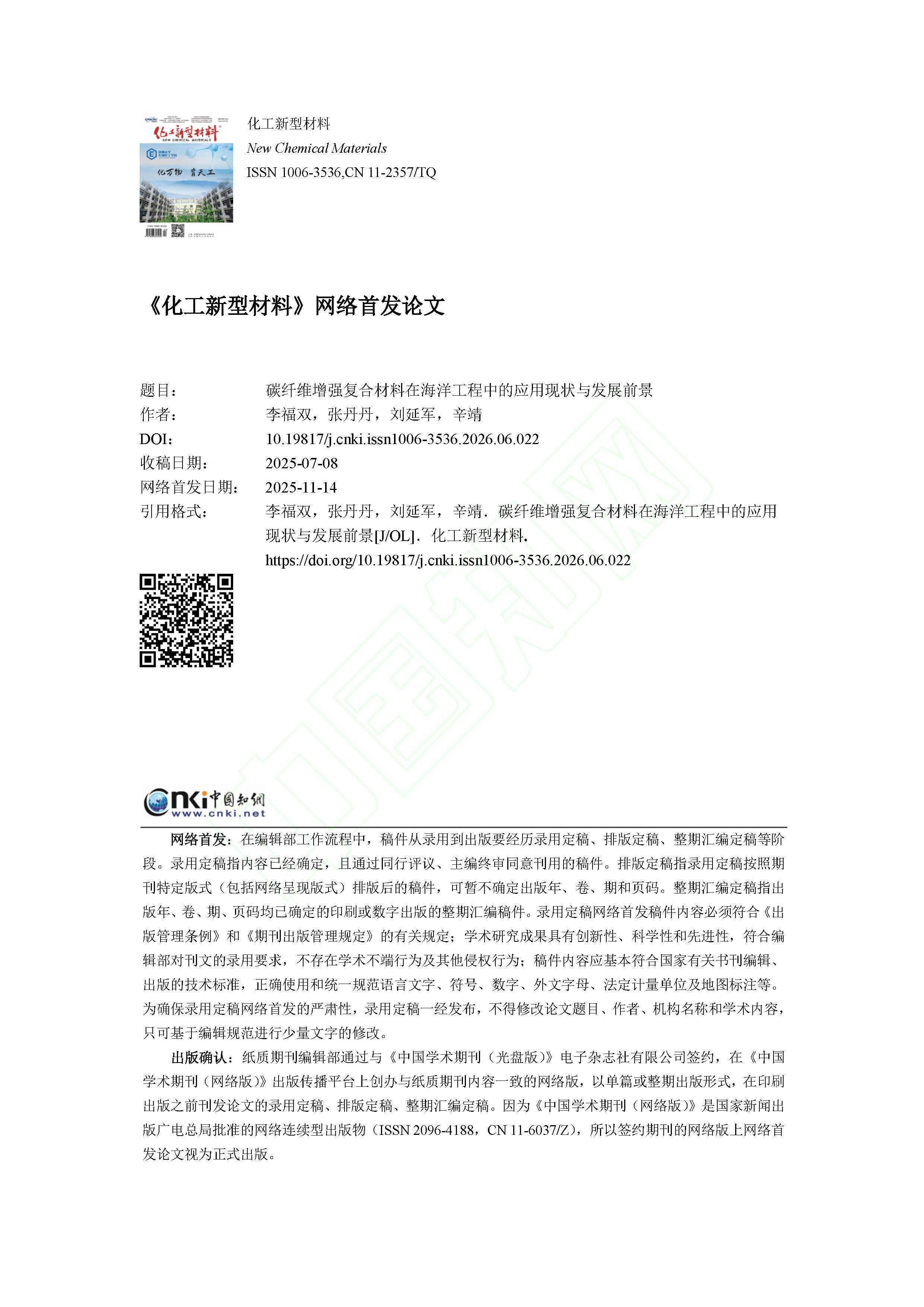 碳纤维增强复合材料在海洋工程中的应用现状与发展前景