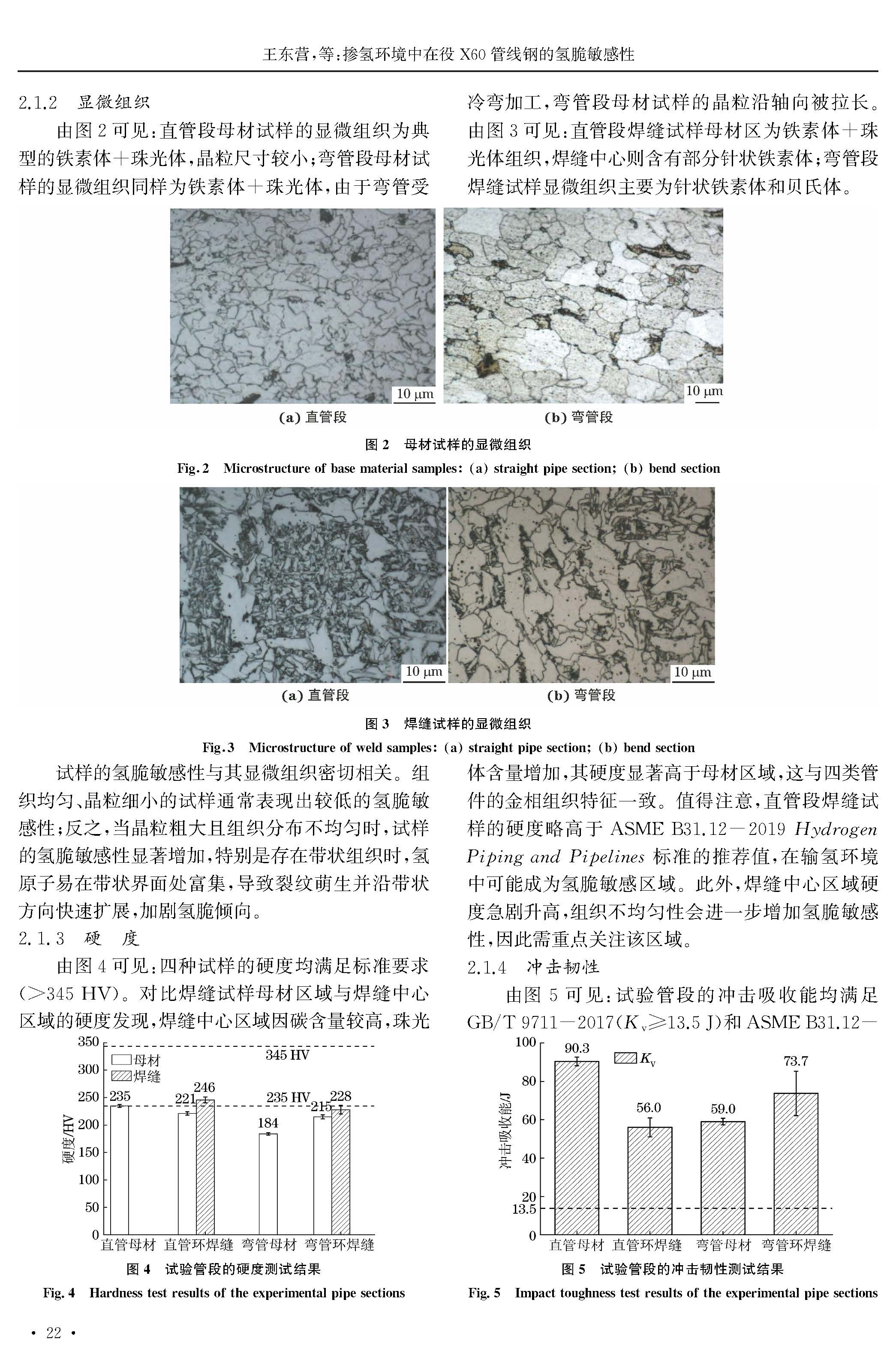 掺氢环境中在役X60管线钢的氢脆敏感性