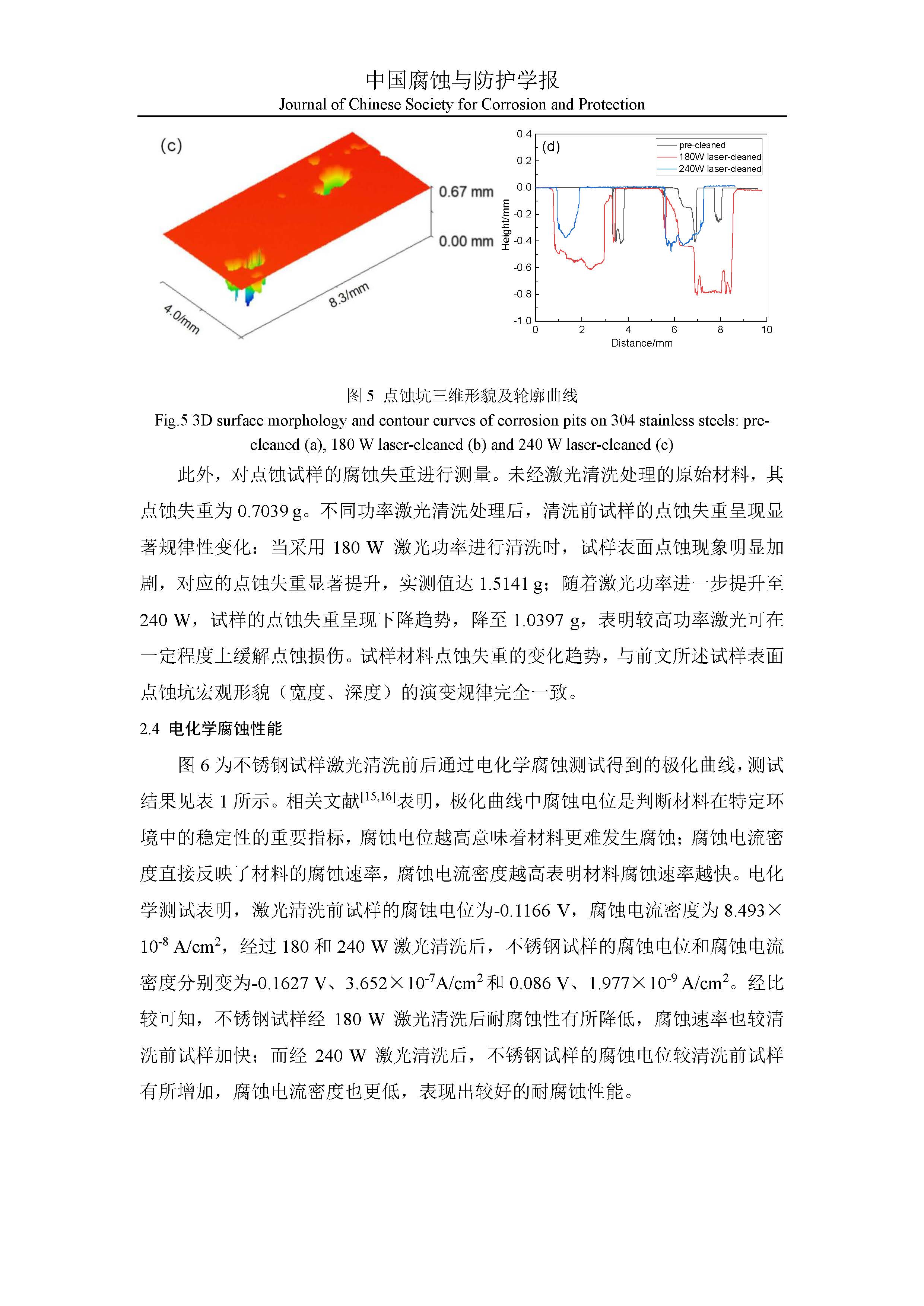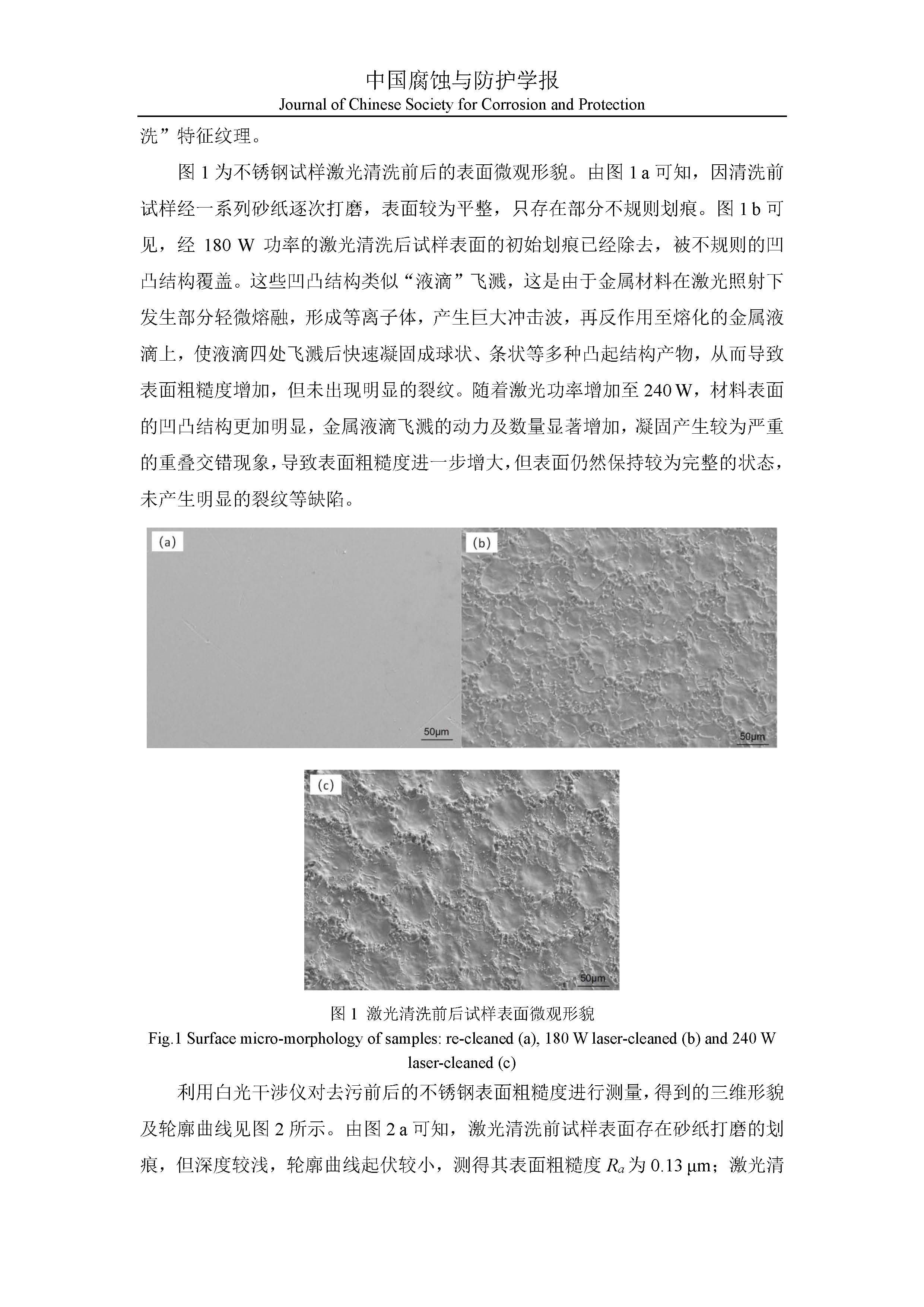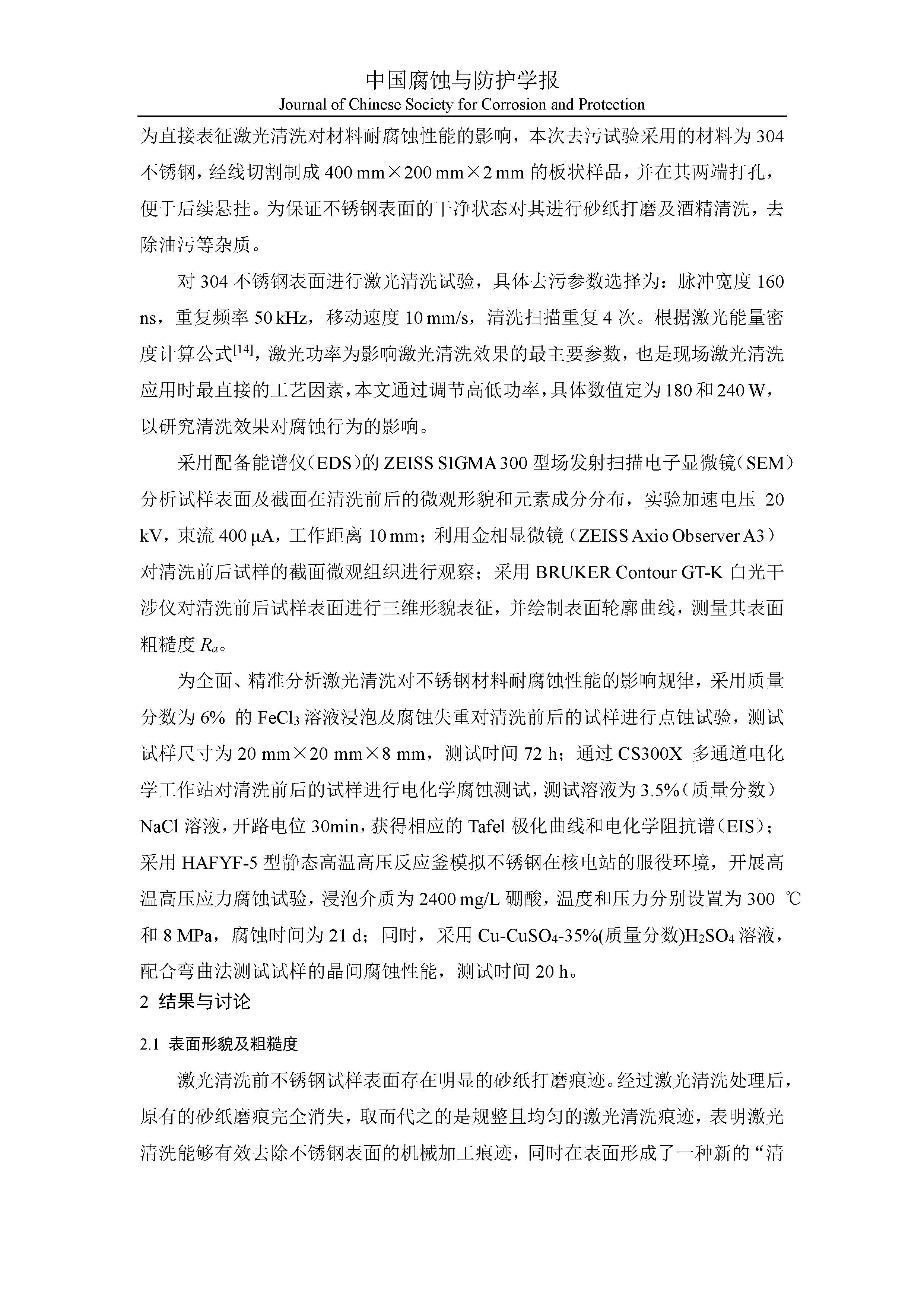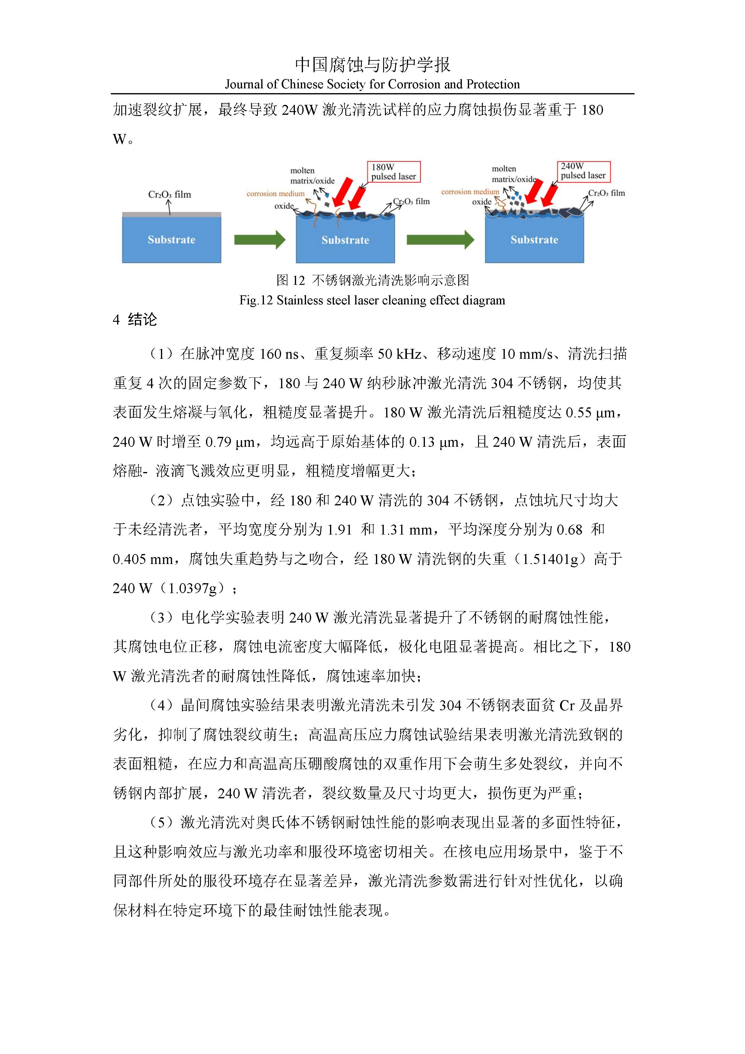 激光清洗对不锈钢表面耐腐蚀性能影响的研究