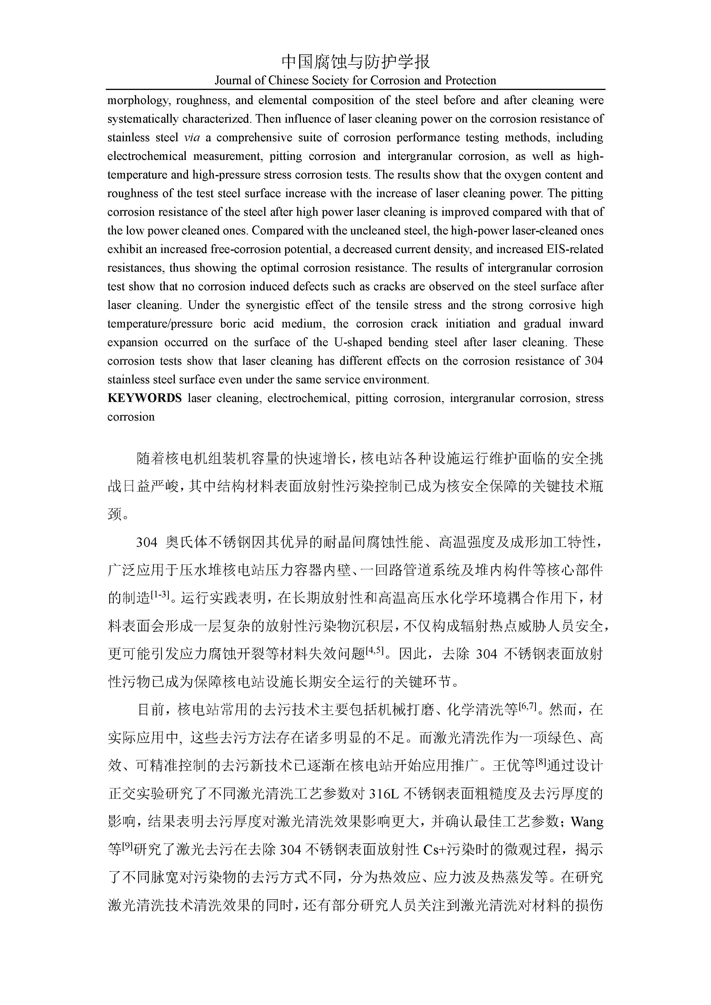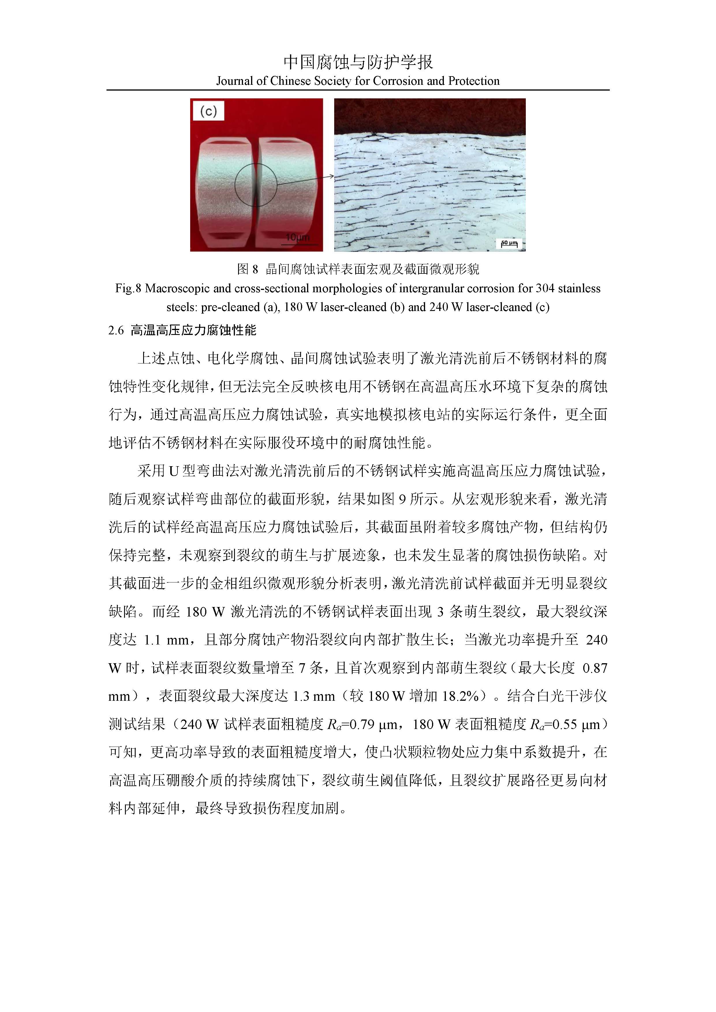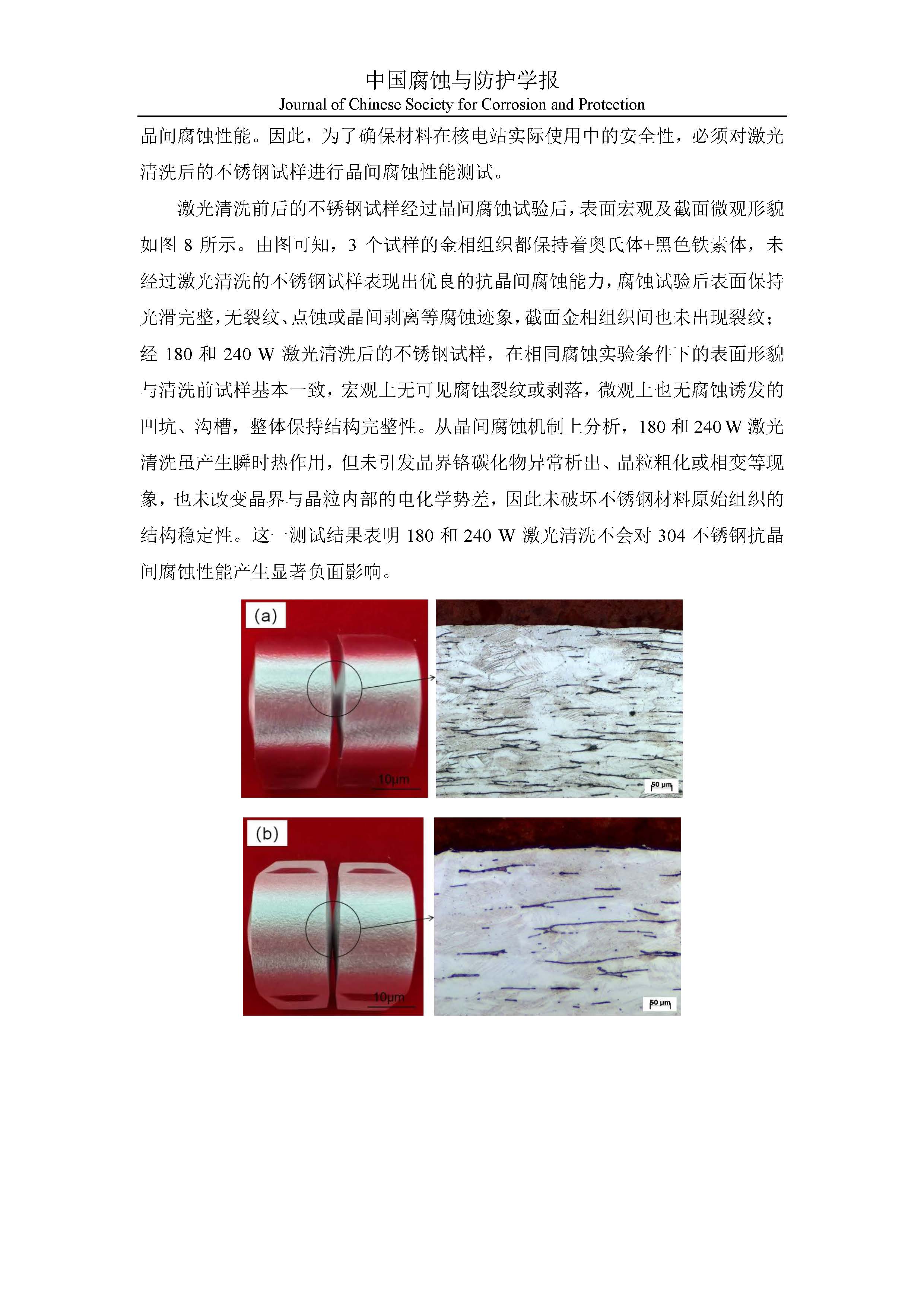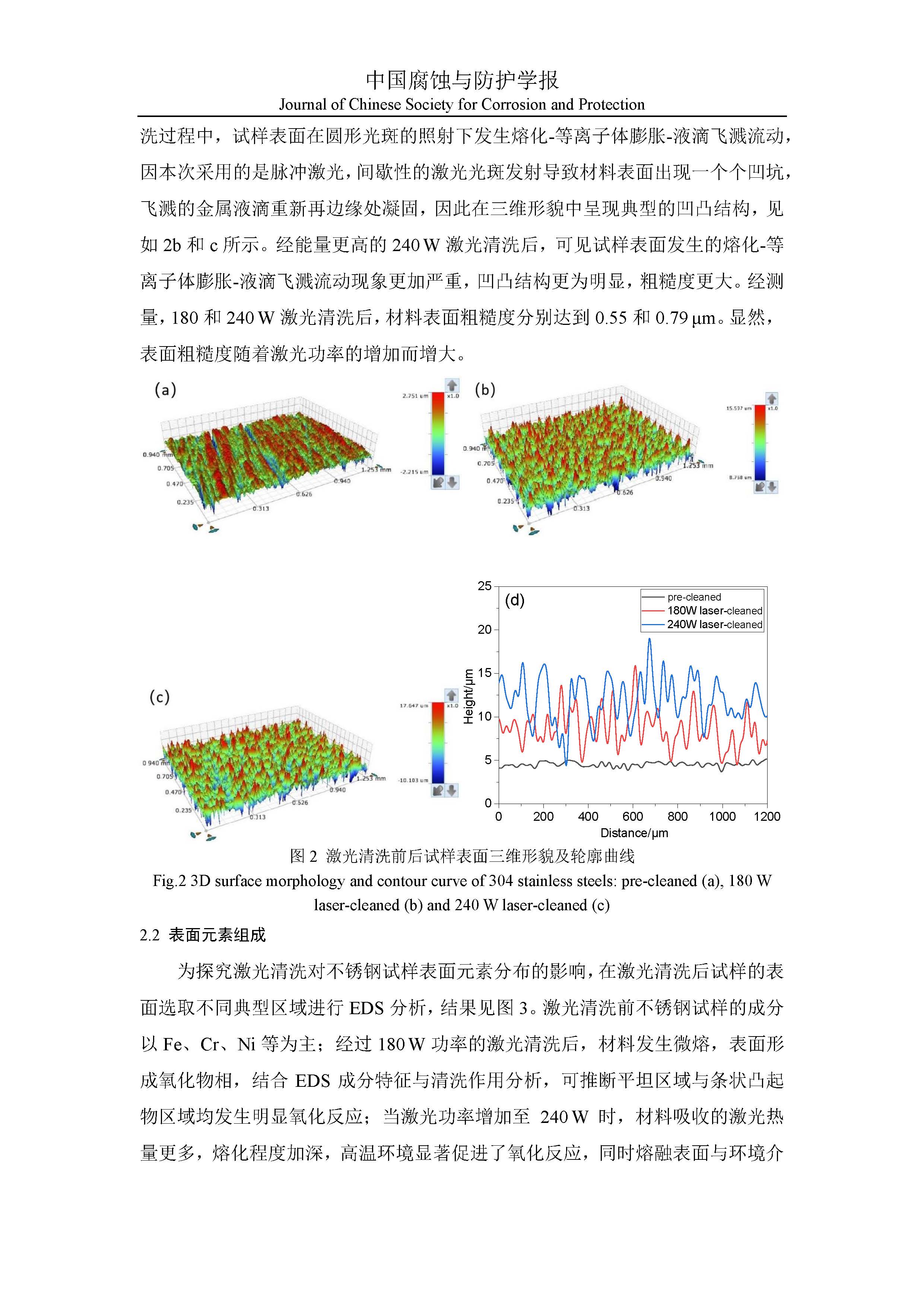 激光清洗对不锈钢表面耐腐蚀性能影响的研究