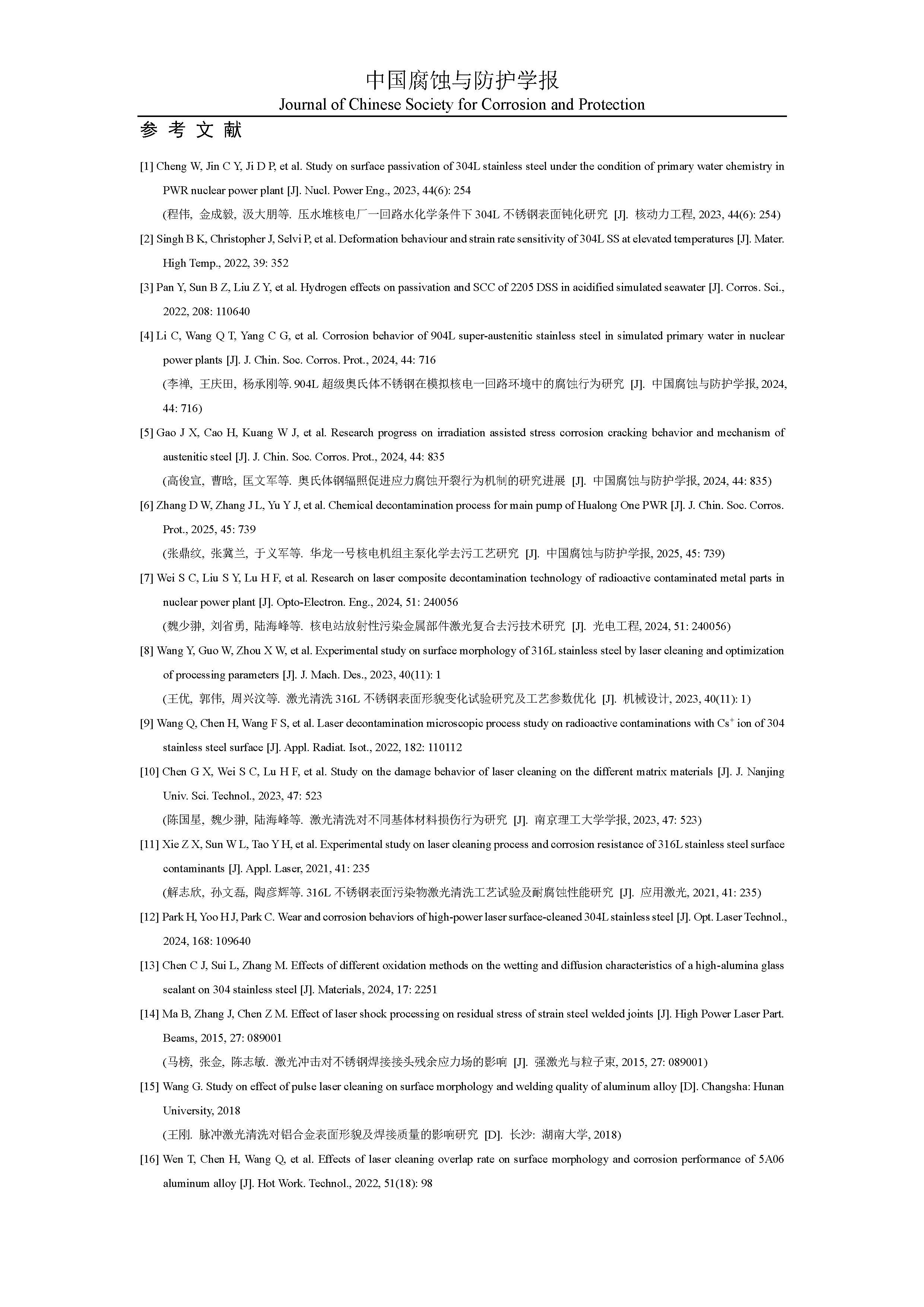 来源:中国腐蚀与防护学报