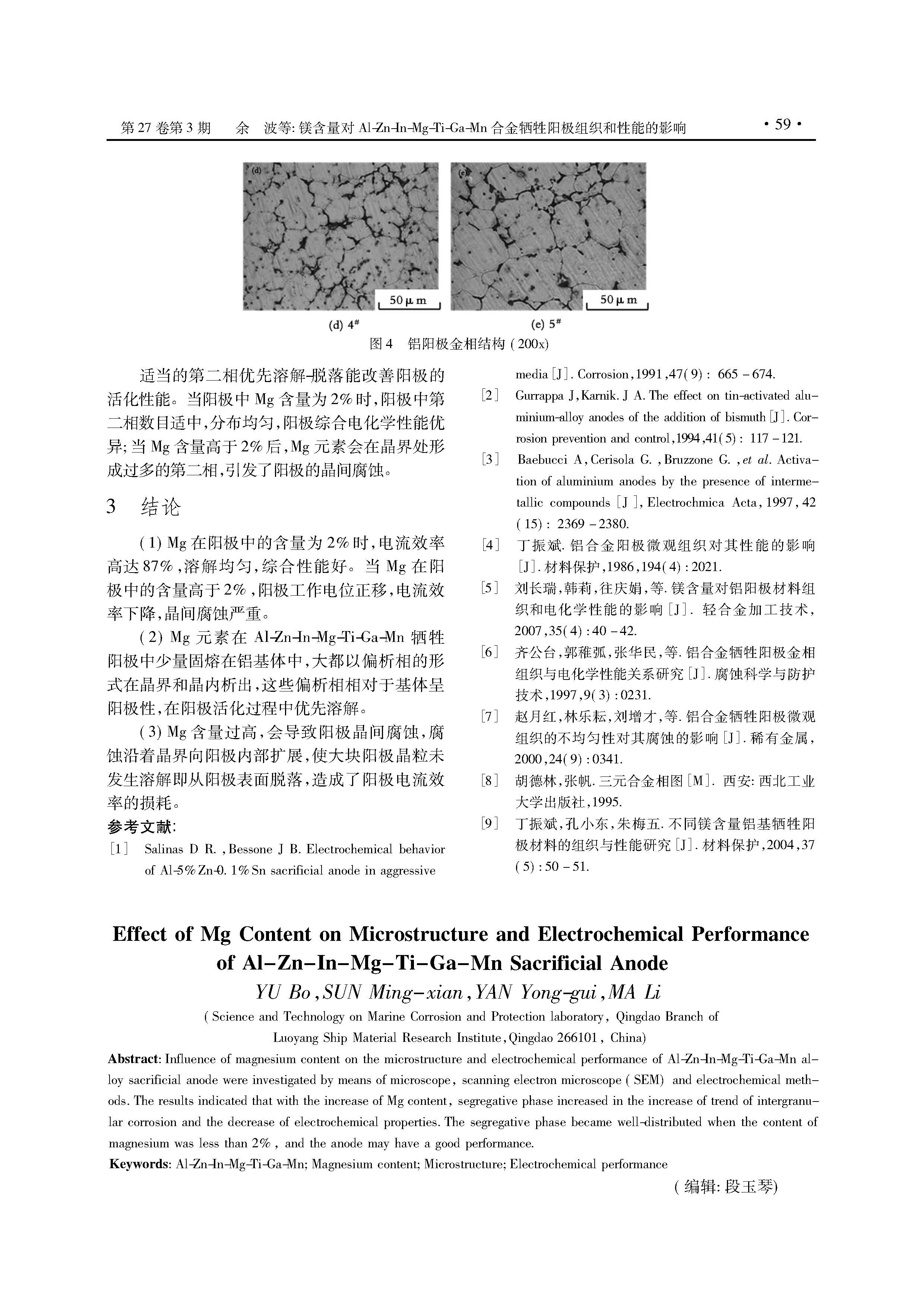 镁含量对 Al-Zn-In-Mg-Ti-Ga-Mn 合金牺牲阳极组织和性能的影响