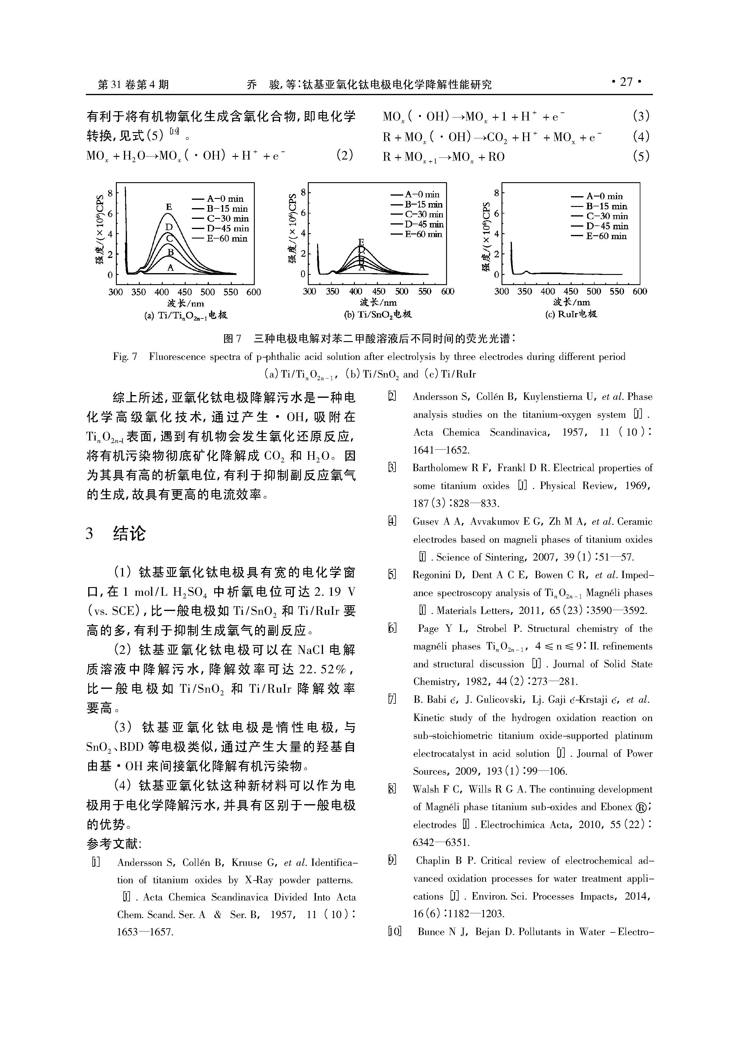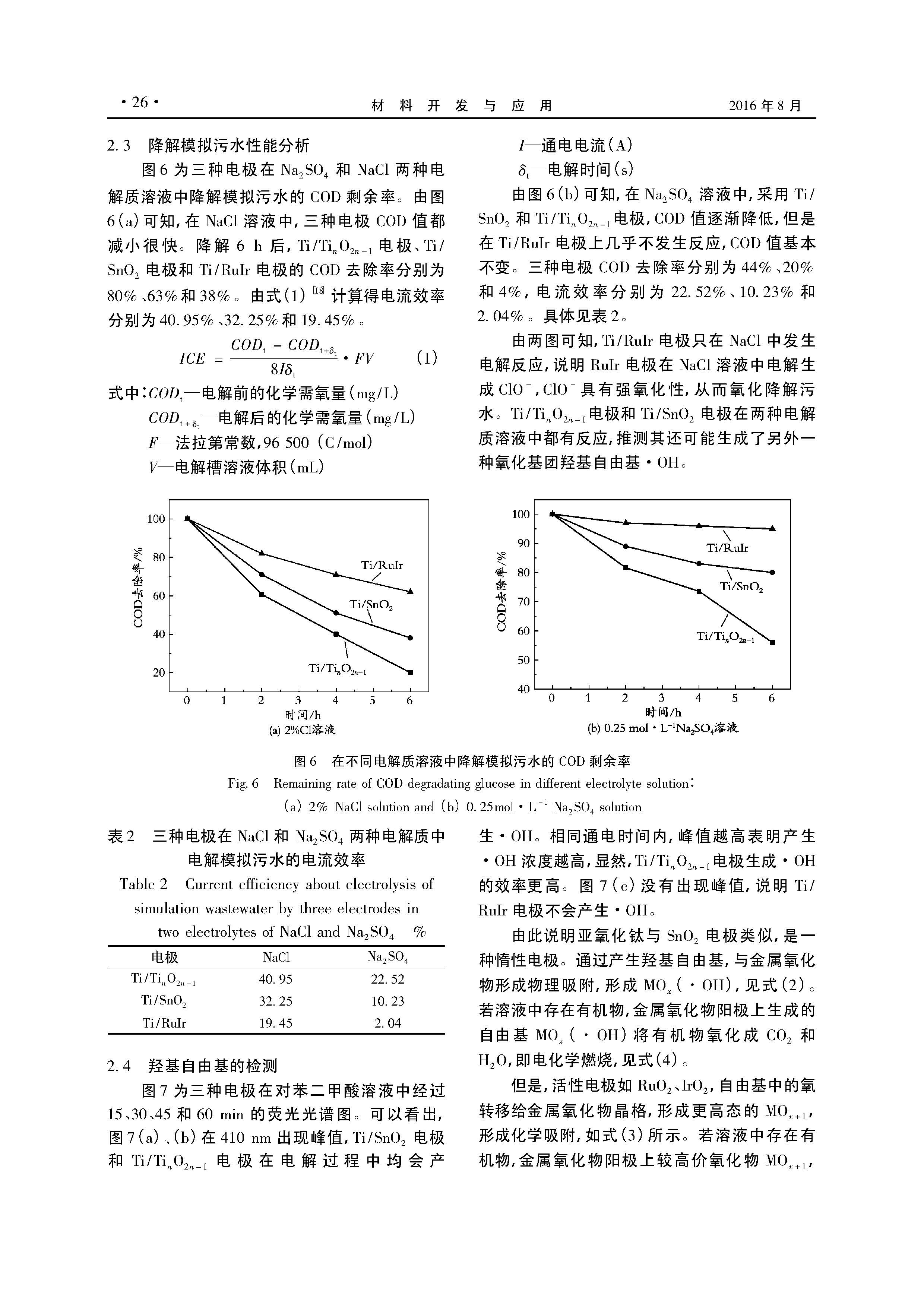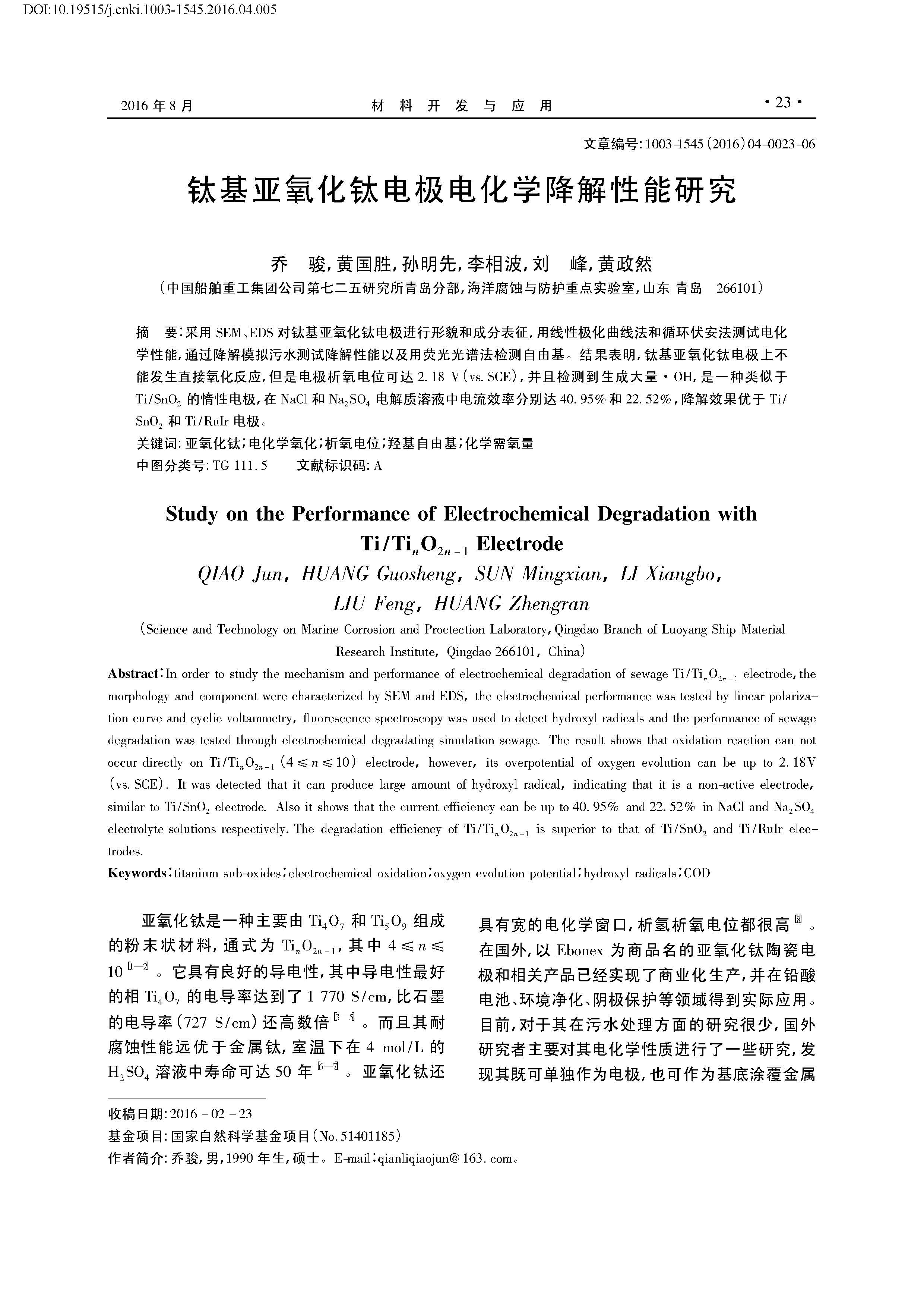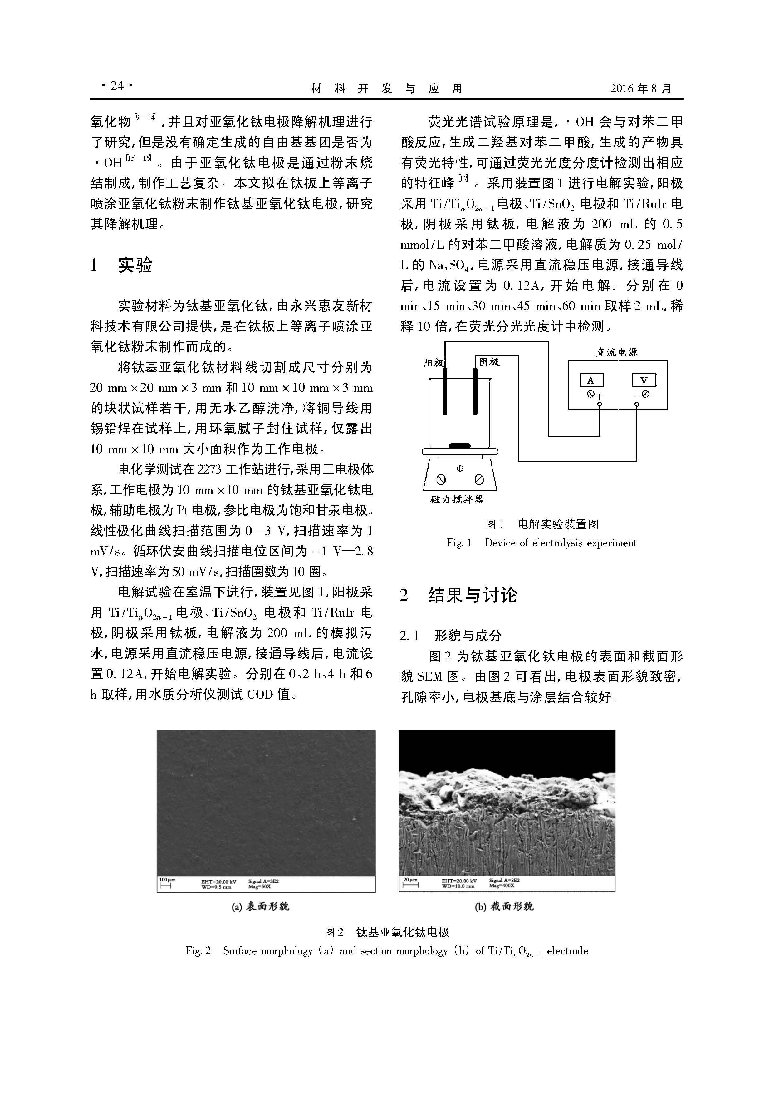 钛基亚氧化钛电极电化学降解性能研究