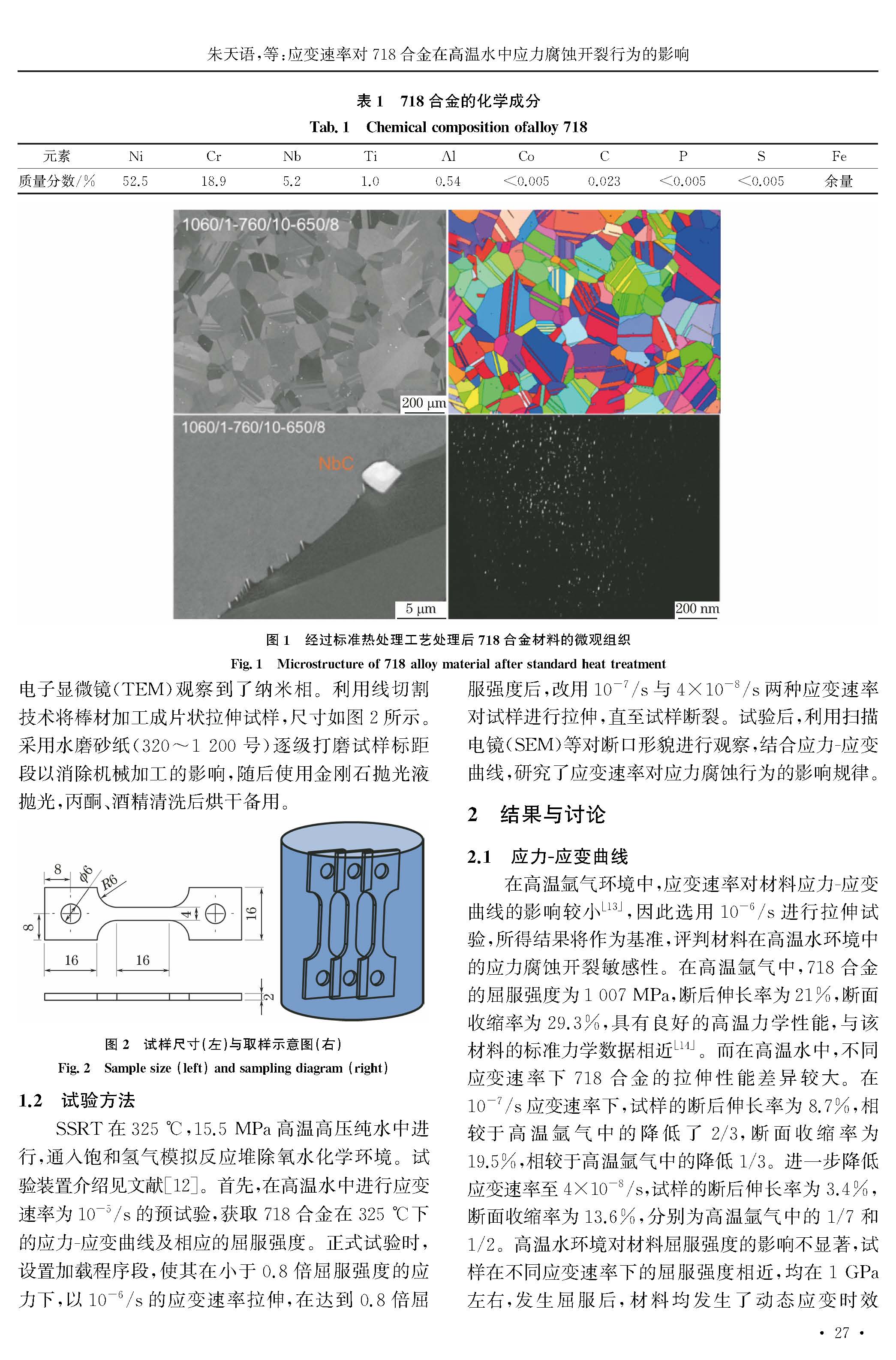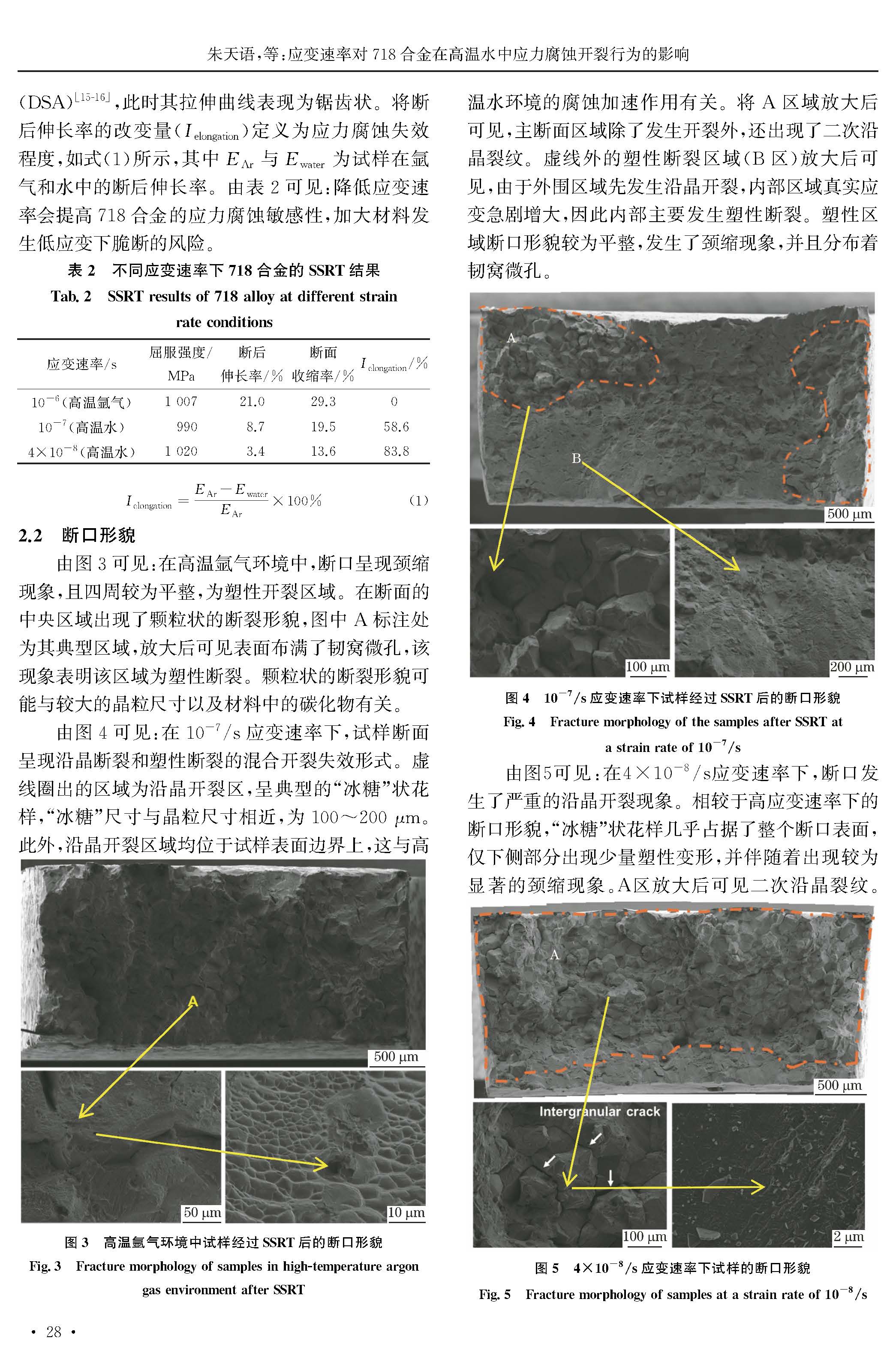 应变速率对718合金在高温水中应力腐蚀开裂行为的影响