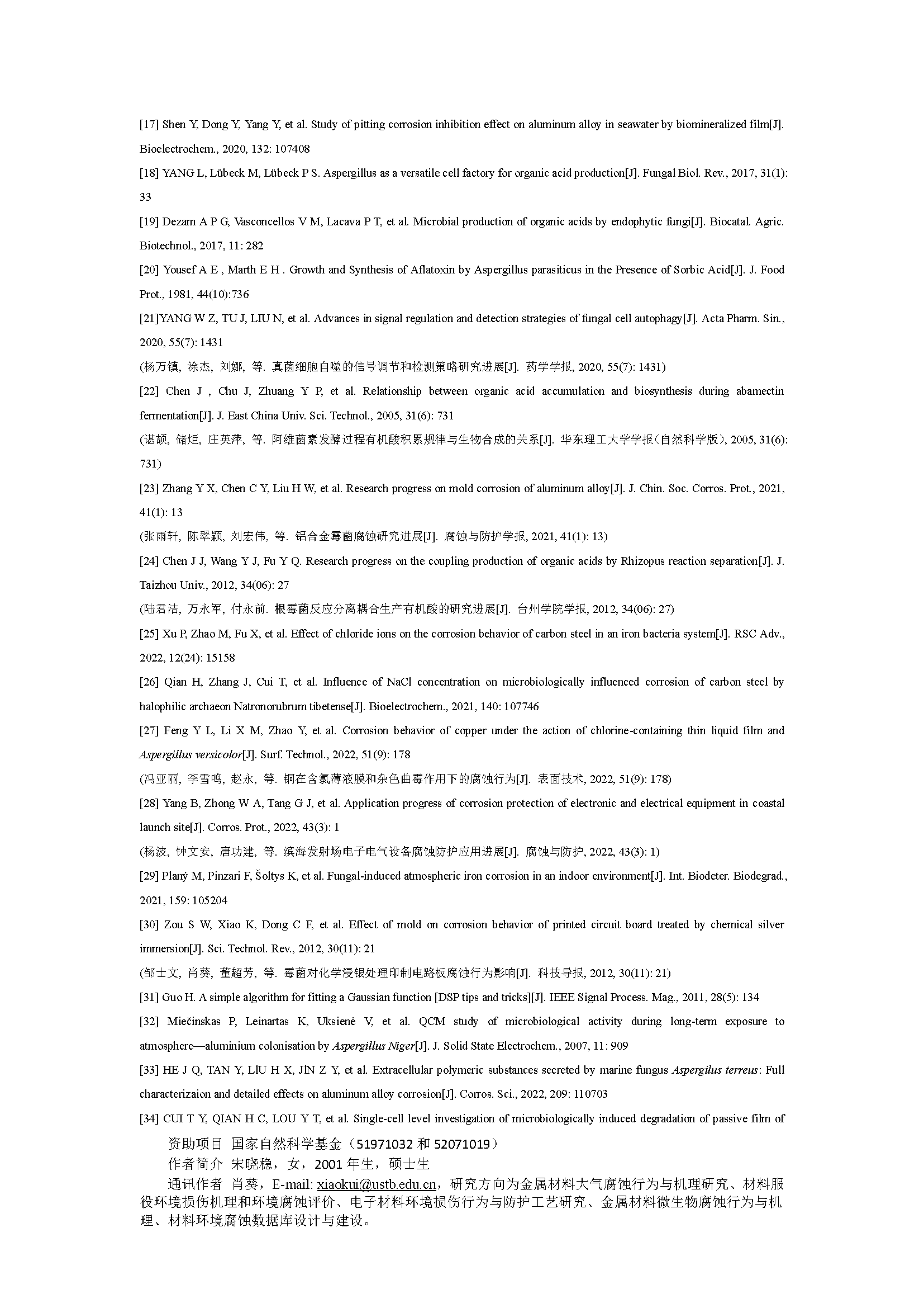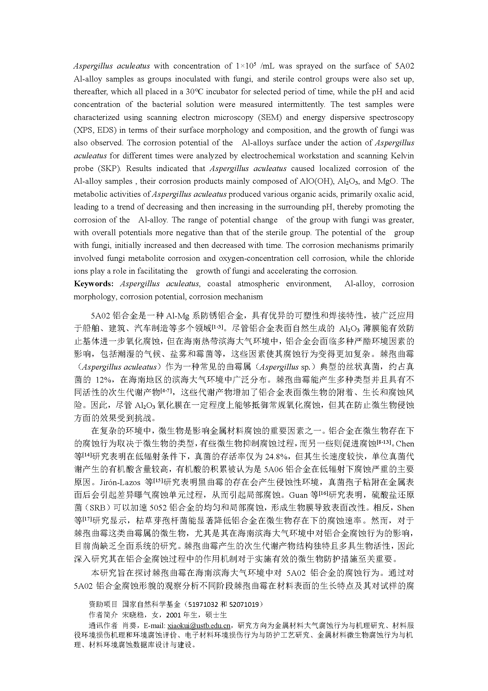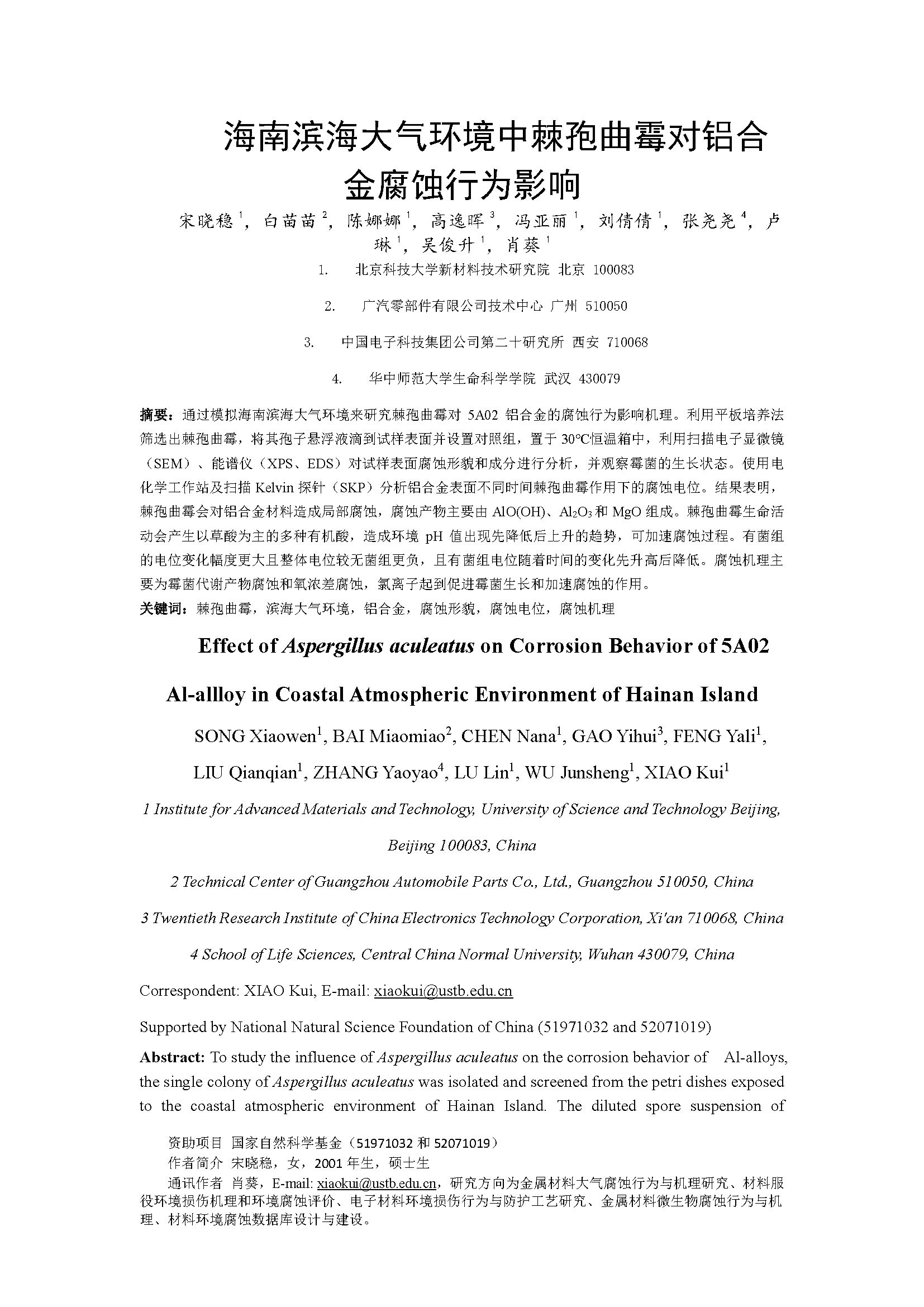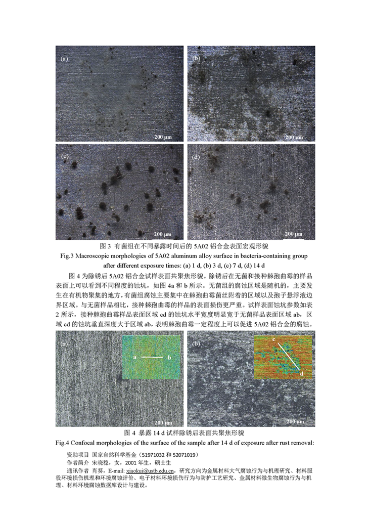 海南滨海大气环境中棘孢曲霉对铝合金腐蚀行为影响