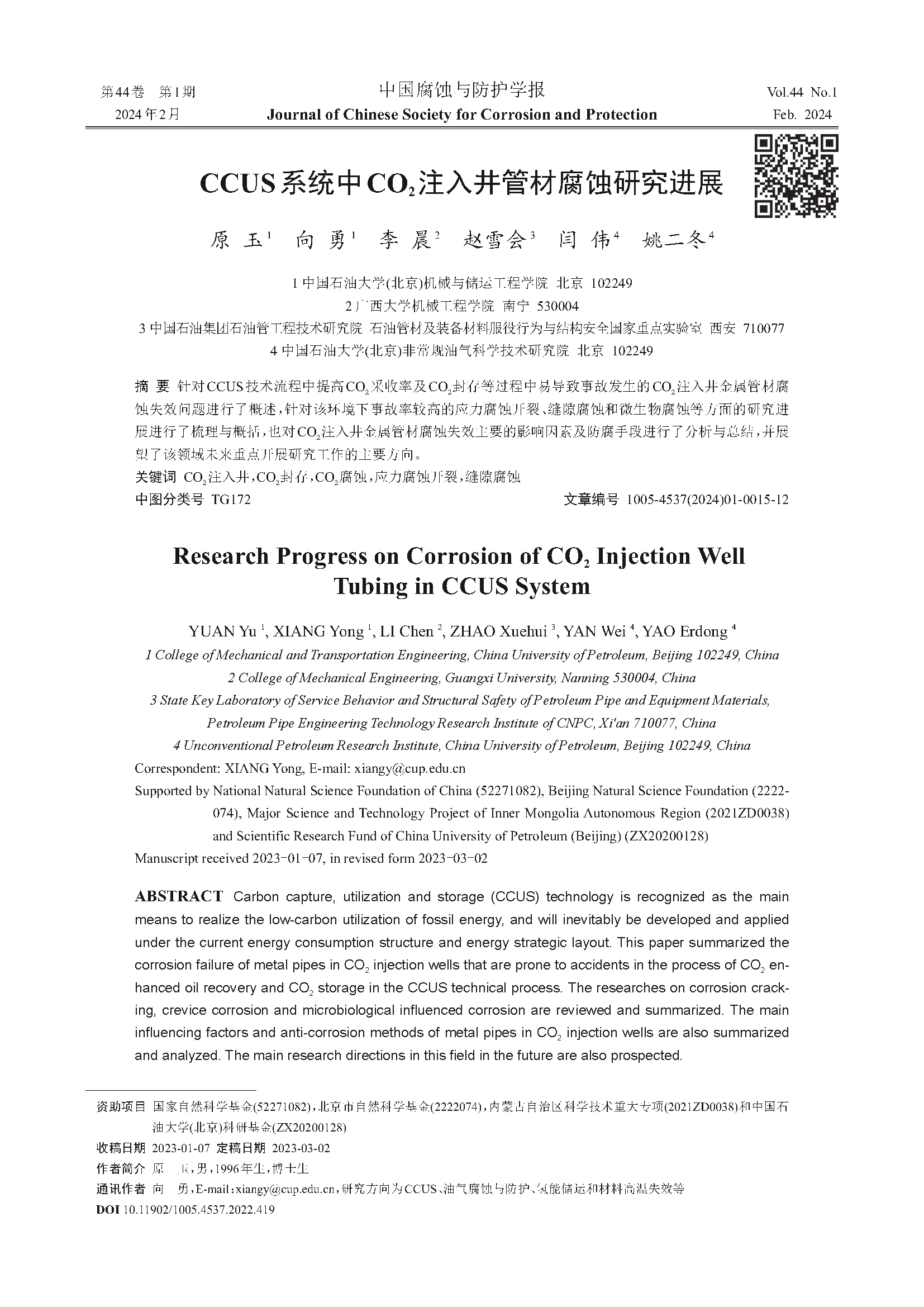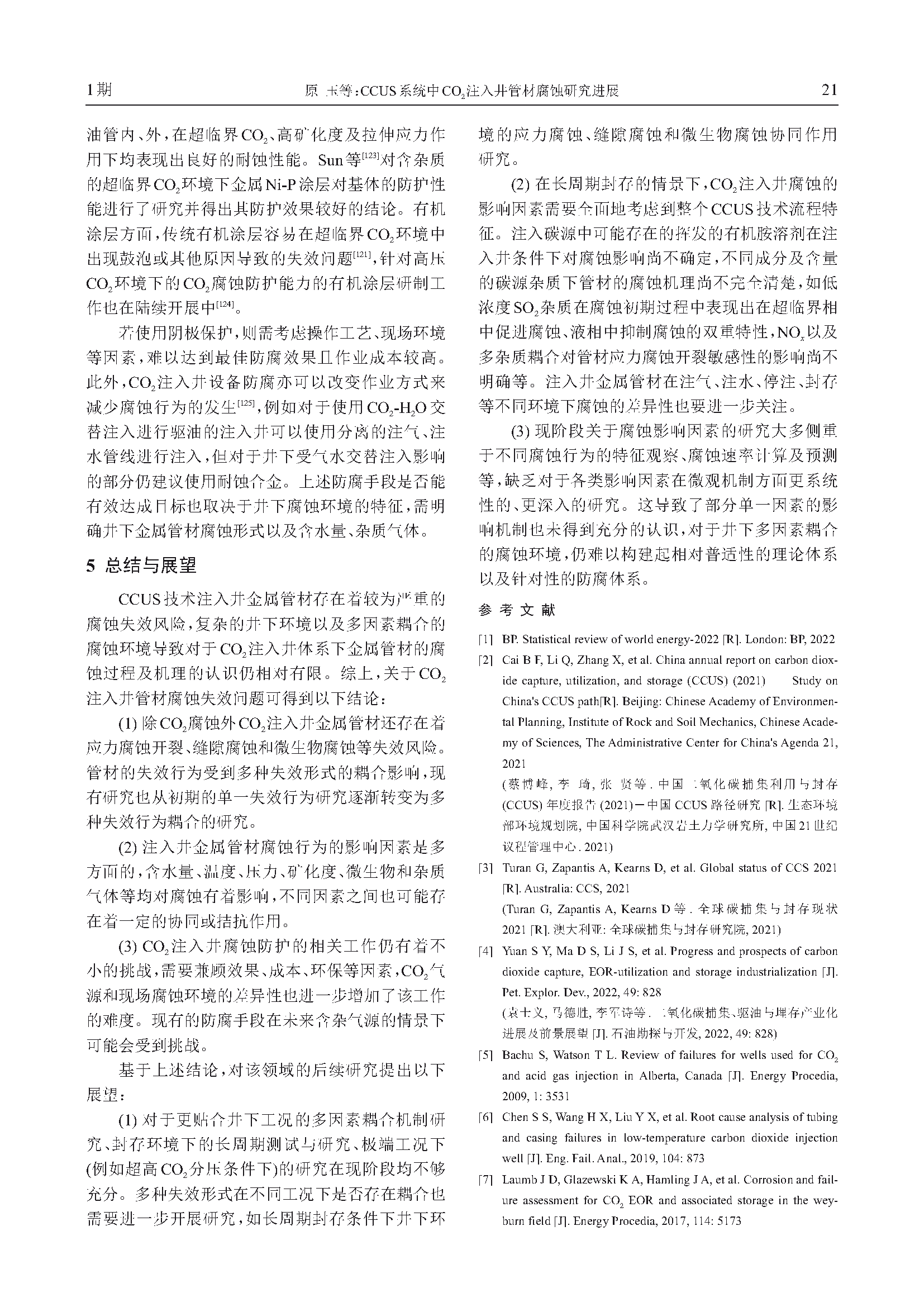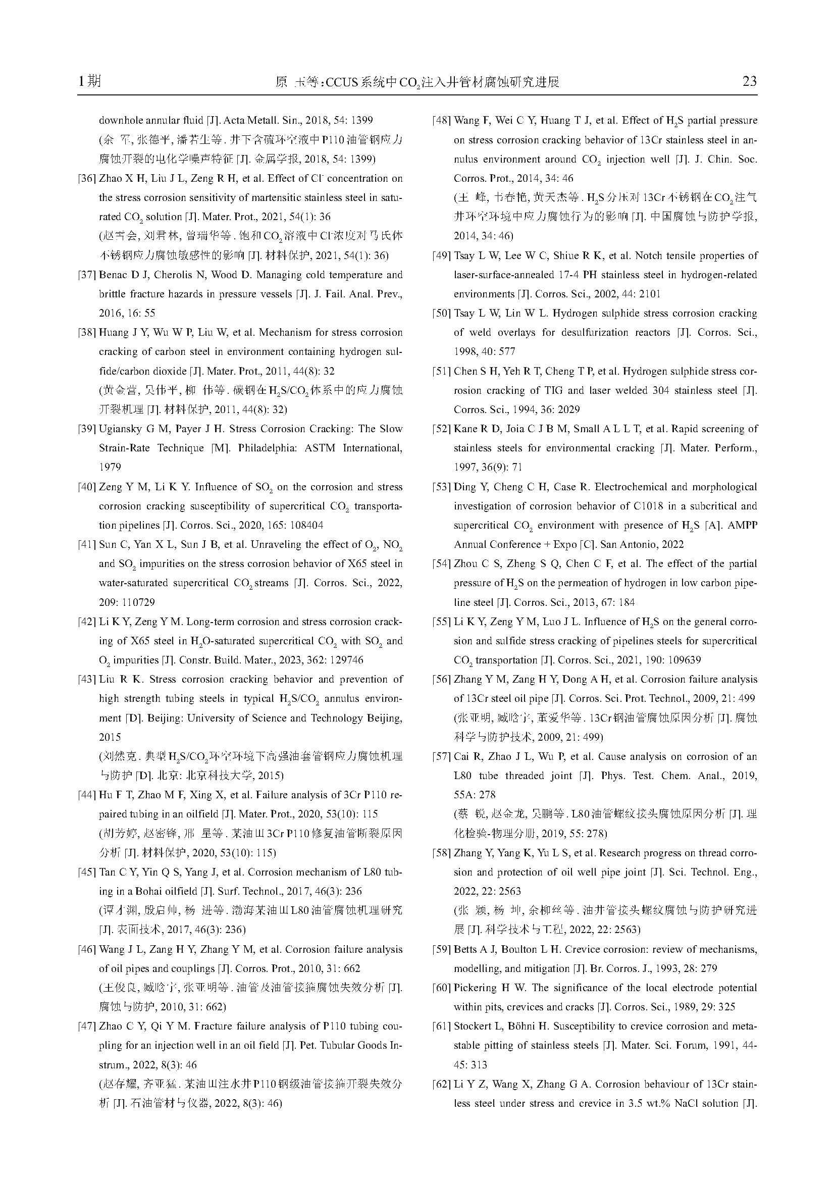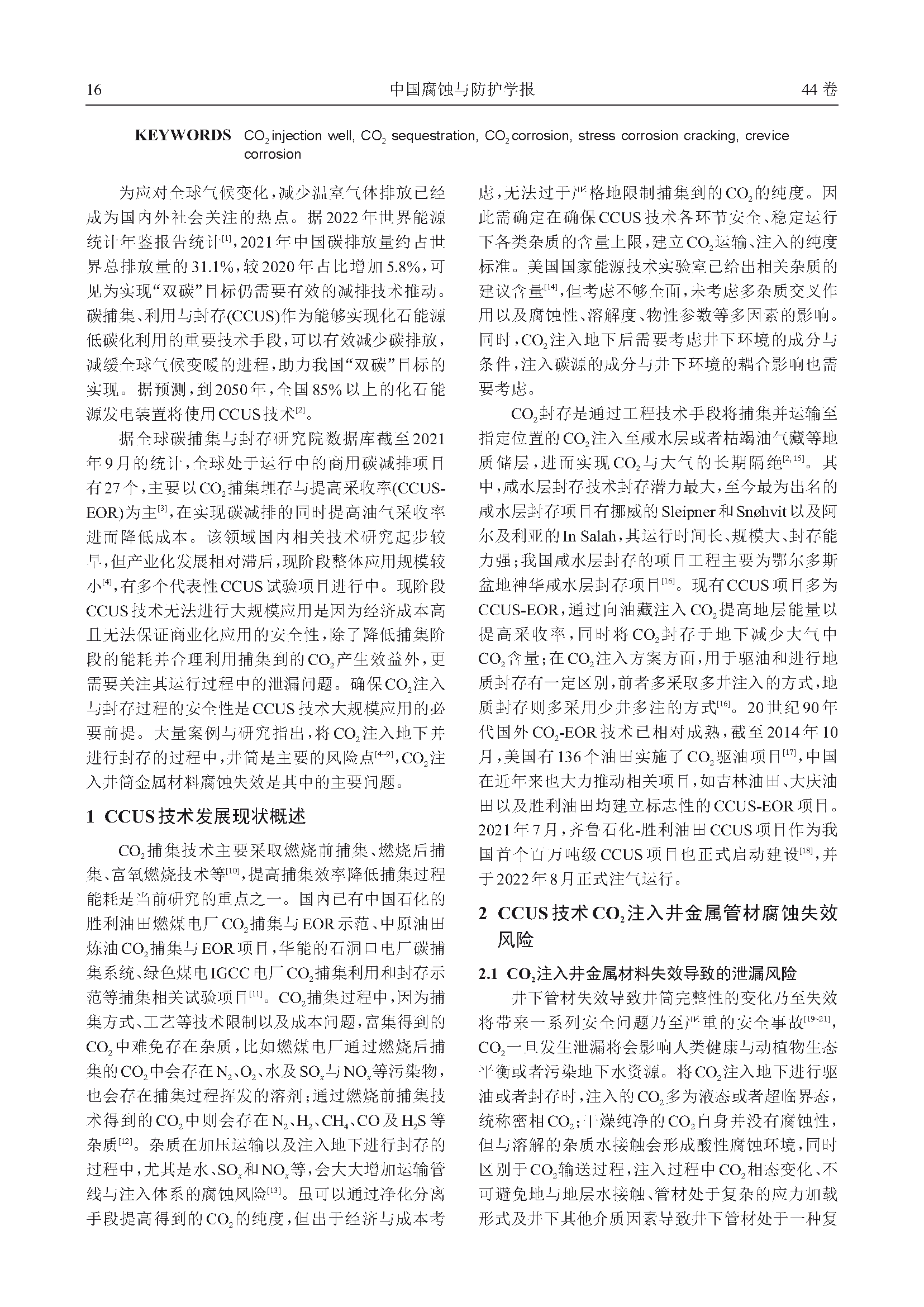 CCUS系统中CO2 注入井管材腐蚀研究进展