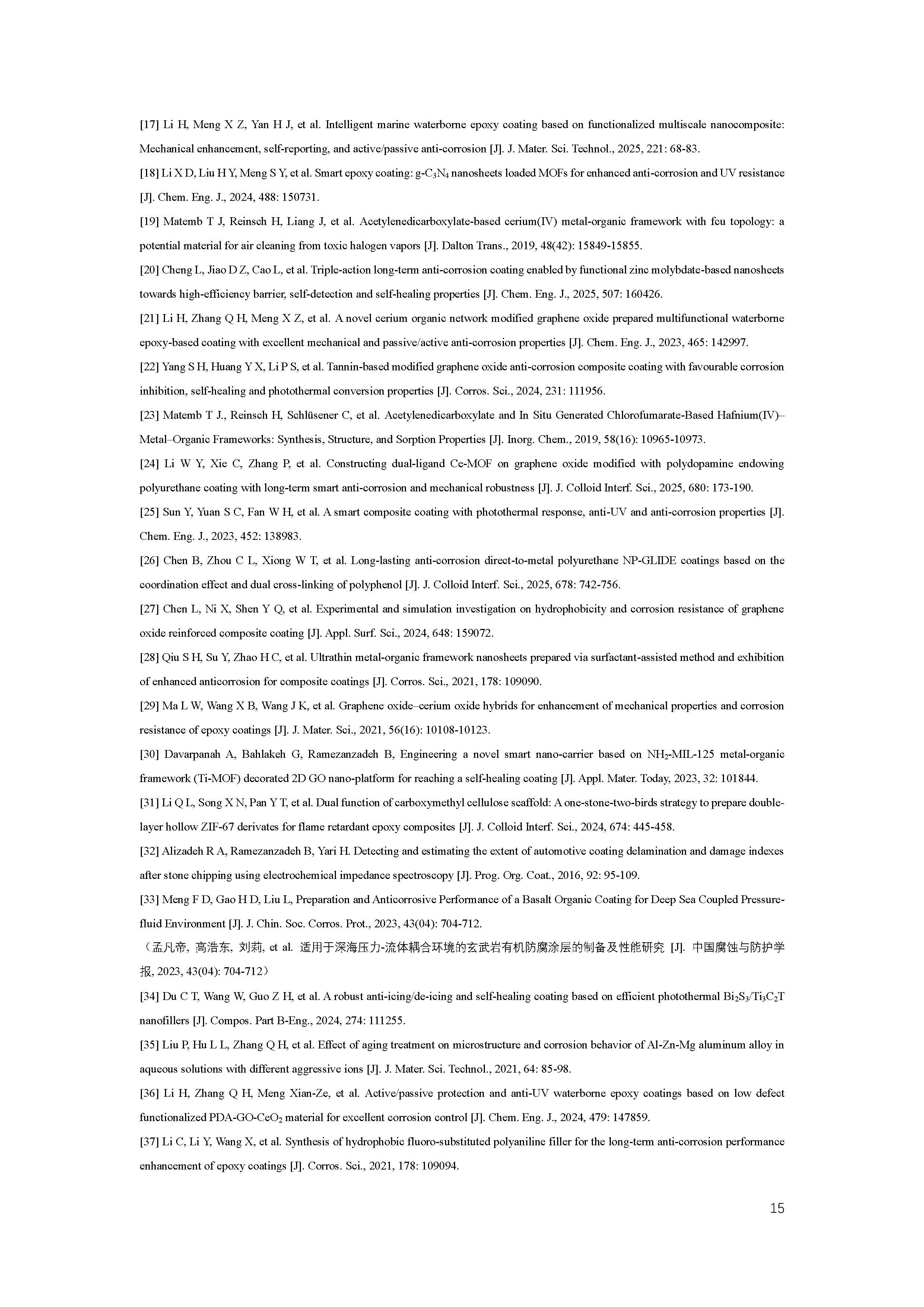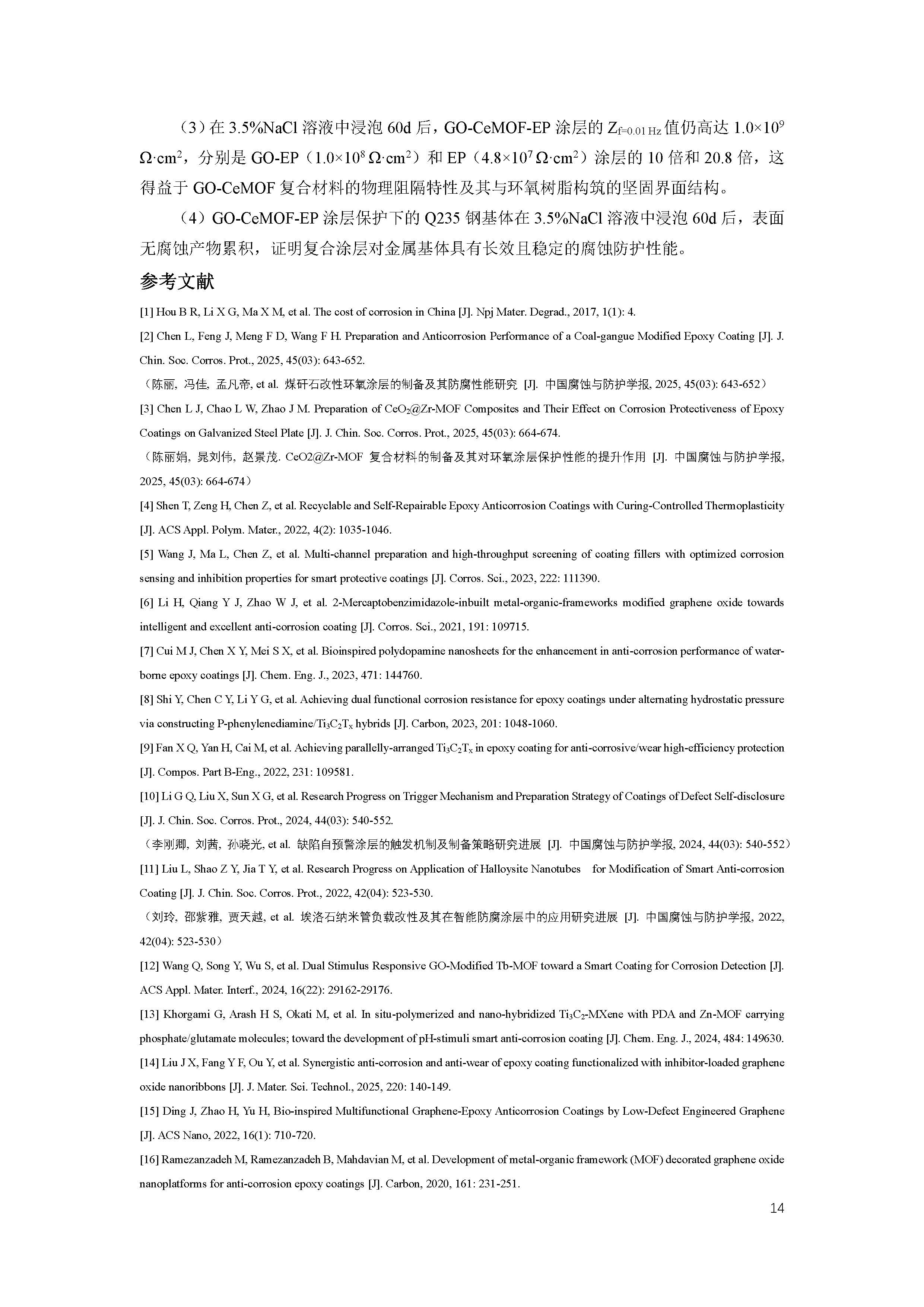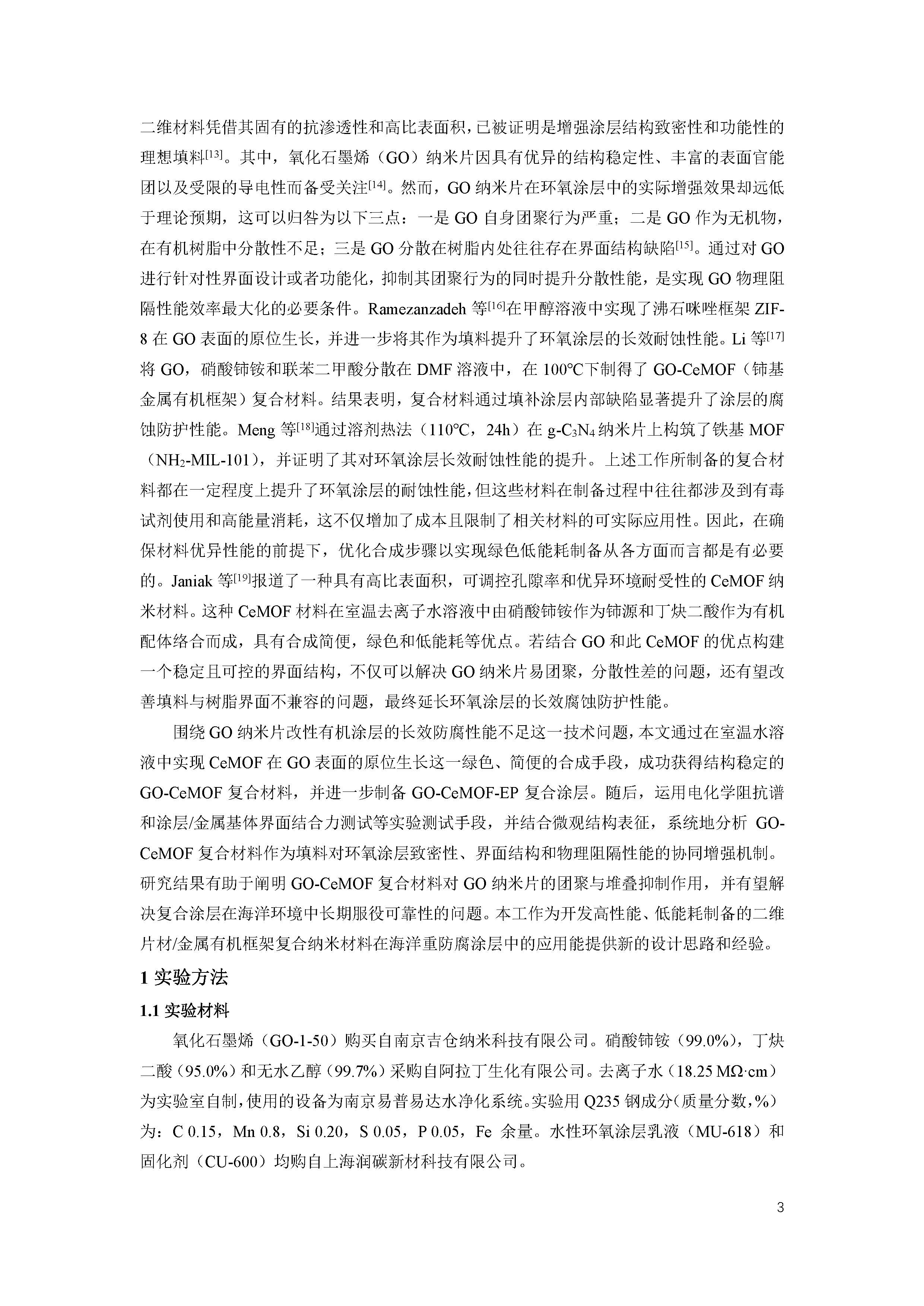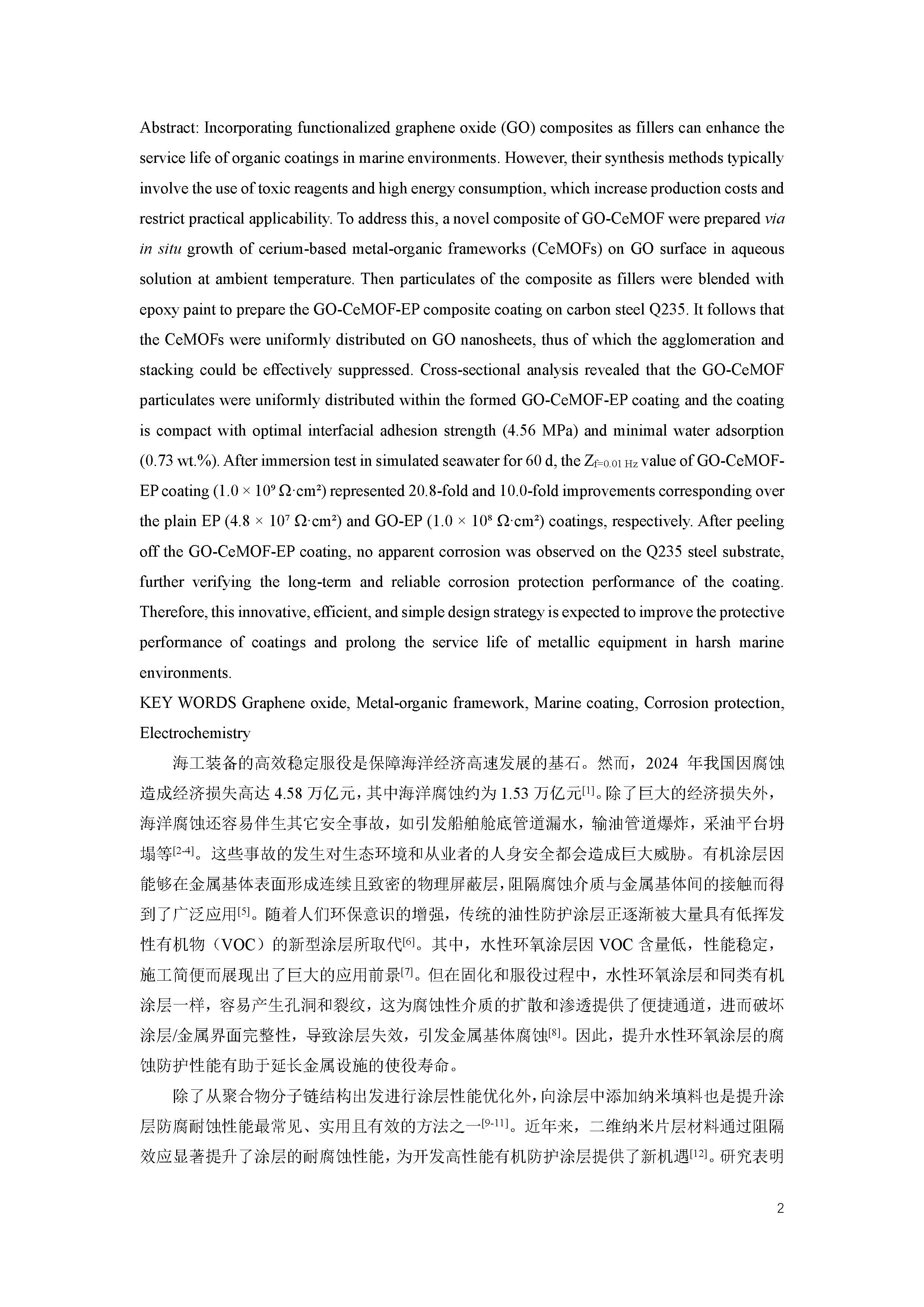氧化石墨烯/铈基金属有机框架构筑高稳定长耐蚀防护涂层
