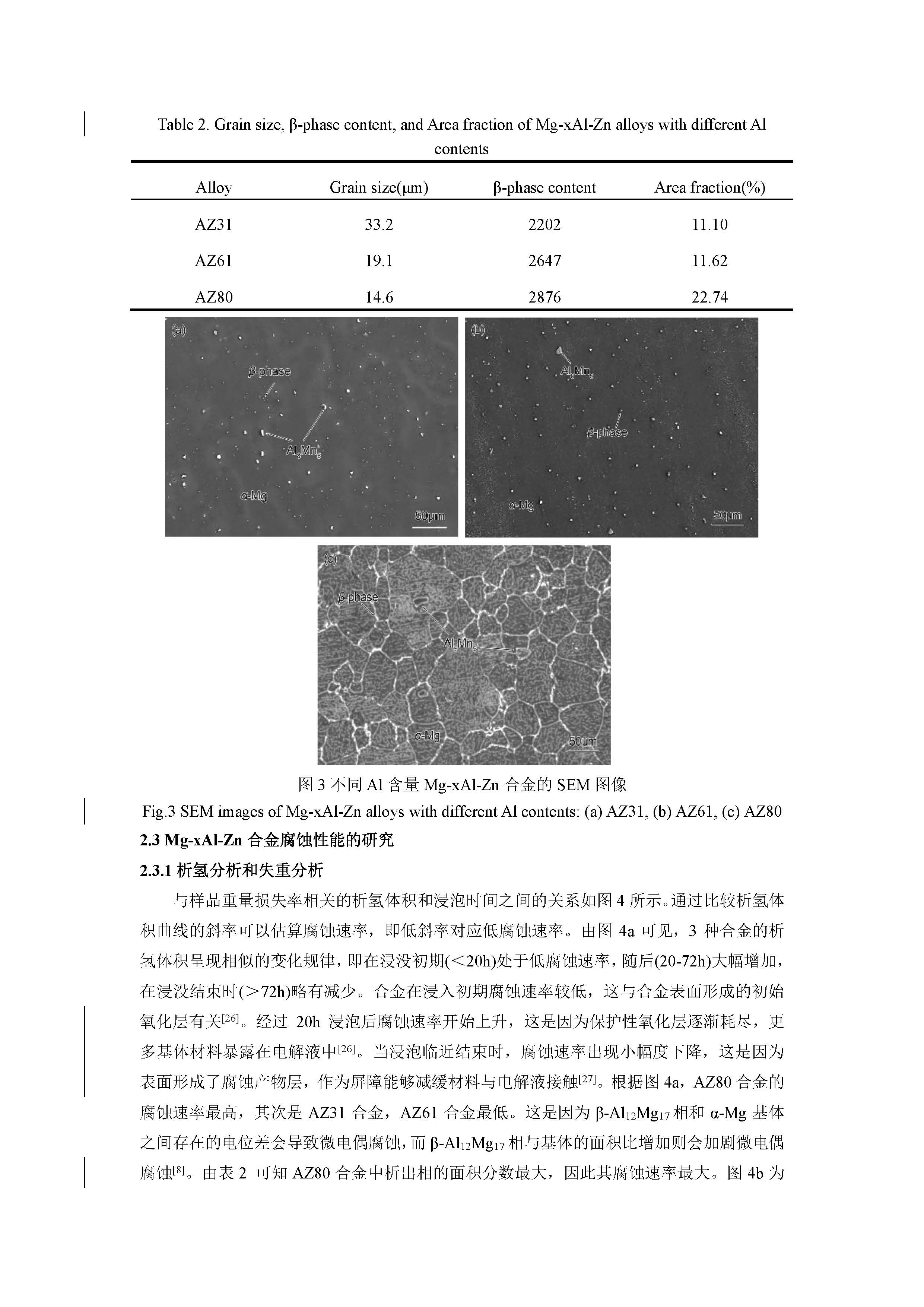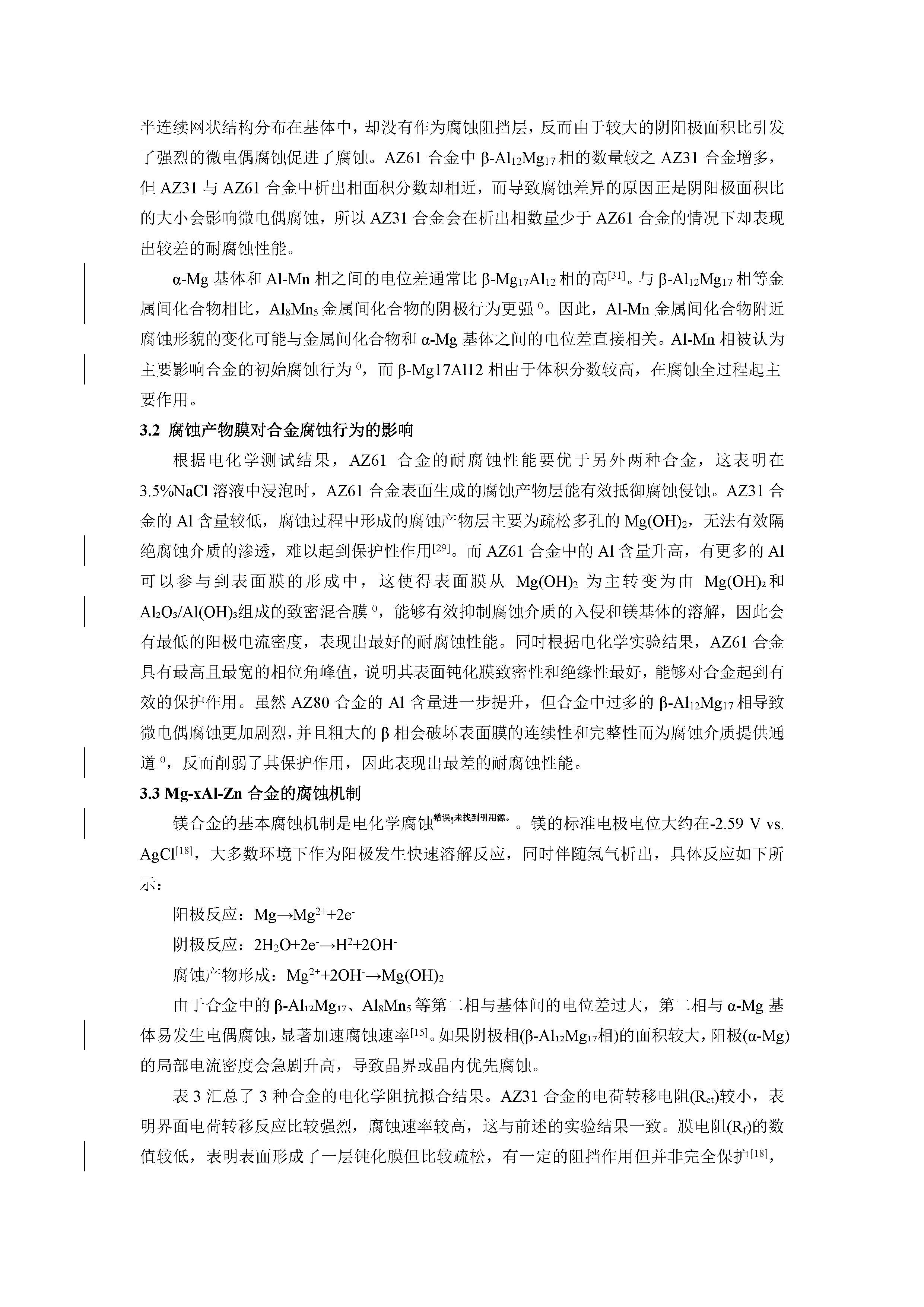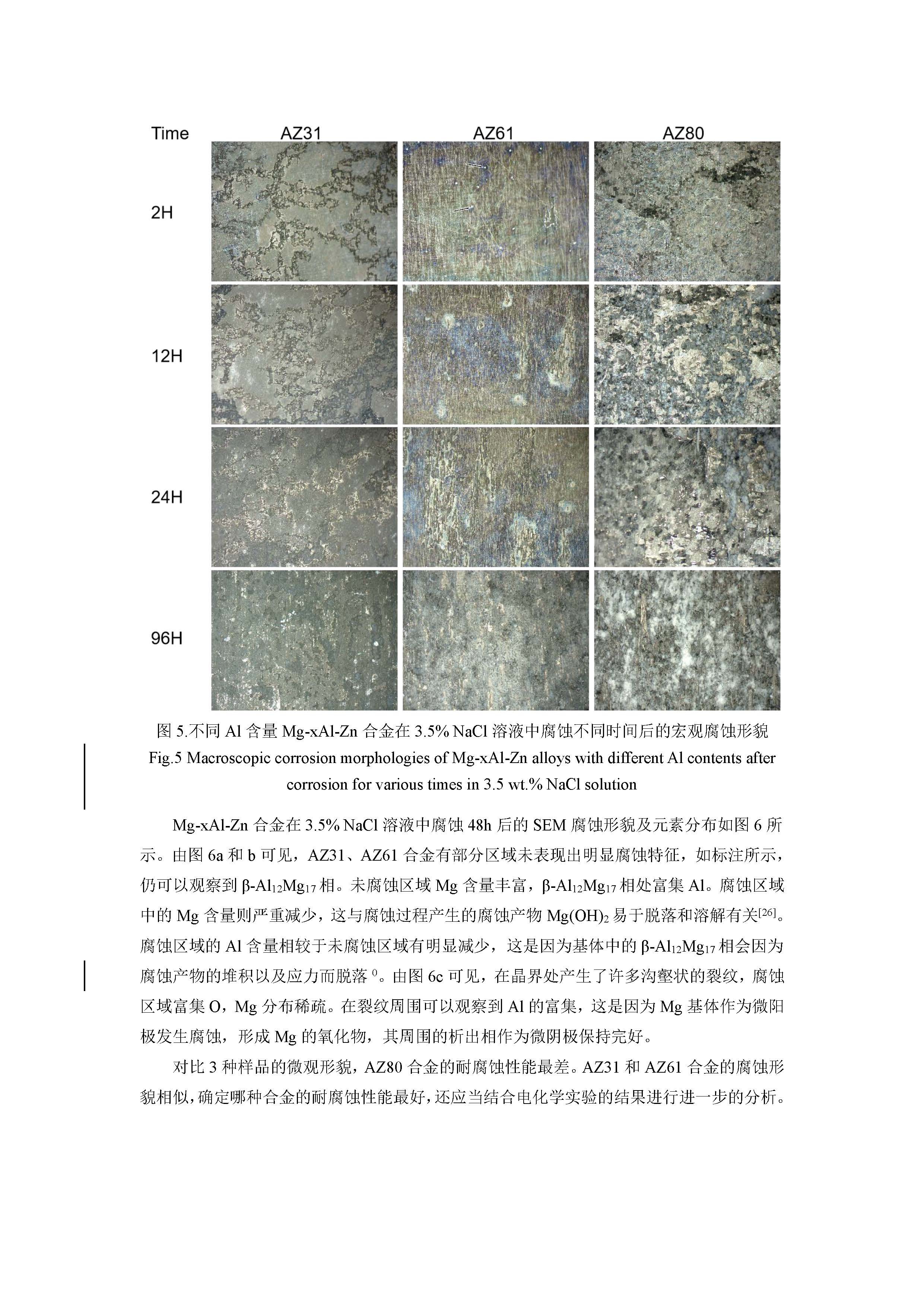 不同Al含量对Mg-xAl-Zn合金耐腐蚀性能的影响
