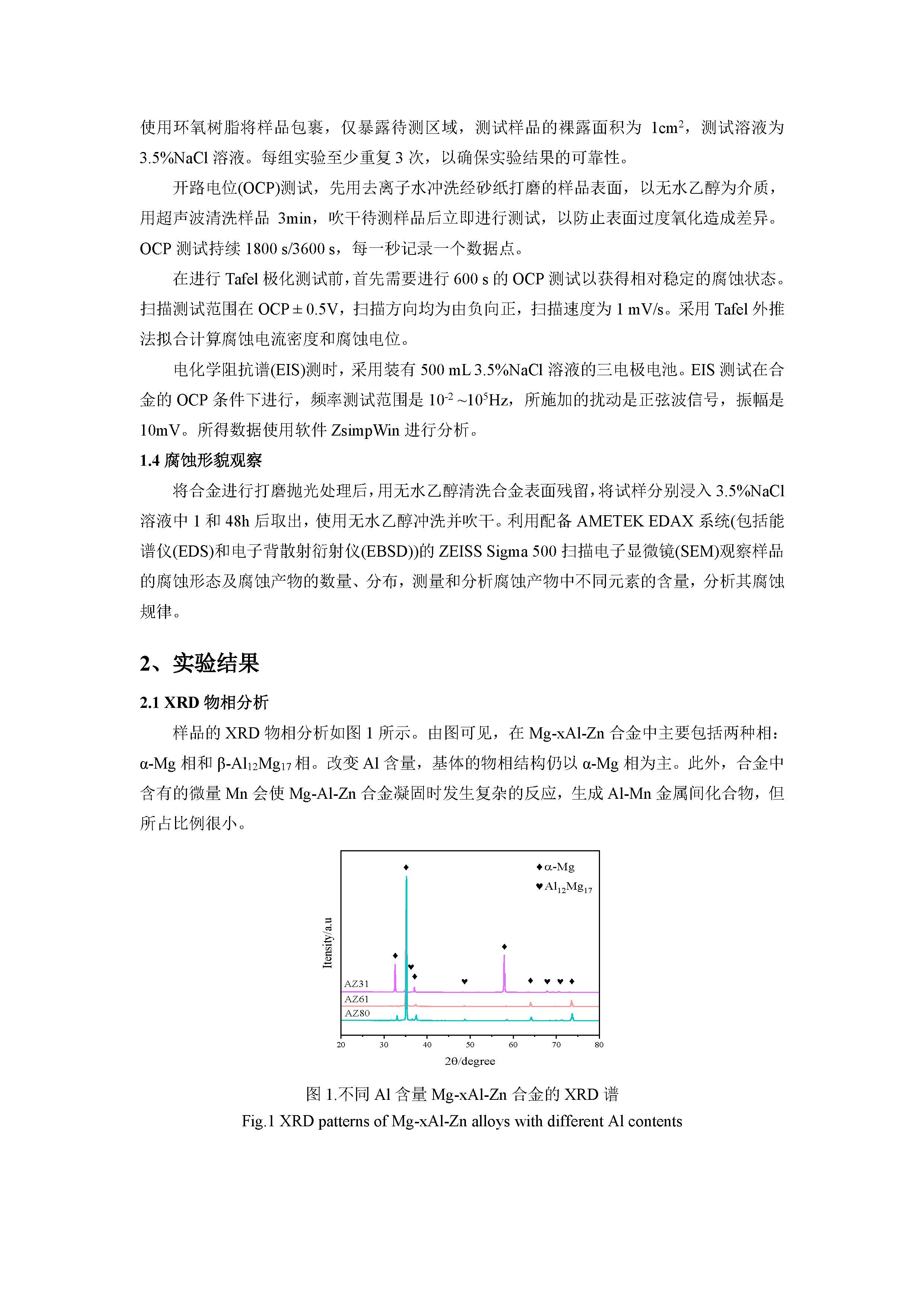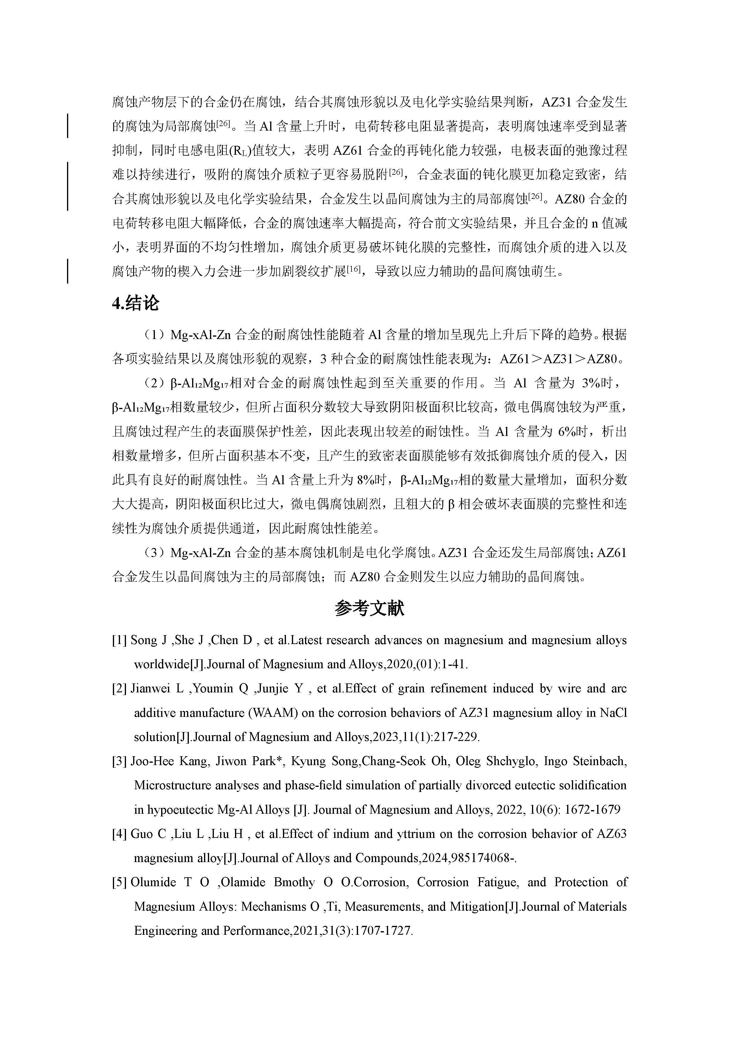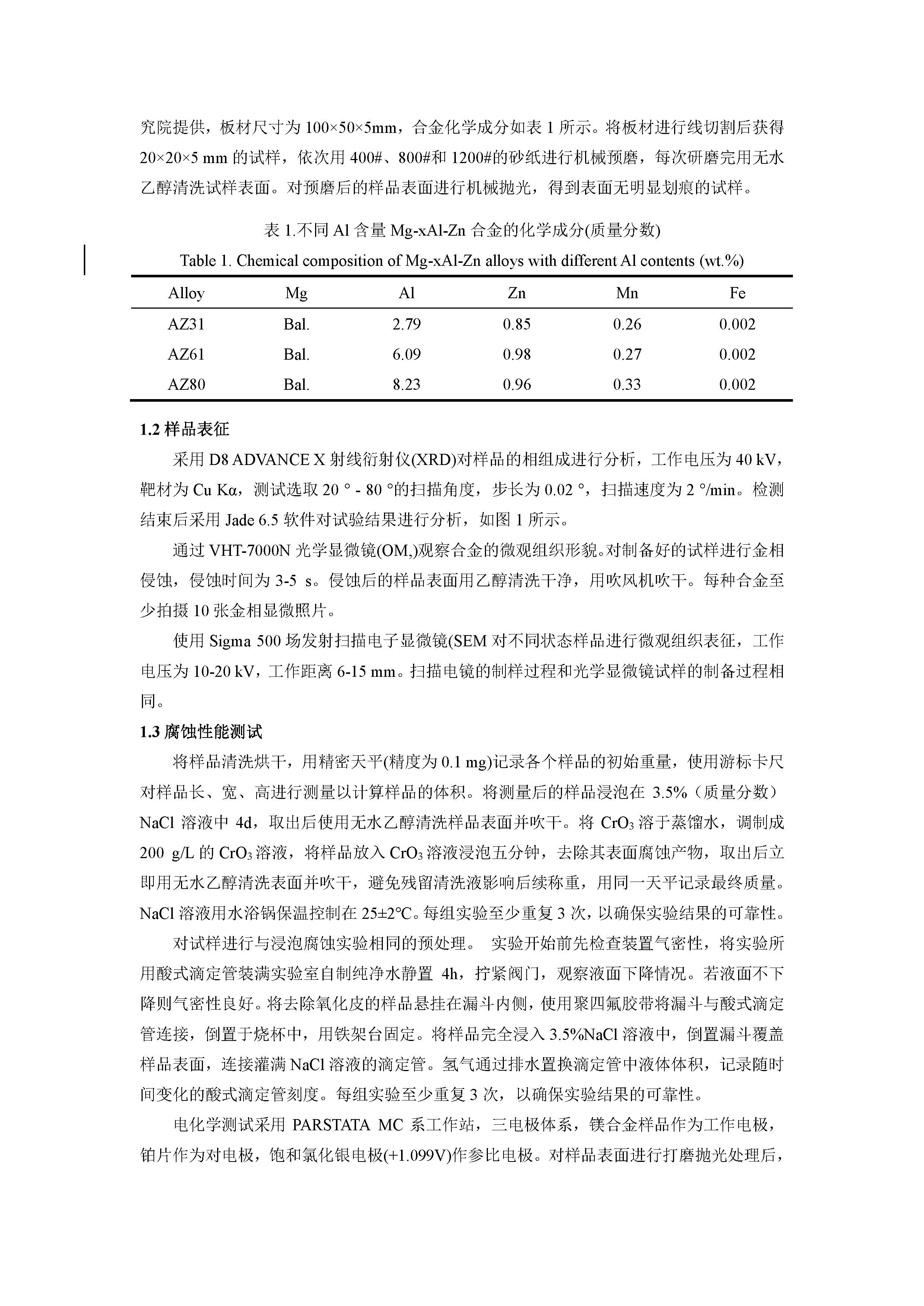 不同Al含量对Mg-xAl-Zn合金耐腐蚀性能的影响