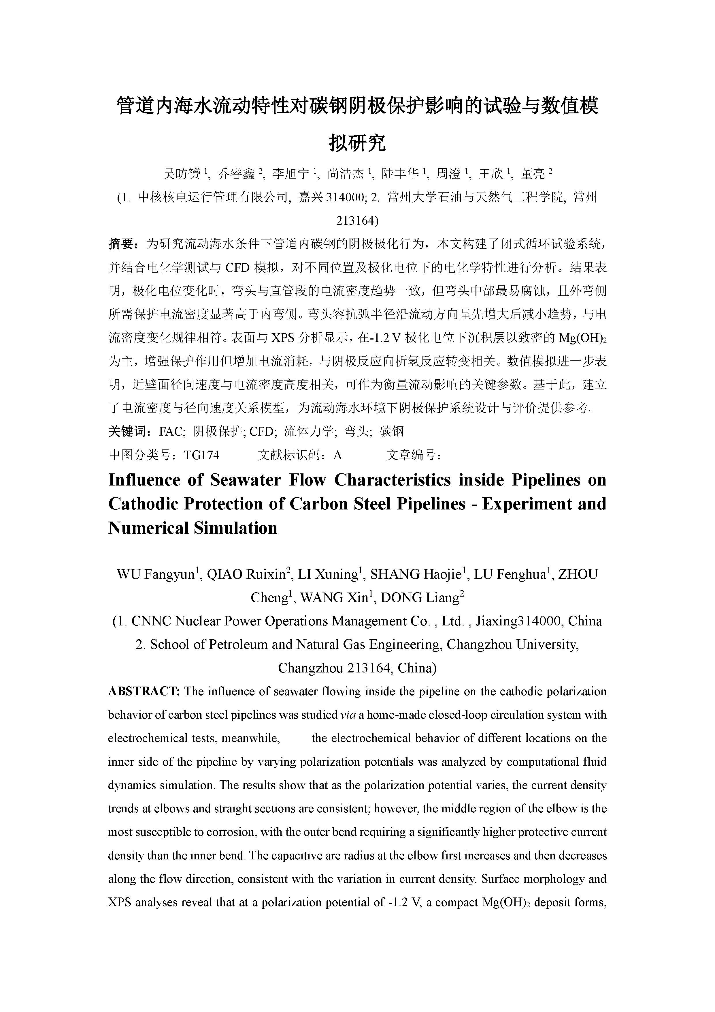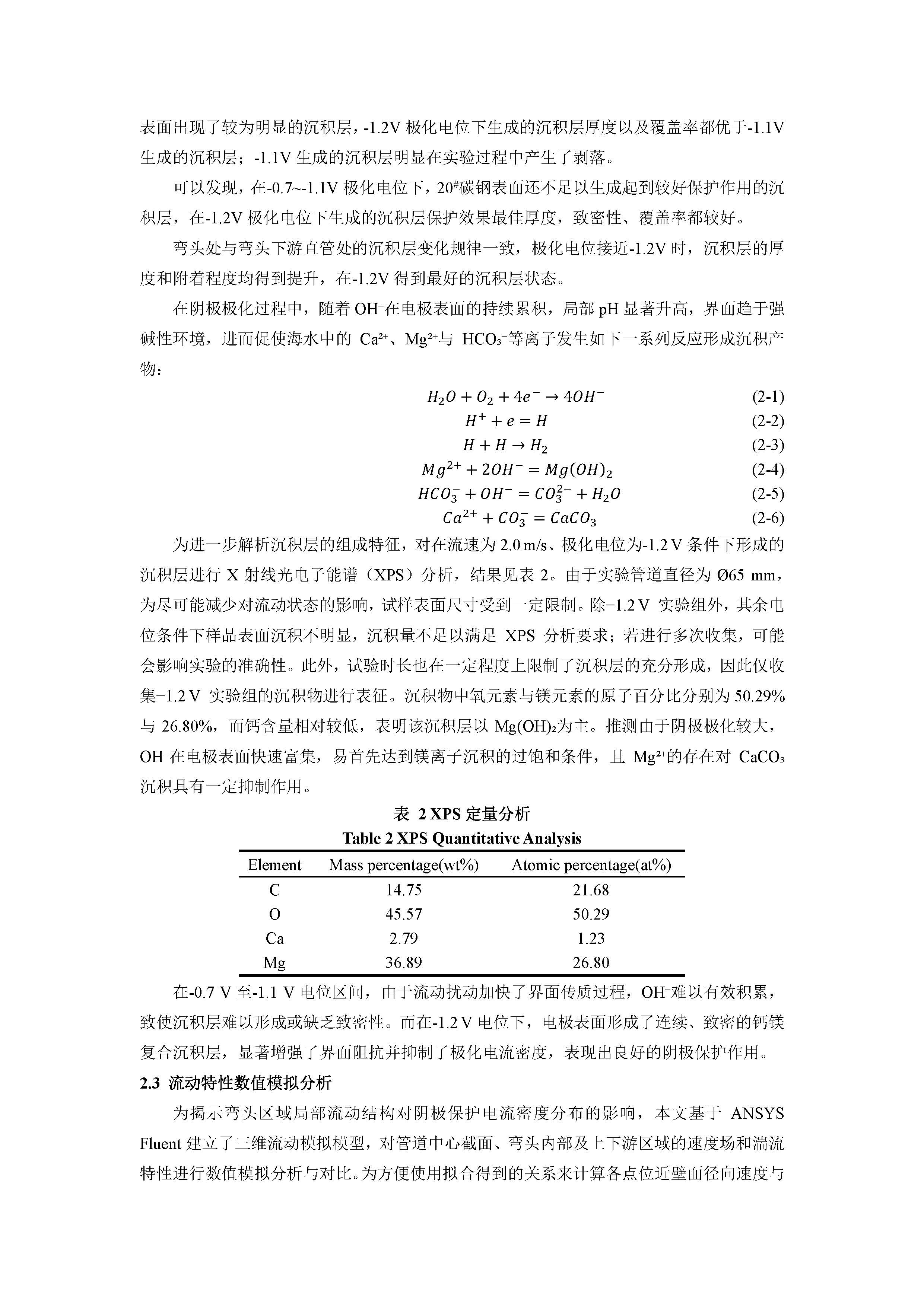 管道内海水流动特性对碳钢阴极保护影响的试验与数值模拟研究