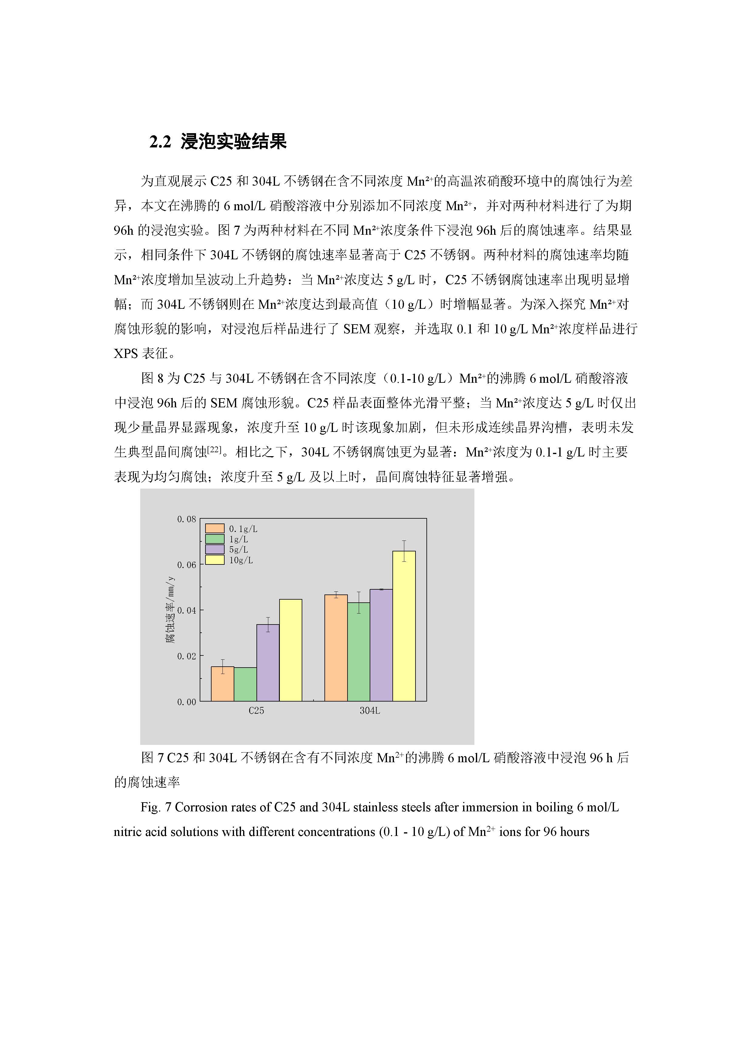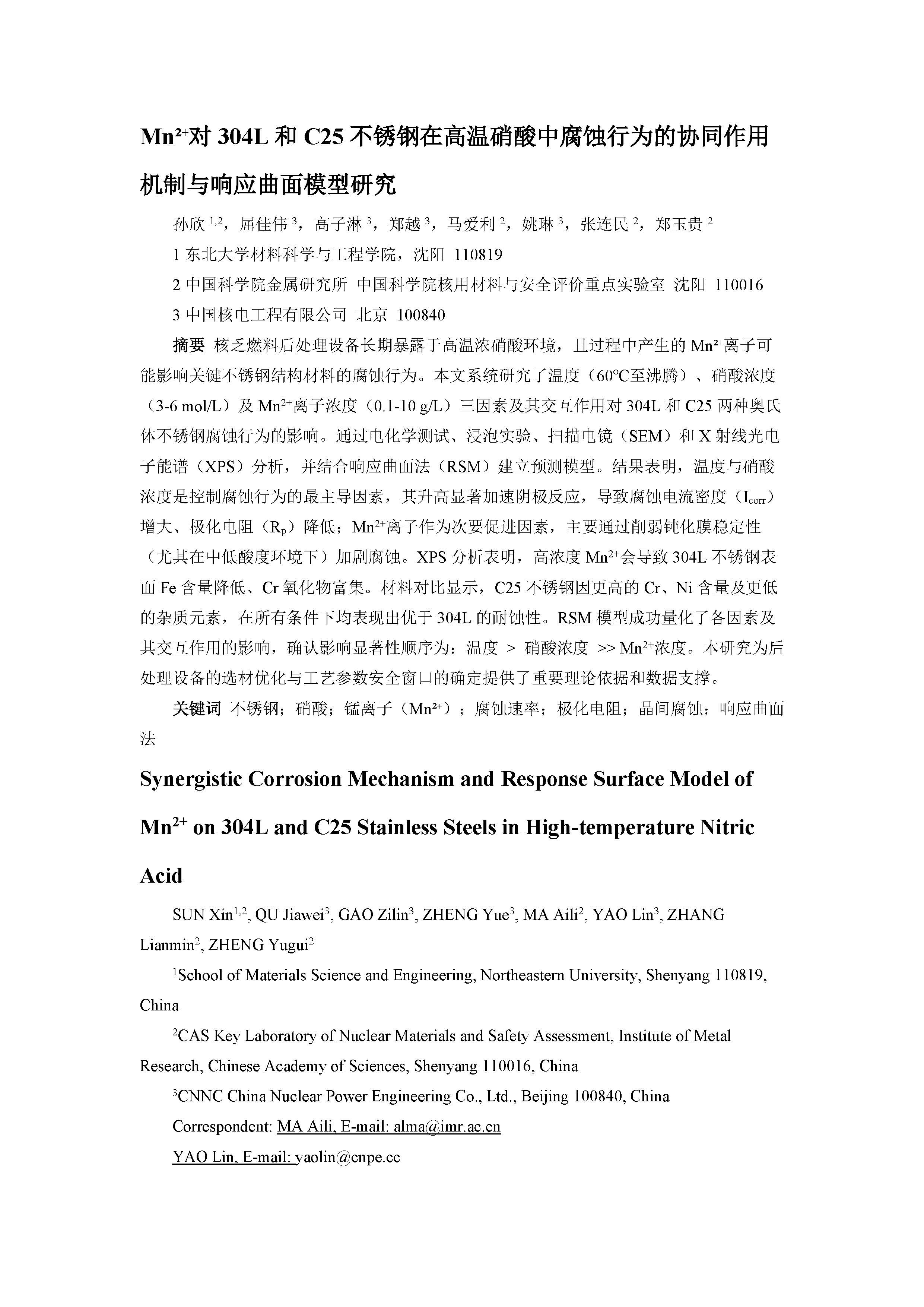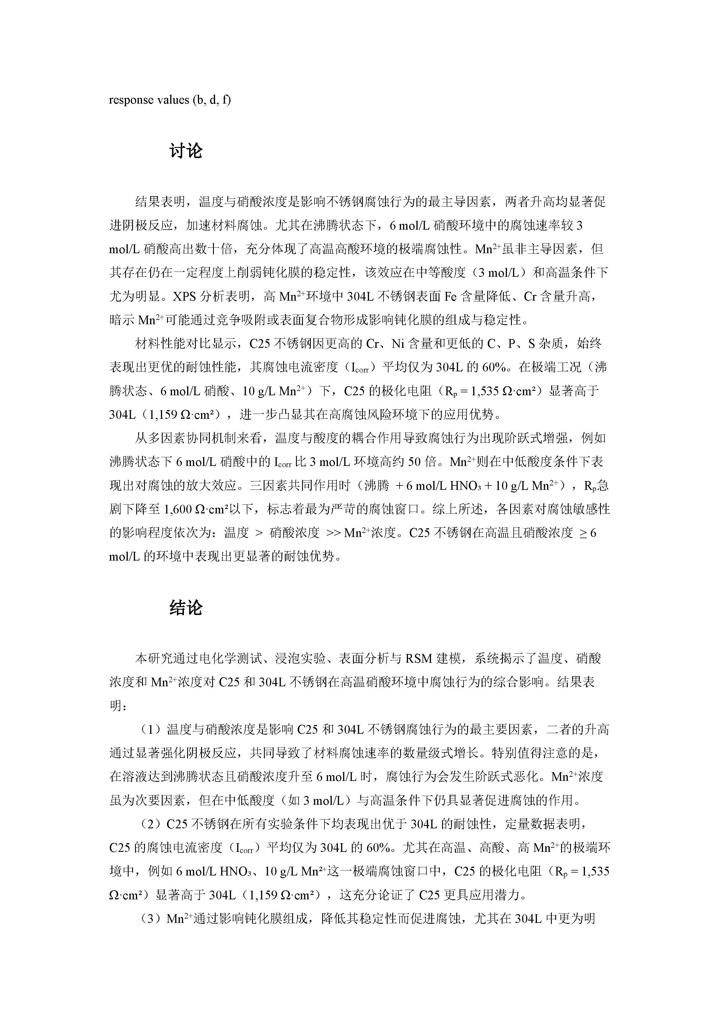 Mn2+对304L和C25不锈钢在高温硝酸中腐蚀行为的协同作用机制与响应曲面模型研究