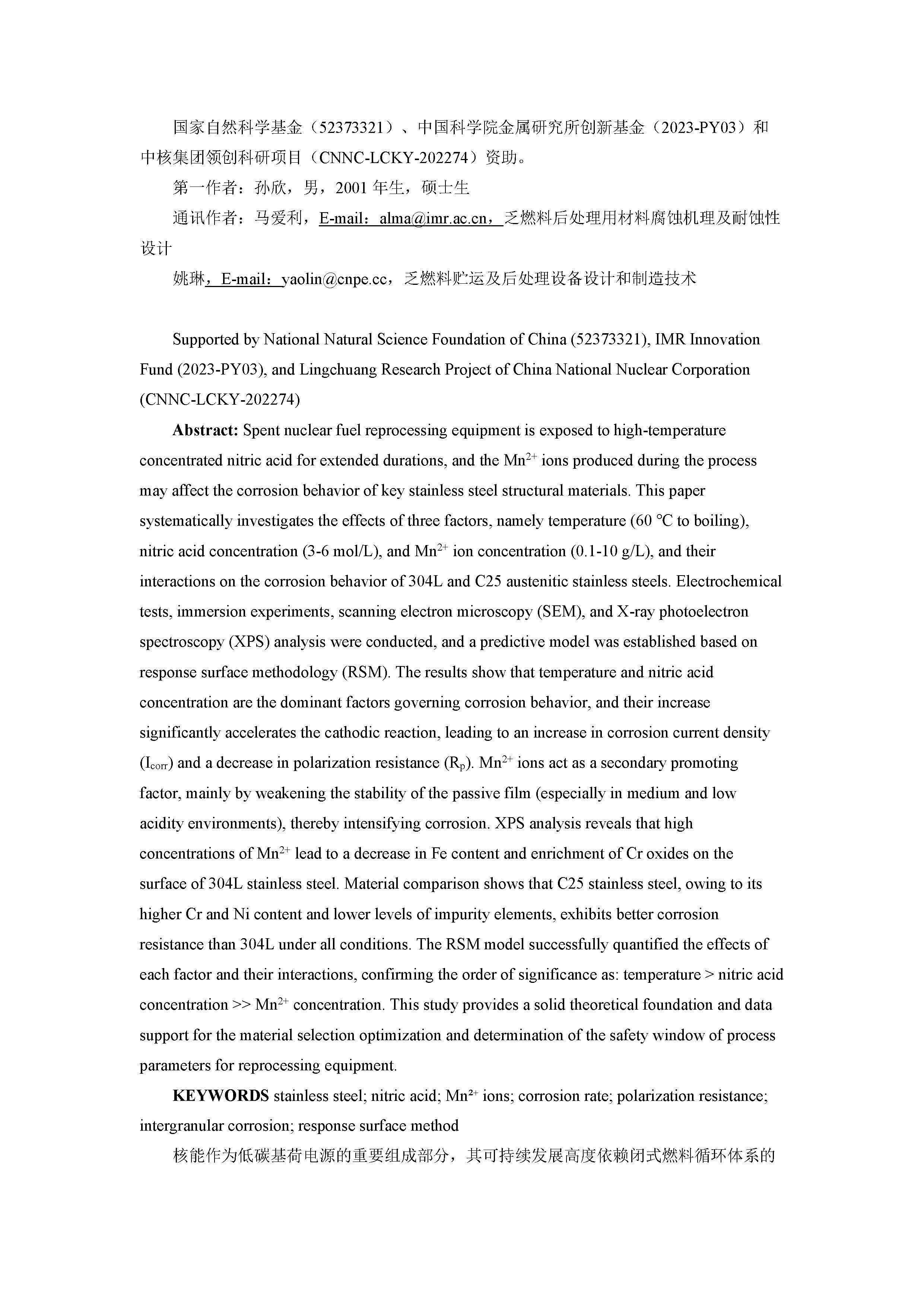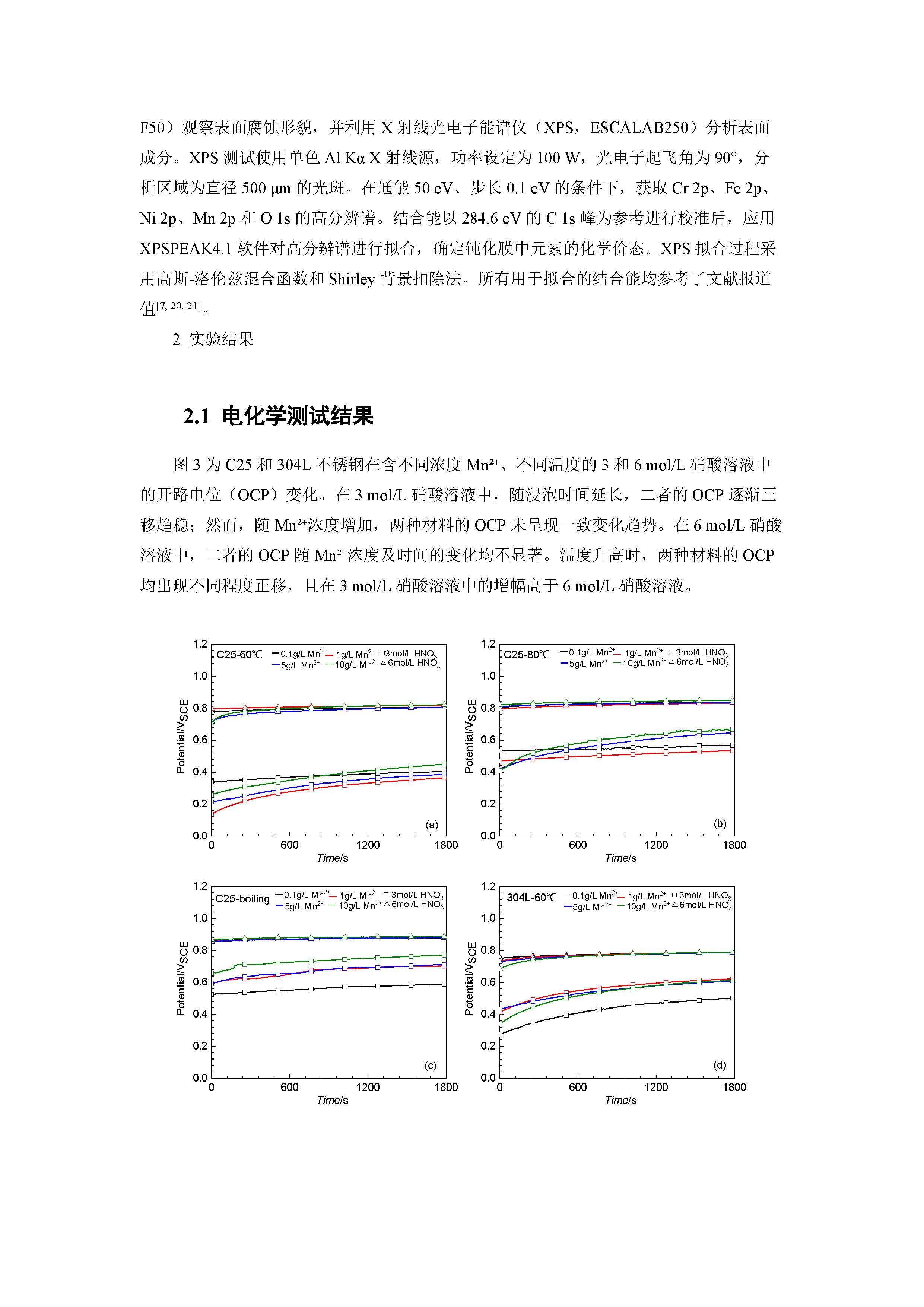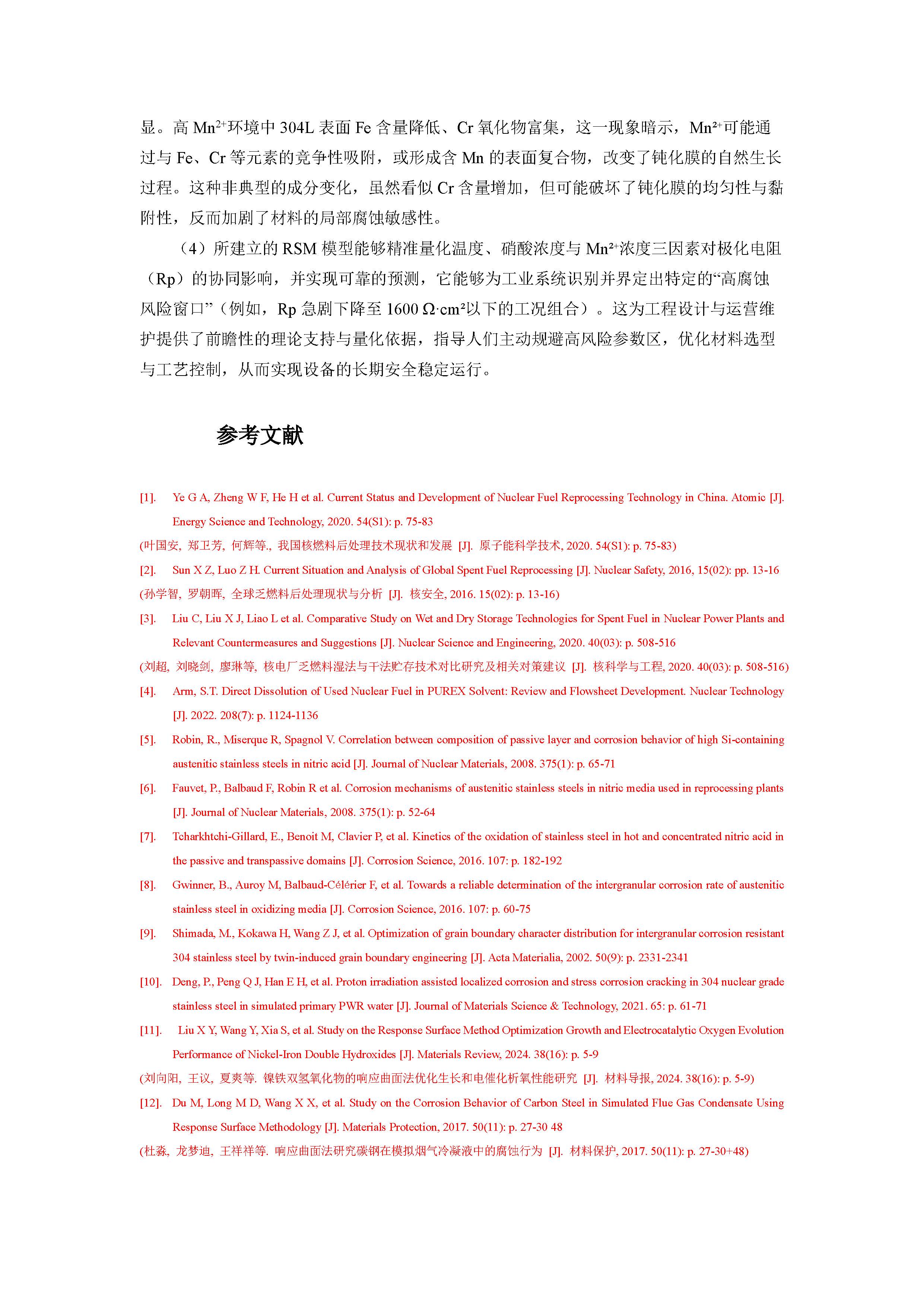 Mn2+对304L和C25不锈钢在高温硝酸中腐蚀行为的协同作用机制与响应曲面模型研究