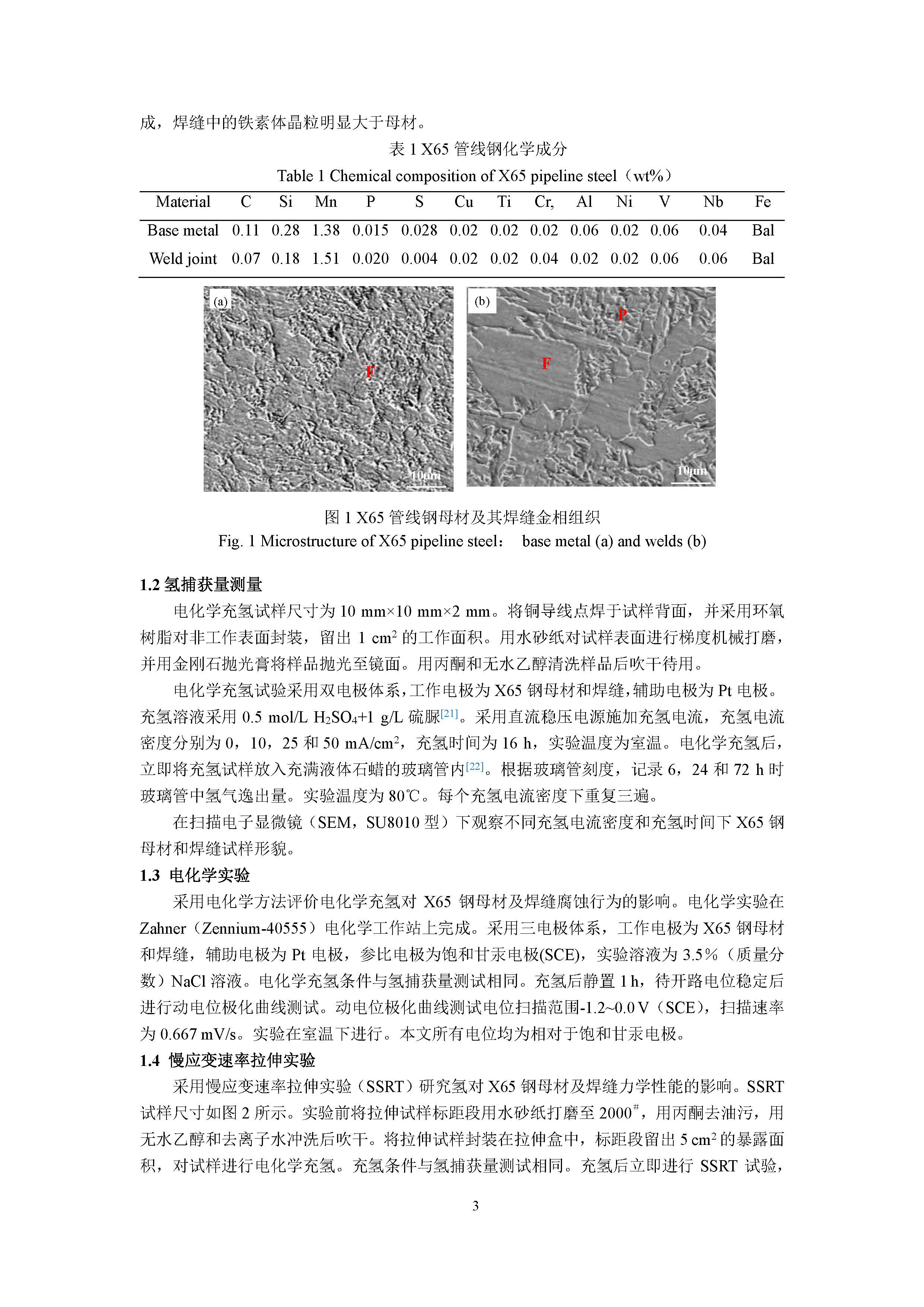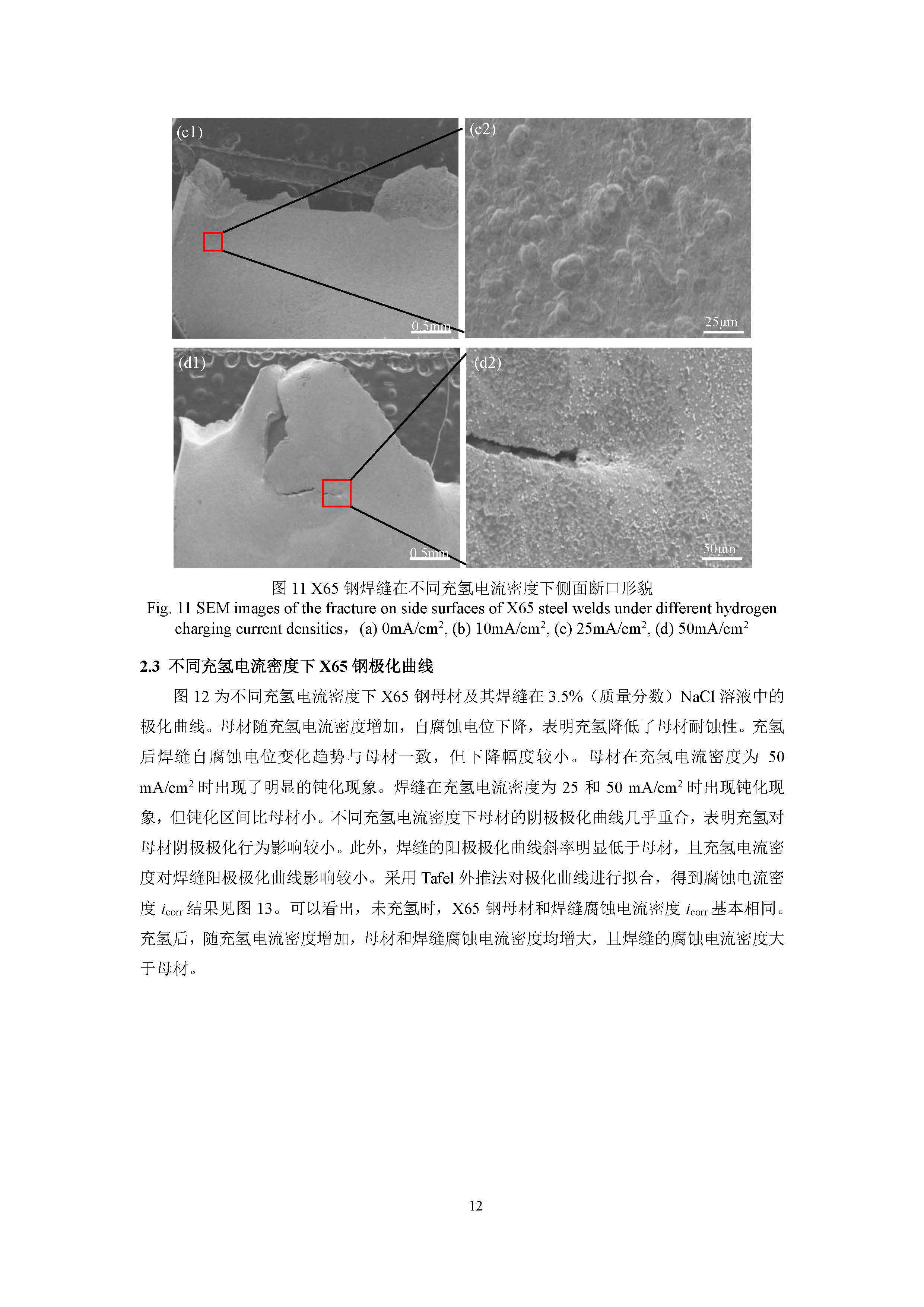 氢对 X65 钢及其焊缝力学性能及腐蚀行为影响