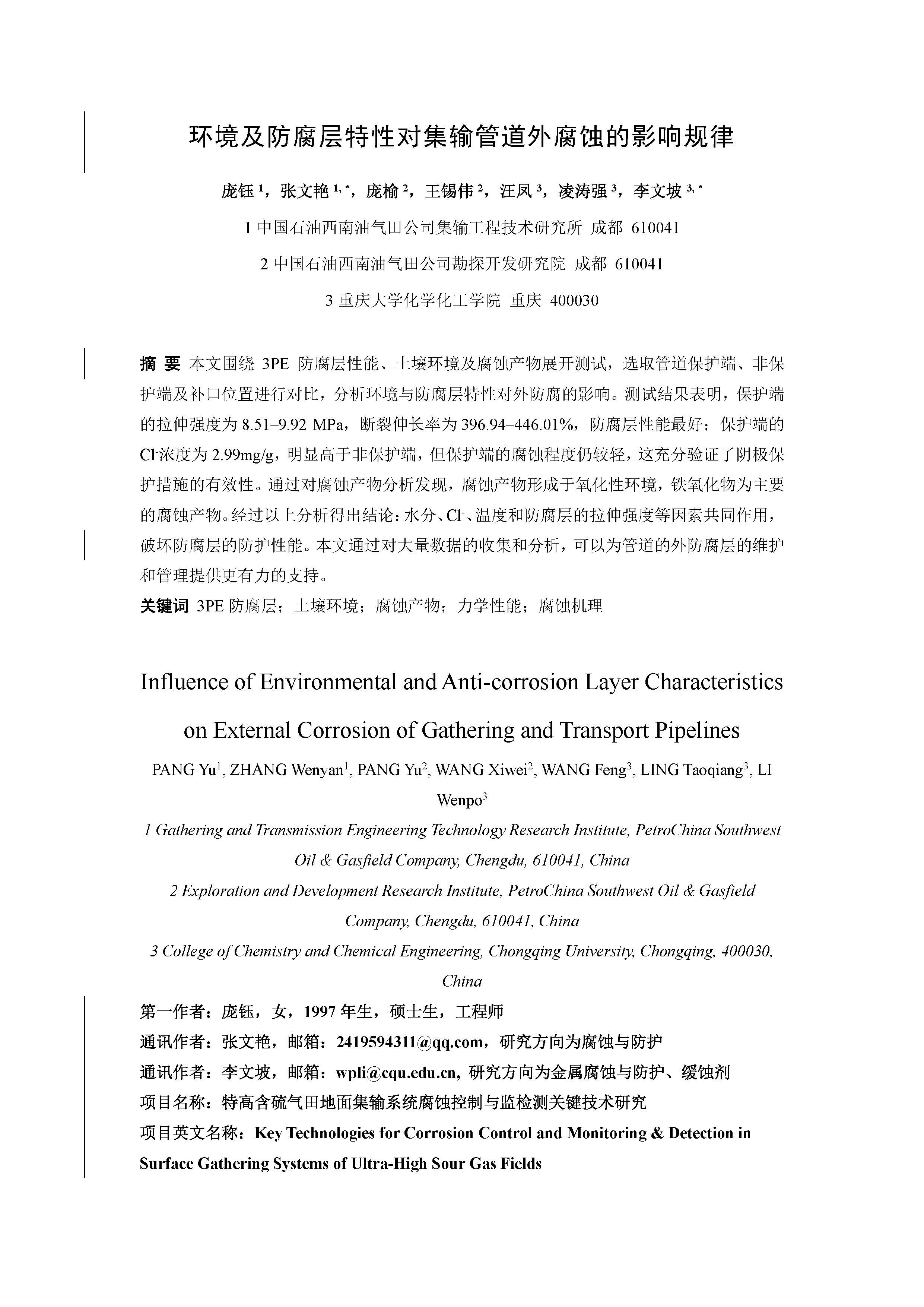 环境及防腐层特性对集输管道外腐蚀的影响规律
